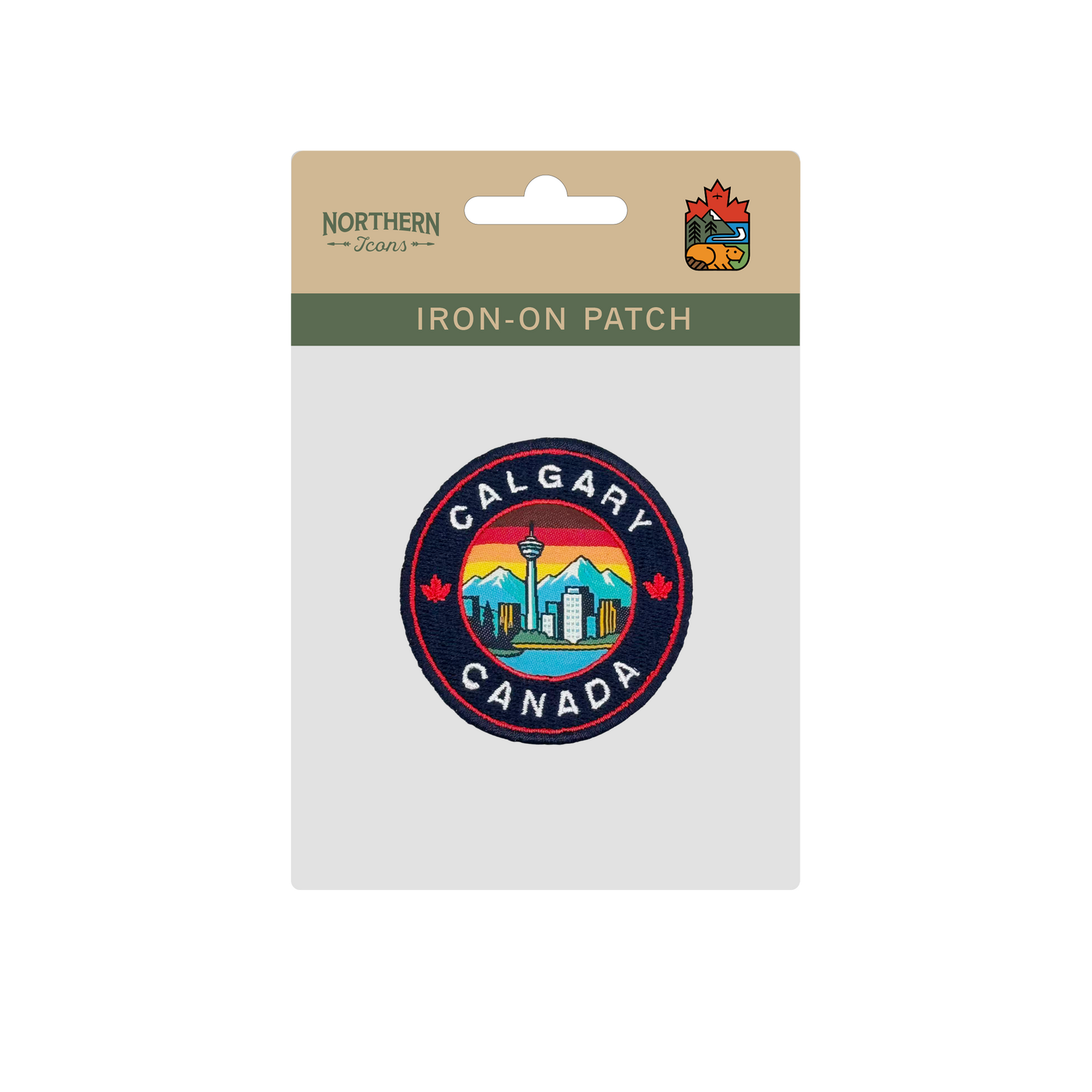 The circular badge layout draws from classic travel emblems, while the strong color contrasts and clean embroidered lines give the patch a confident, contemporary look. This design highlights Calgary as a gateway between city culture and the Rocky Mountains, capturing a spirit of movement, openness, and exploration.