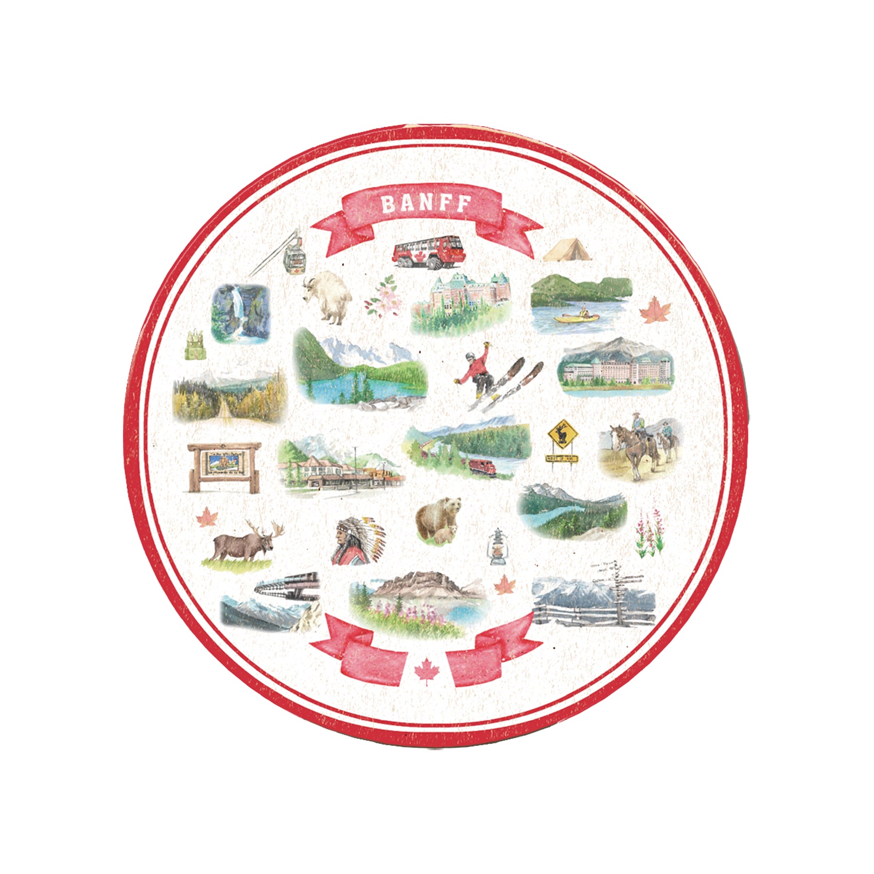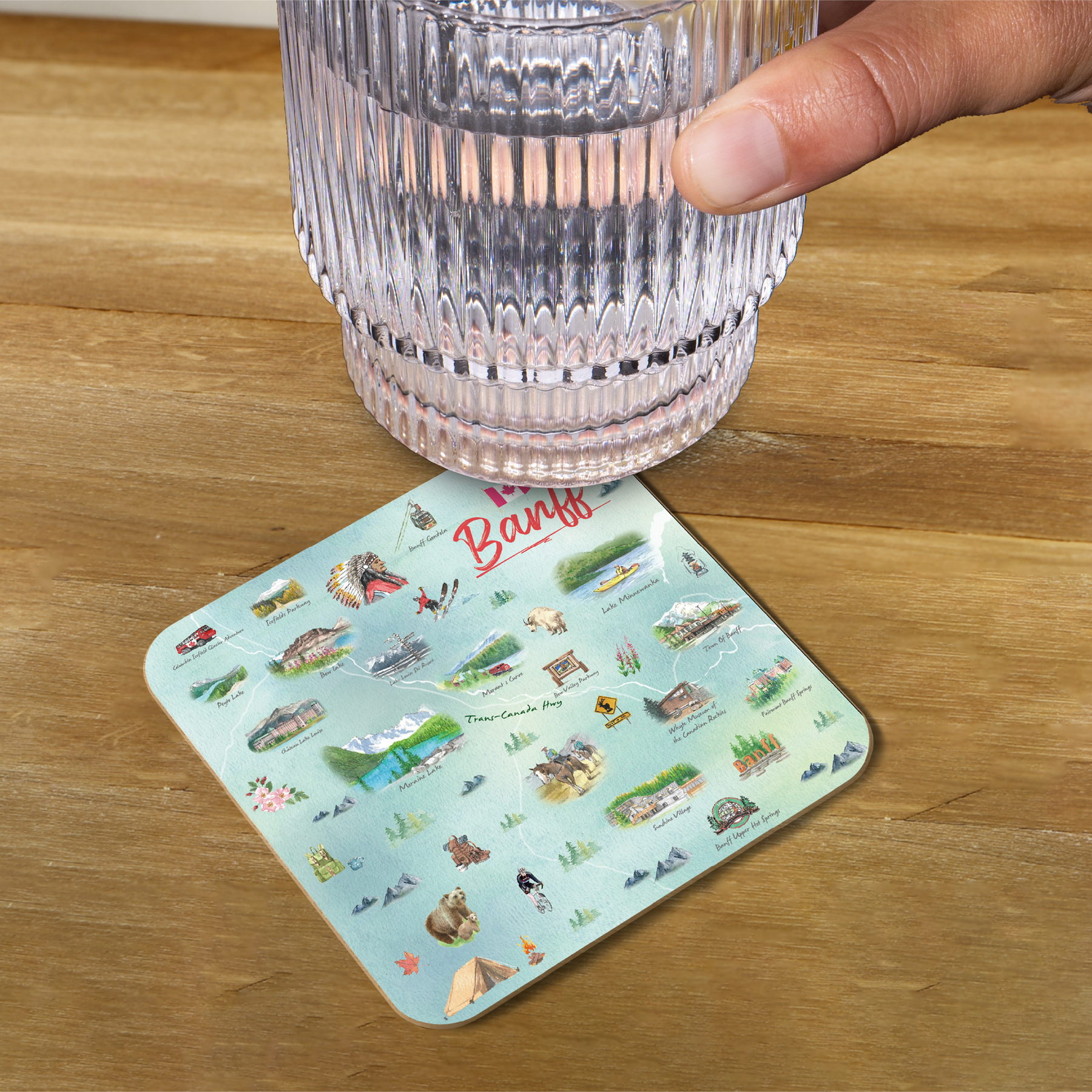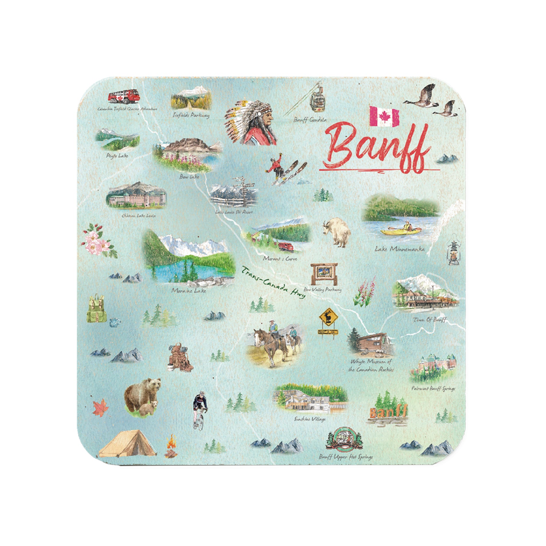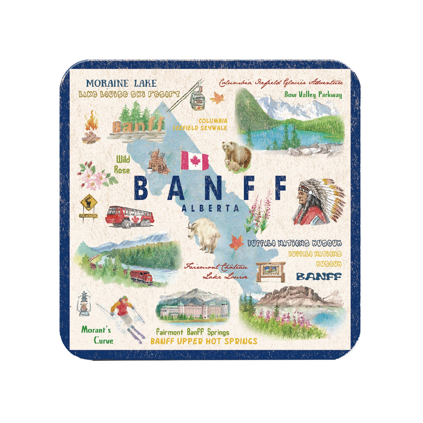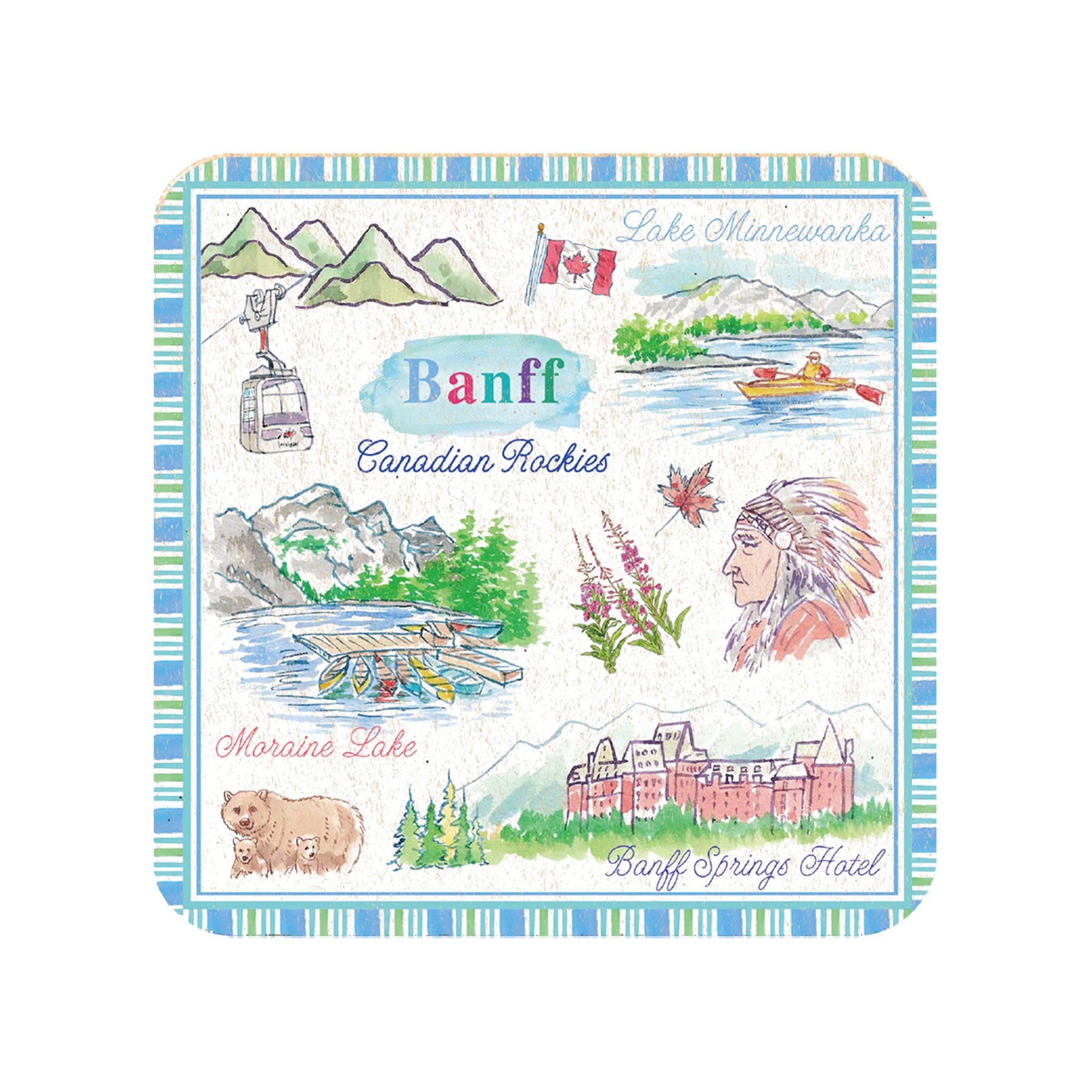 Banff Canadian Rockies Illustrated Coaster Set – Scenic Landmark Drink Mats