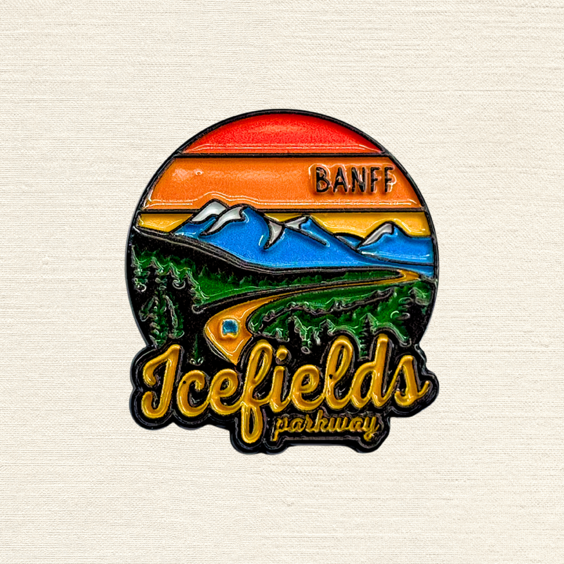 As a souvenir and collector’s item, it is ideal for gift shops, travel boutiques, and adventure-themed stores. A meaningful keepsake for those who have driven the Icefields Parkway or dream of experiencing it, this pin is a stylish way to celebrate the call of the open road.