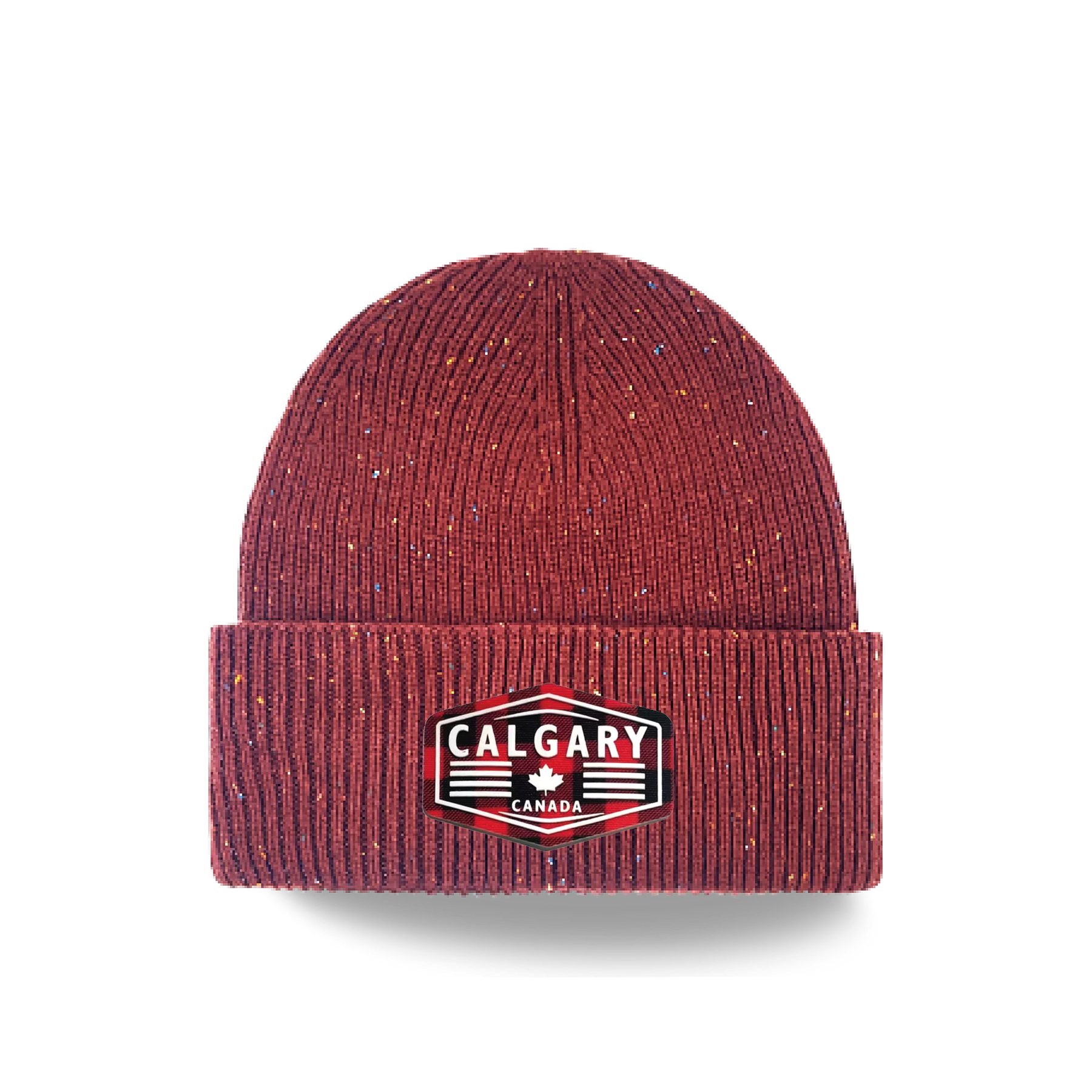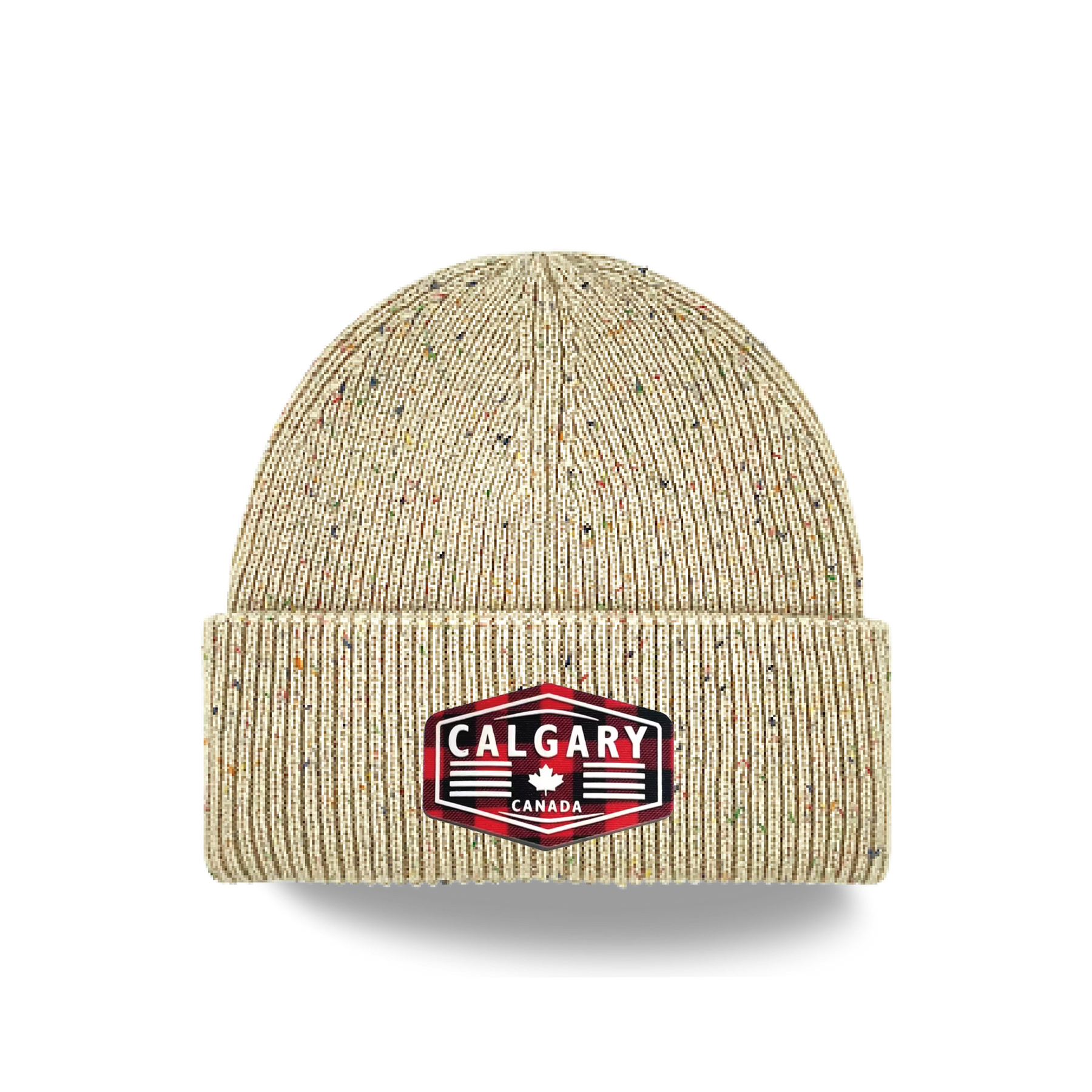 Calgary Canada Knit Toque – Speckled Ribbed Winter Beanie Hat for Outdoor Adventure Lovers