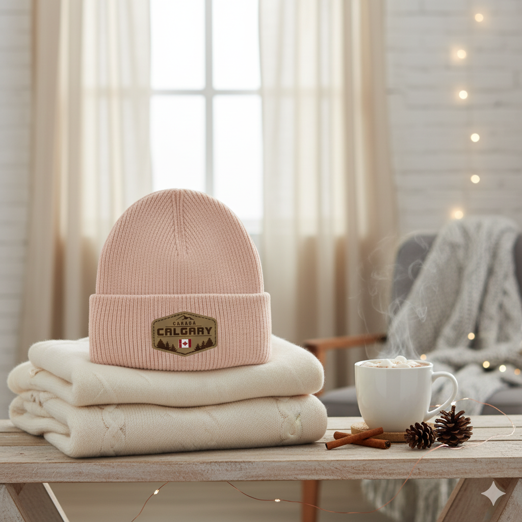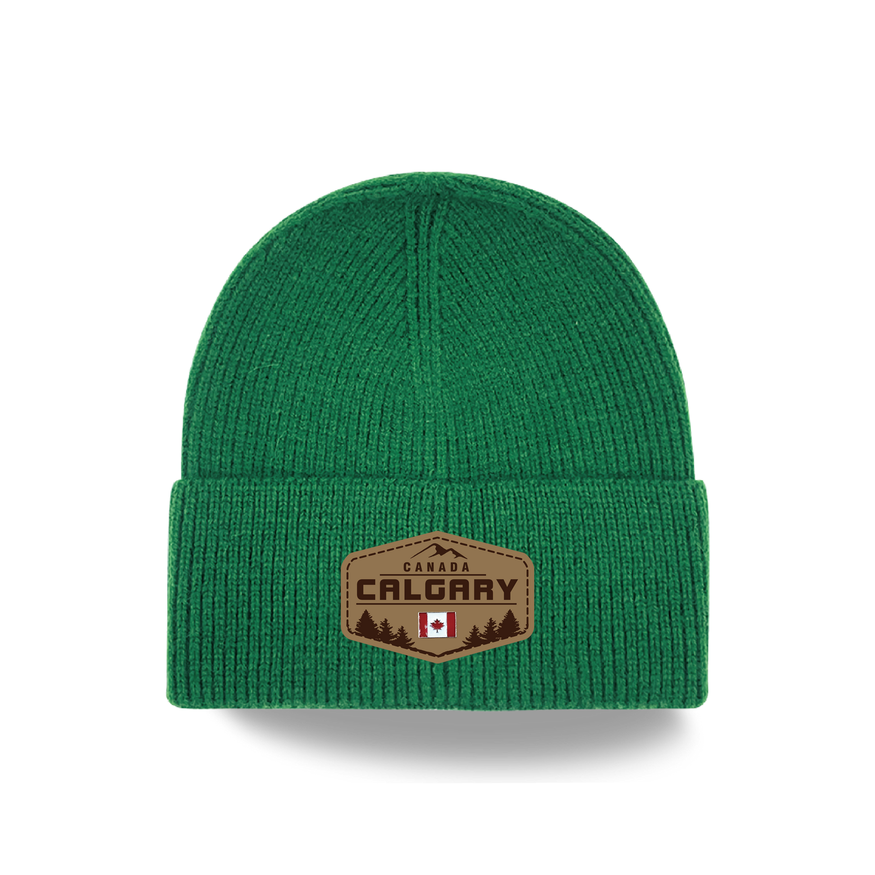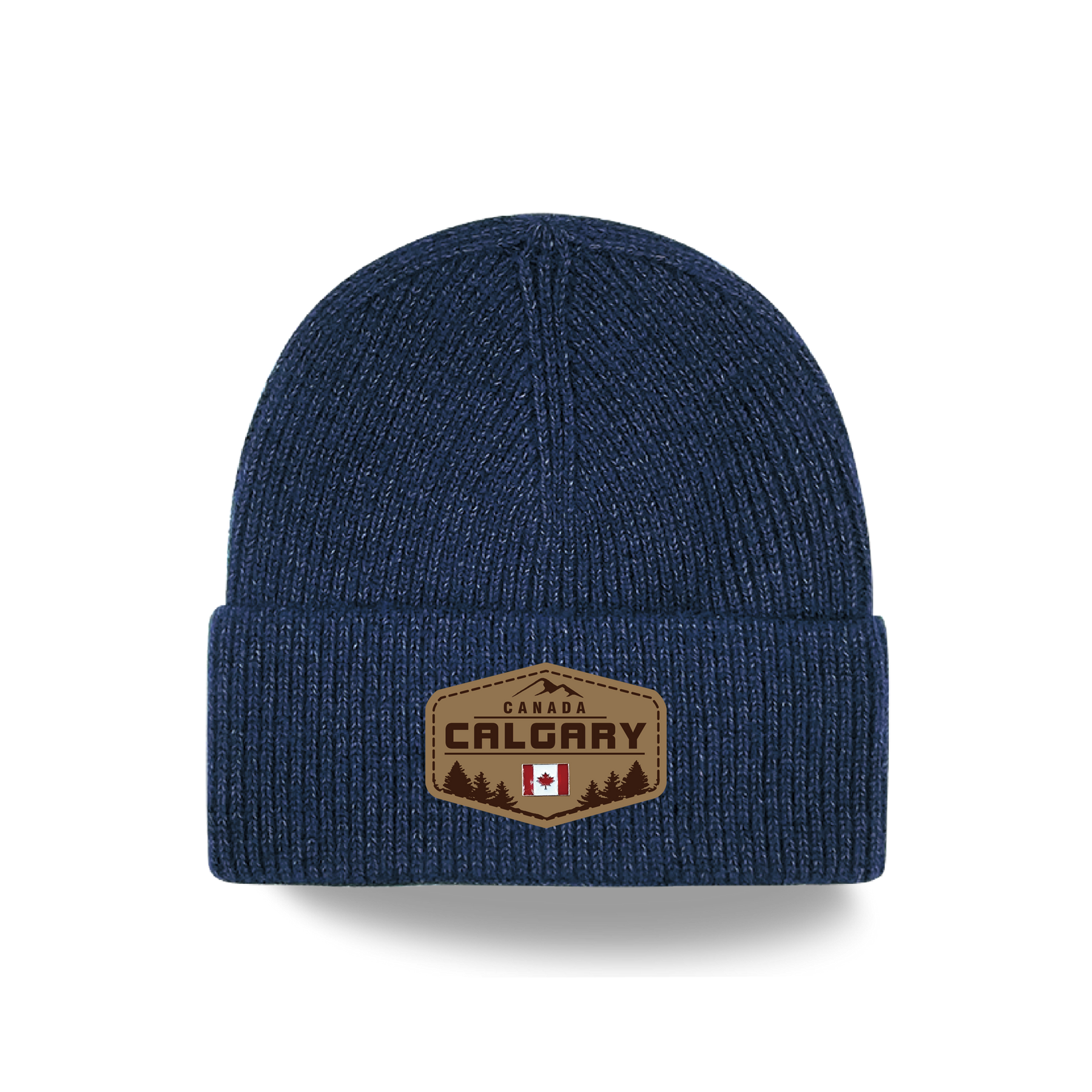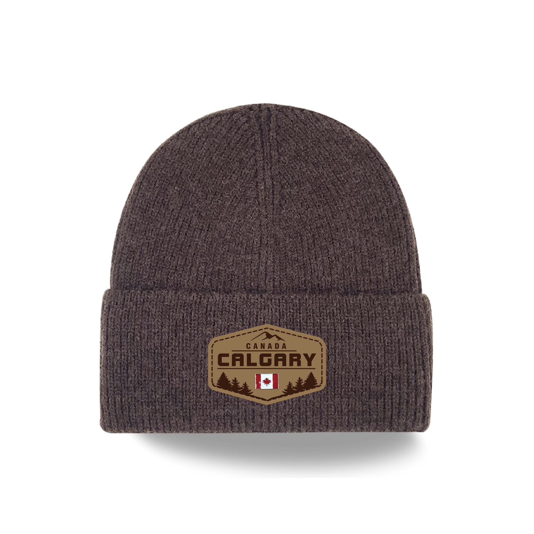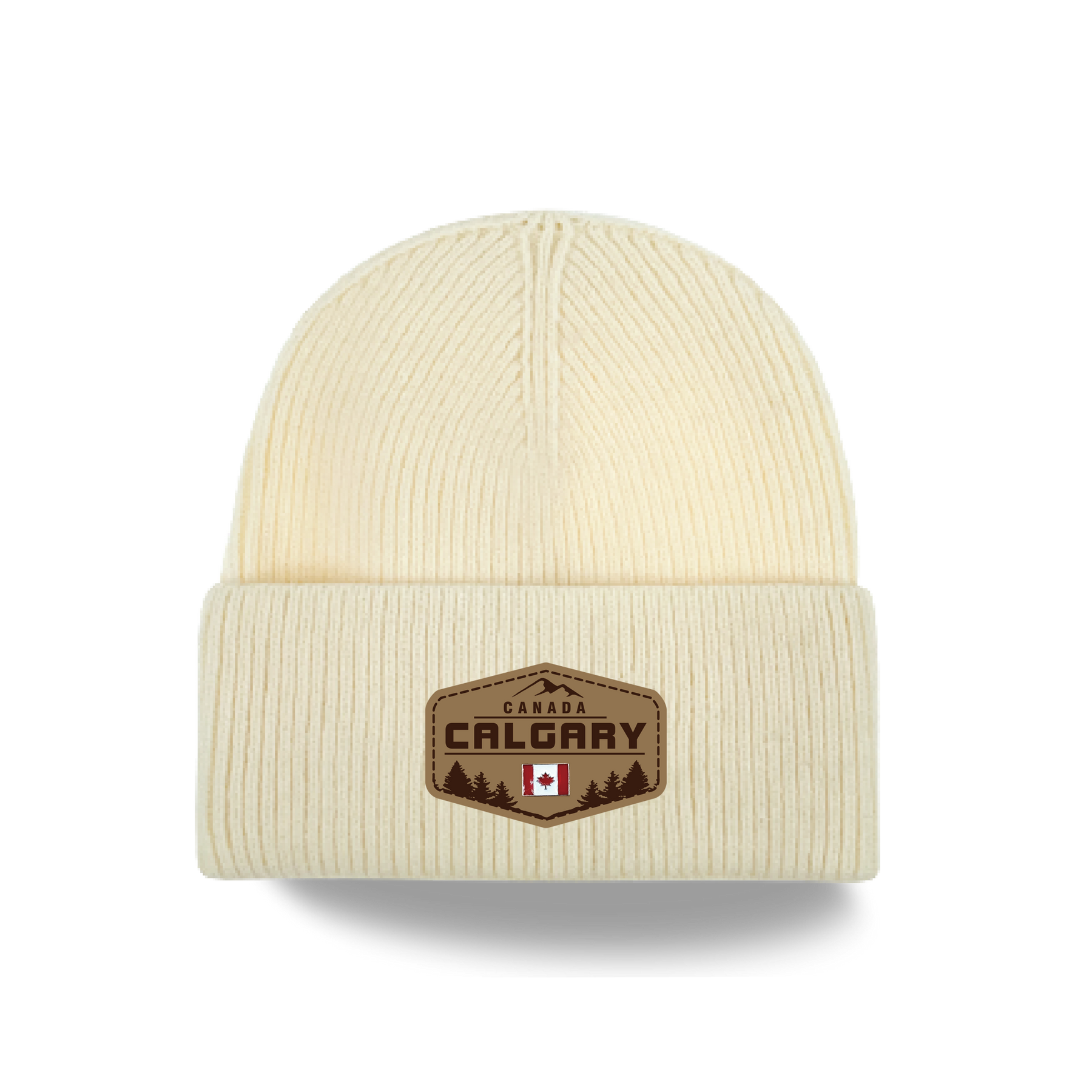 Celebrate the rugged beauty of Alberta with the Calgary Canada Knit Toque, a cozy winter essential inspired by the spirit of the Rockies. The design highlights a mountain-shaped patch featuring pine silhouettes and the Canadian flag, symbolizing Calgary’s connection between urban energy and natural wonder. With its ribbed knit construction and soft neutral tone, this toque blends timeless outdoor style with everyday comfort.