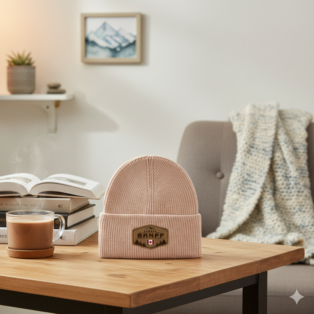 Embrace the spirit of the Canadian Rockies with the Banff Canada Knit Toque, a cozy winter essential inspired by one of Canada’s most breathtaking destinations. The design features a mountain-shaped patch with evergreen silhouettes and the national flag, symbolizing Banff’s wild landscapes and adventurous heart. Its soft ribbed knit texture and warm neutral tone make it both stylish and functional for everyday wear.