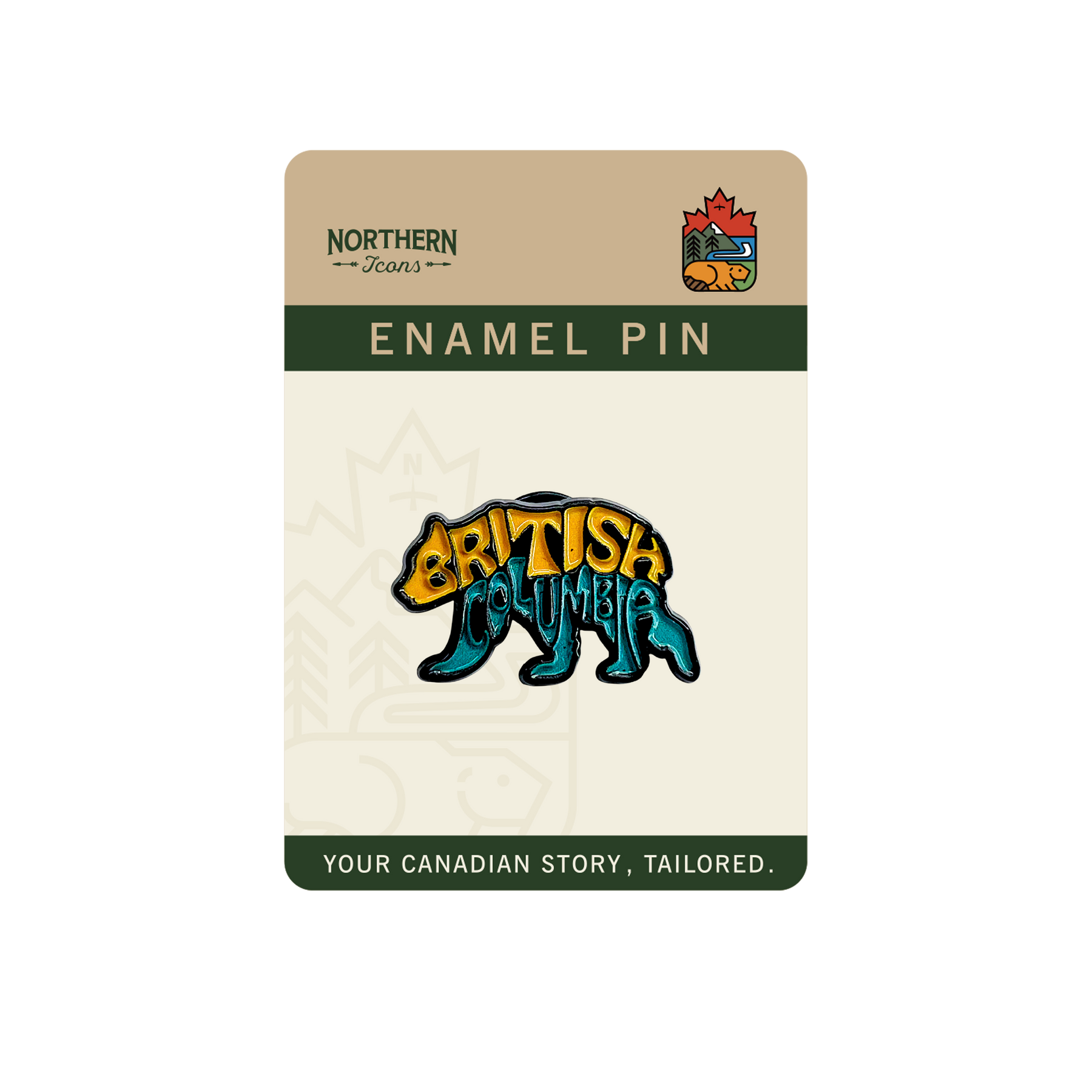 More than a pin, it's a collectible keepsake. Whether sold in gift shops, national park centers, or souvenir boutiques, the BC Bear Typography Pin makes an ideal memento or meaningful gift that celebrates the spirit of Canada’s West Coast.