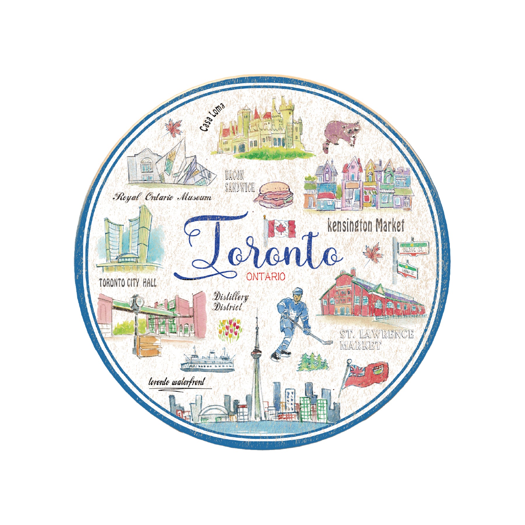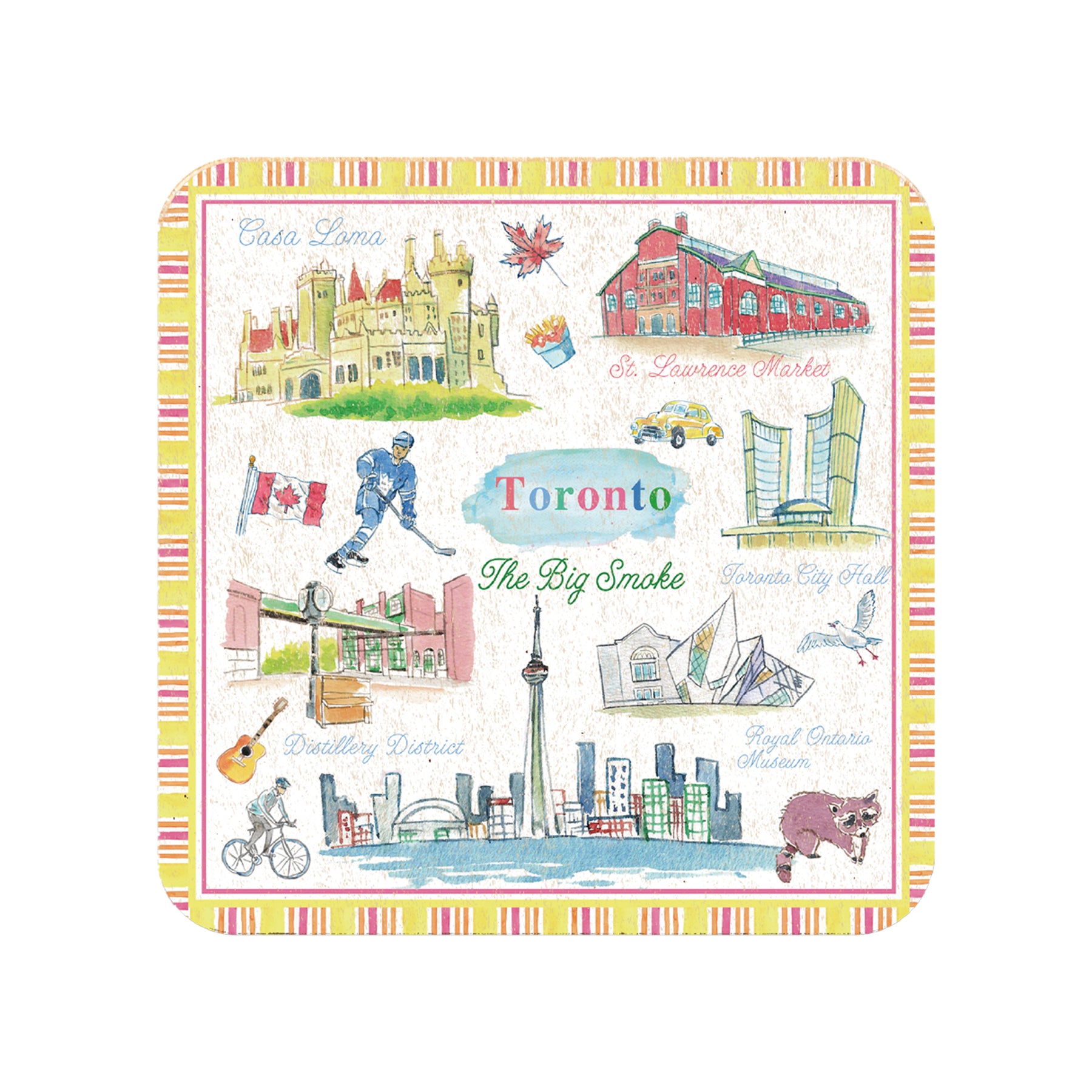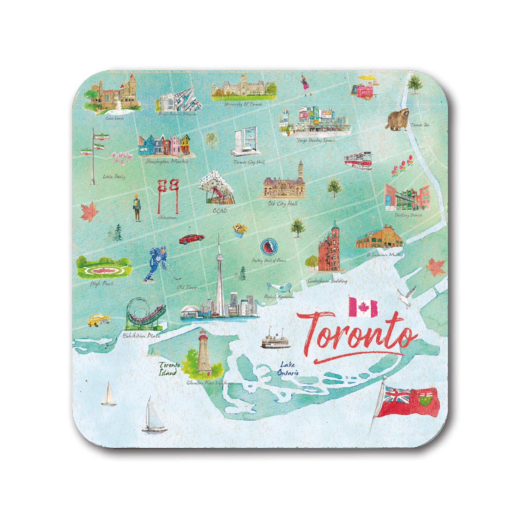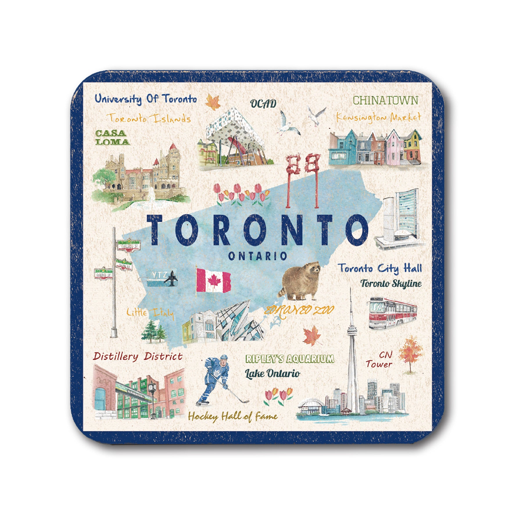 Toronto Ontario Coaster Set – Illustrated Landmark Drink Coasters Home Décor Souvenir Gift