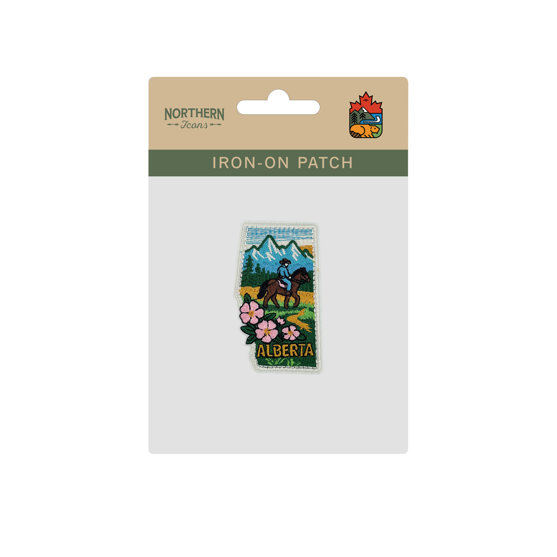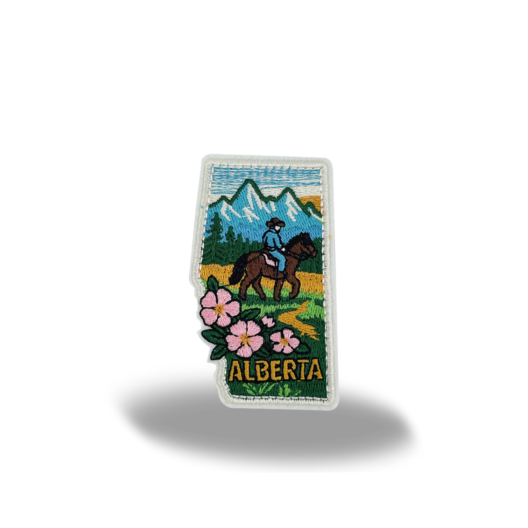 Crafted with durable threads and detailed embroidery textures, this patch adds a scenic, story-rich touch to jackets, backpacks, hats, and travel gear. The blend of horseback imagery, mountain backdrop, and floral symbolism makes it a meaningful keepsake for travellers, collectors, and anyone who loves Western culture and Alberta’s natural beauty. Whether used for personalization or shared as a thoughtful gift, this patch captures the heart of Alberta’s outdoor lifestyle.