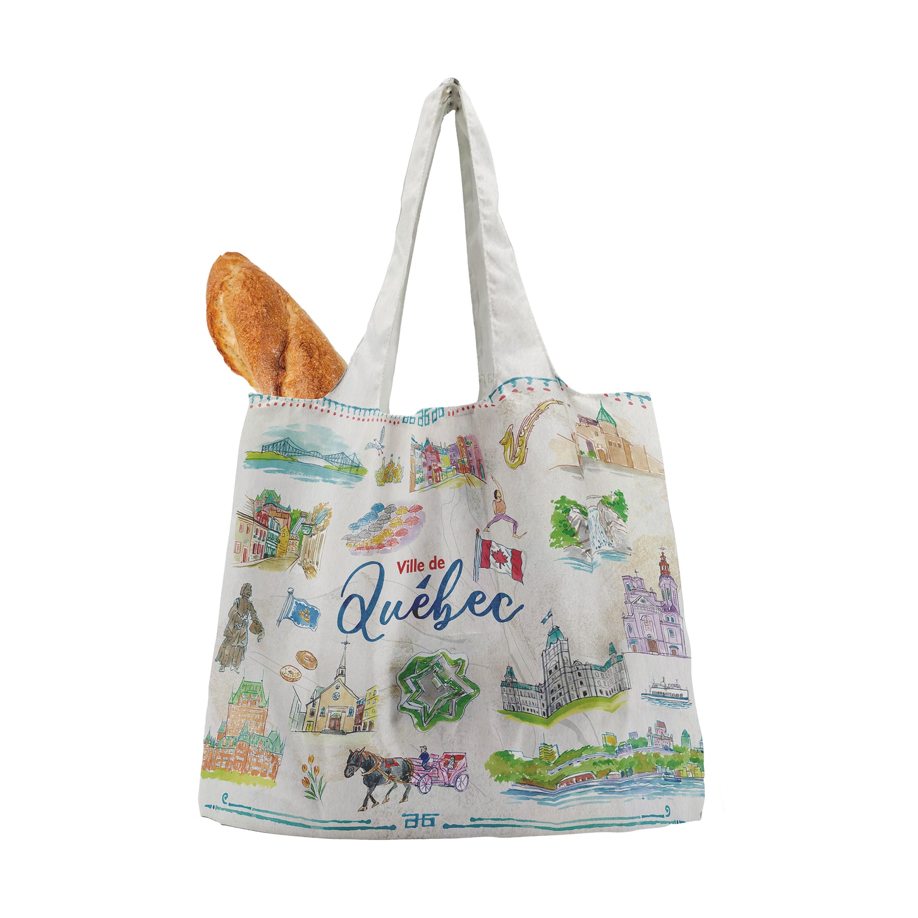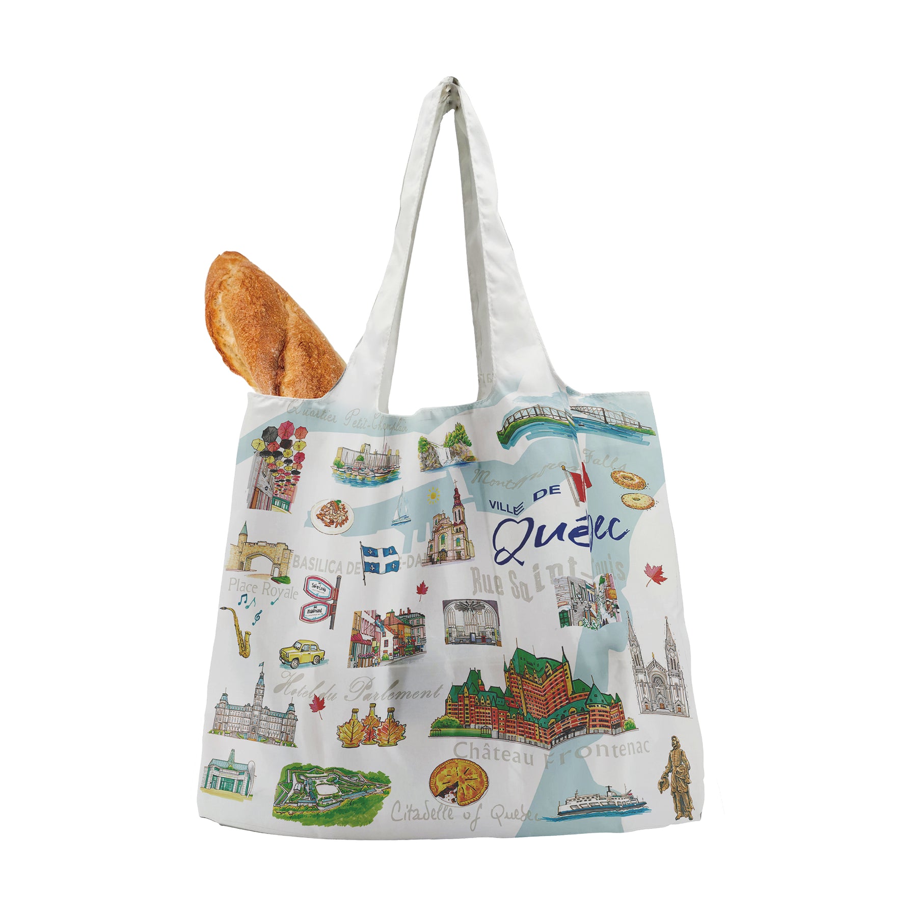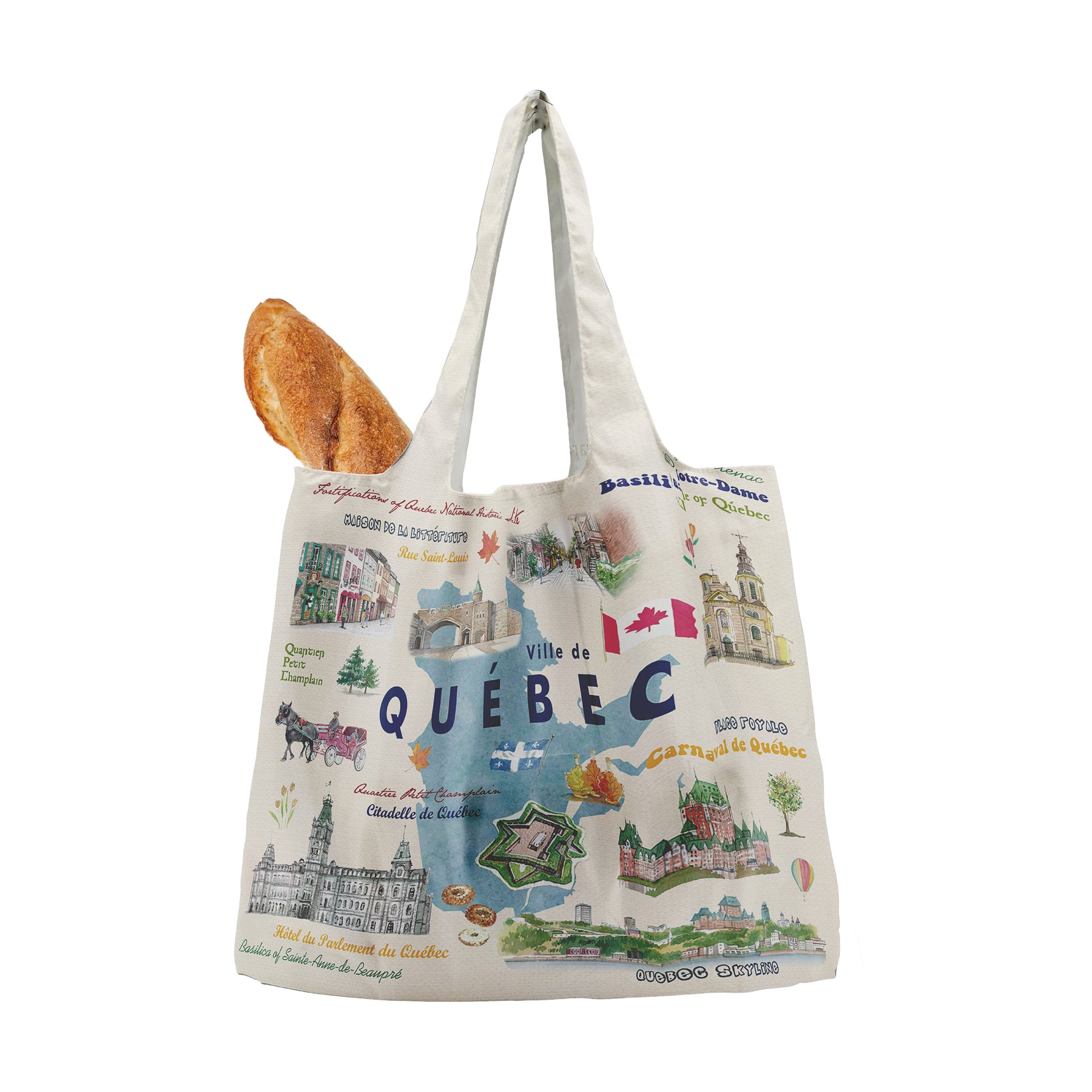 Ville de Québec Foldable Reusable Shopping Bag – Canadian Landmark Travel Souvenir Tote