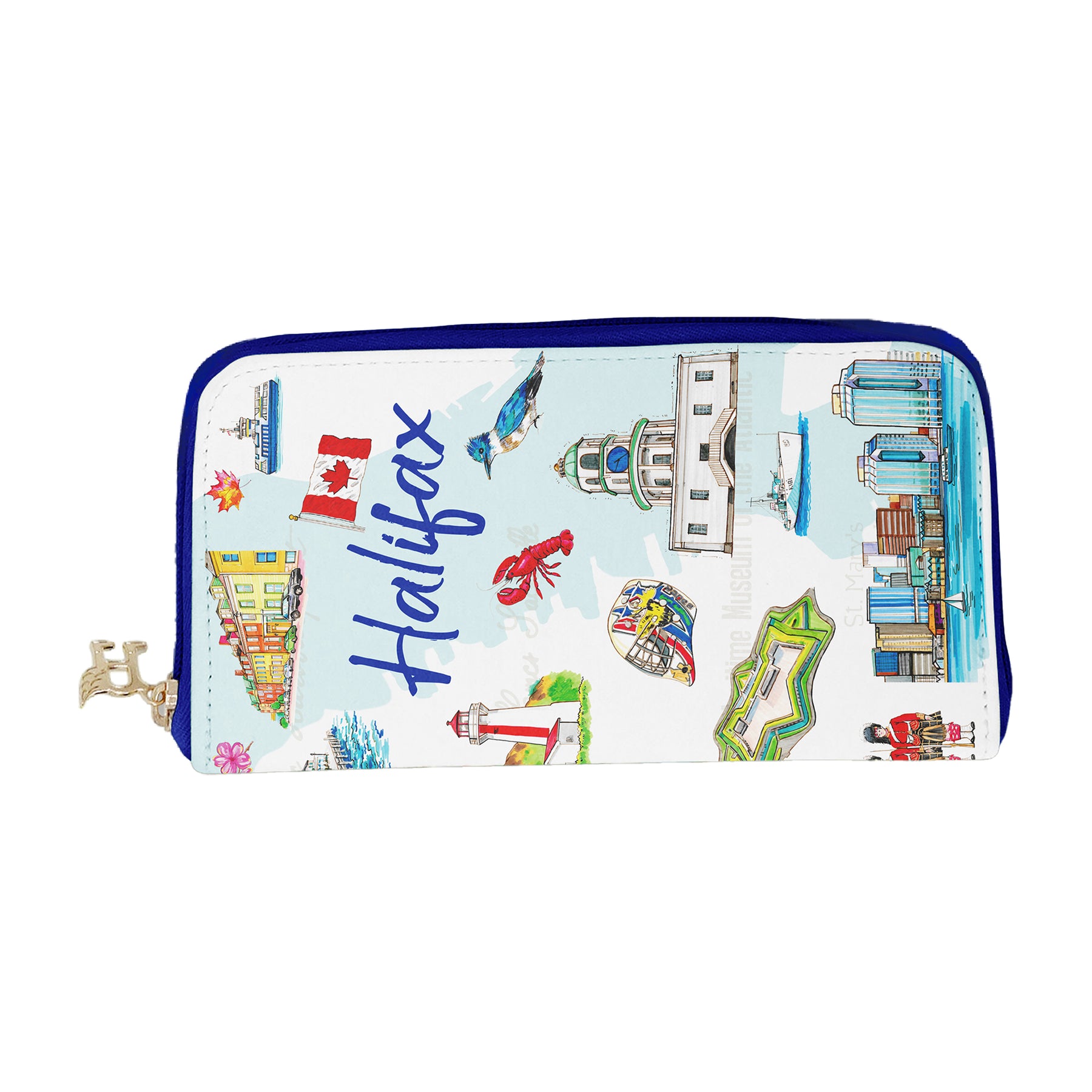 Halifax Nova Scotia Illustrated Large Zip Wallet for Travel Essentials