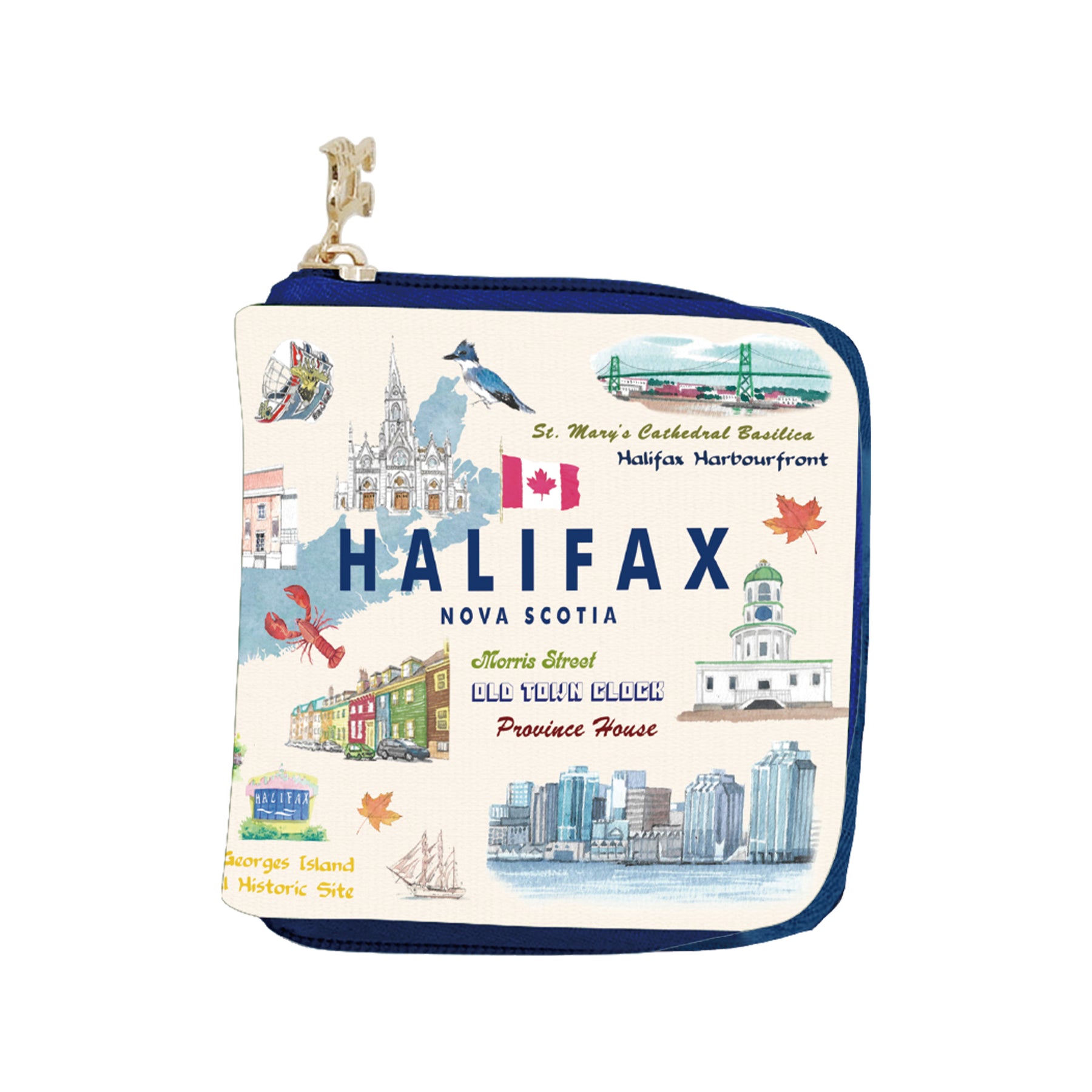 The wallet’s smooth zip closure keeps essentials safe, while the compact size makes it easy to slip into bags, backpacks, or jacket pockets. Inside, organized compartments offer convenient storage for cards, folded bills, and small essentials. Both functional and beautifully illustrated, it’s a keepsake that captures the essence of Nova Scotia’s coastal capital.