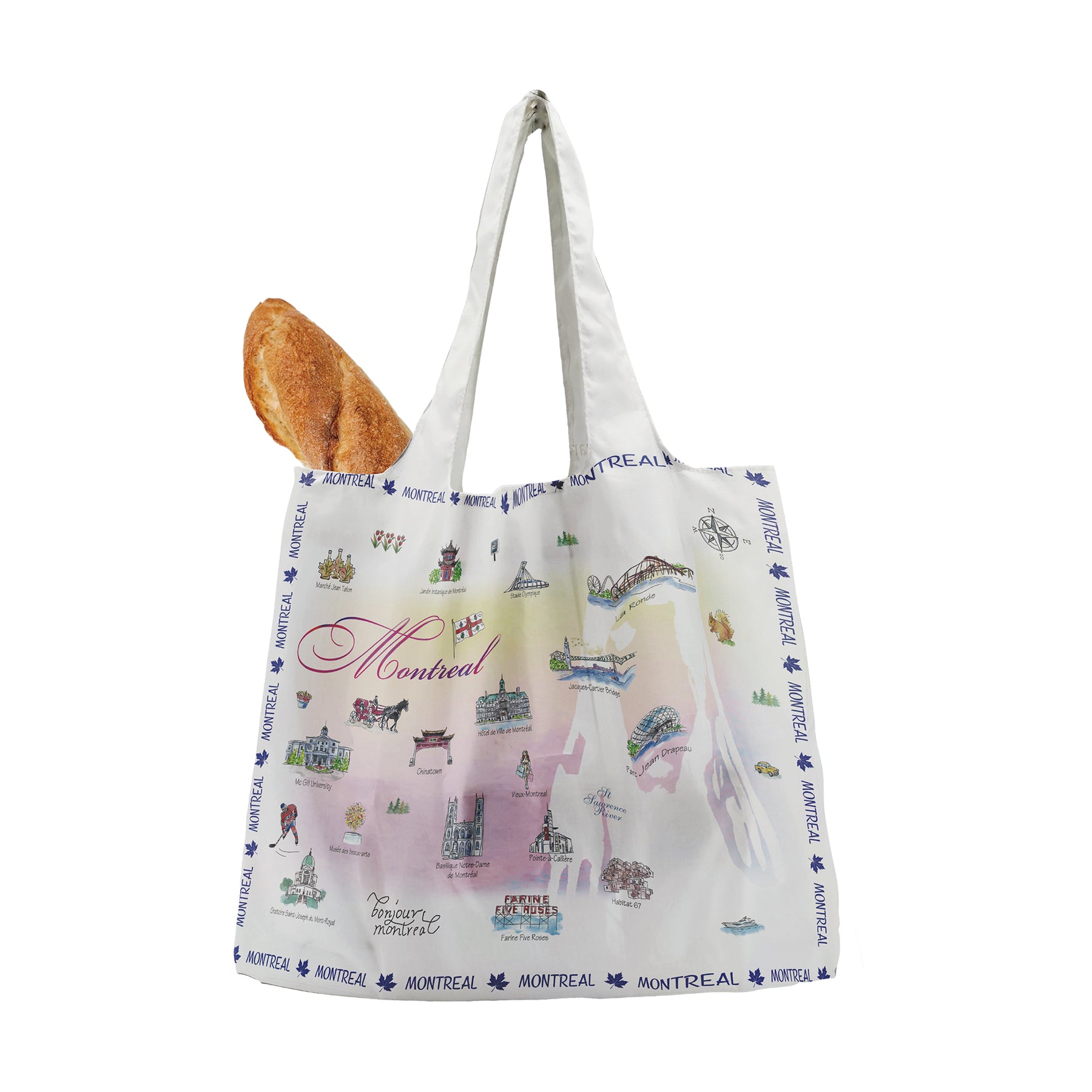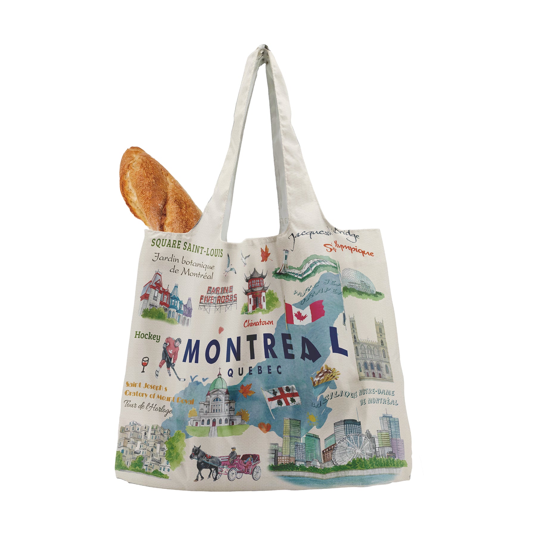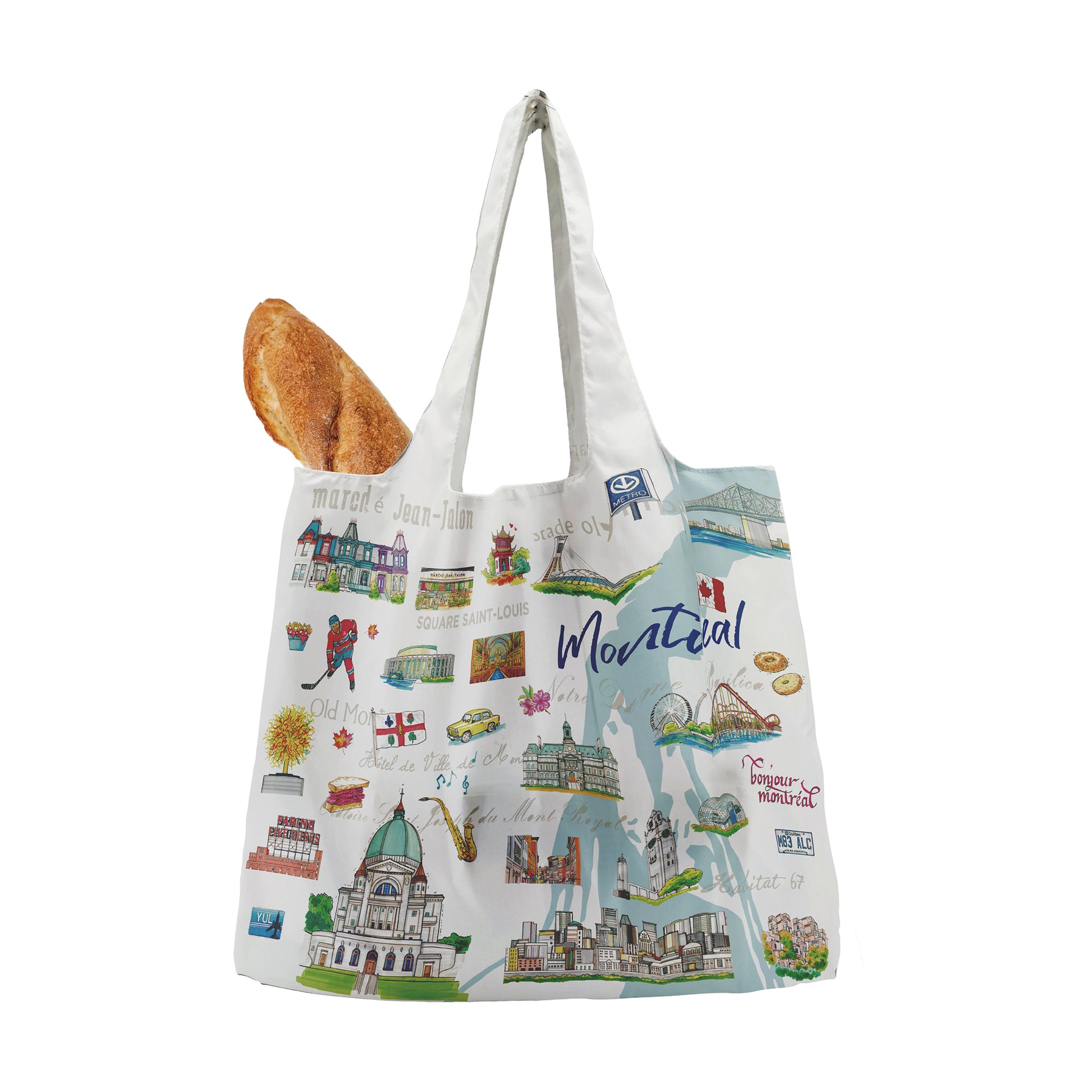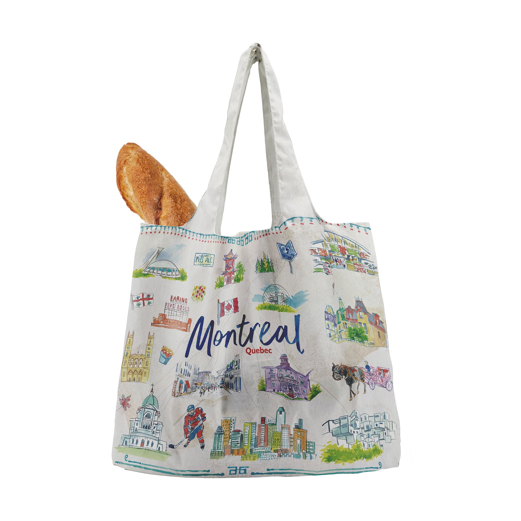 Montreal Quebec City Foldable Bag – Illustrated Canada Landmarks Reusable Travel Bag
