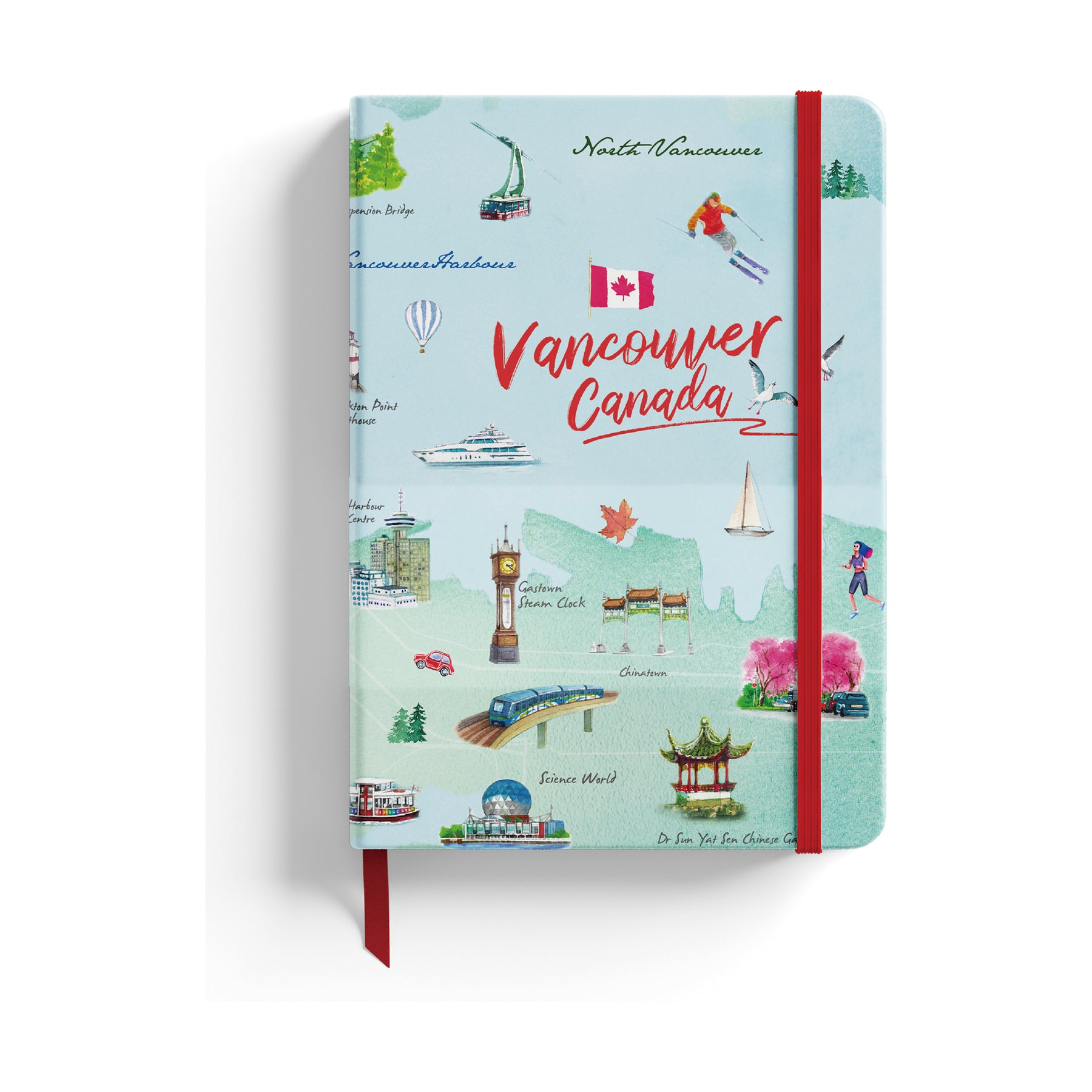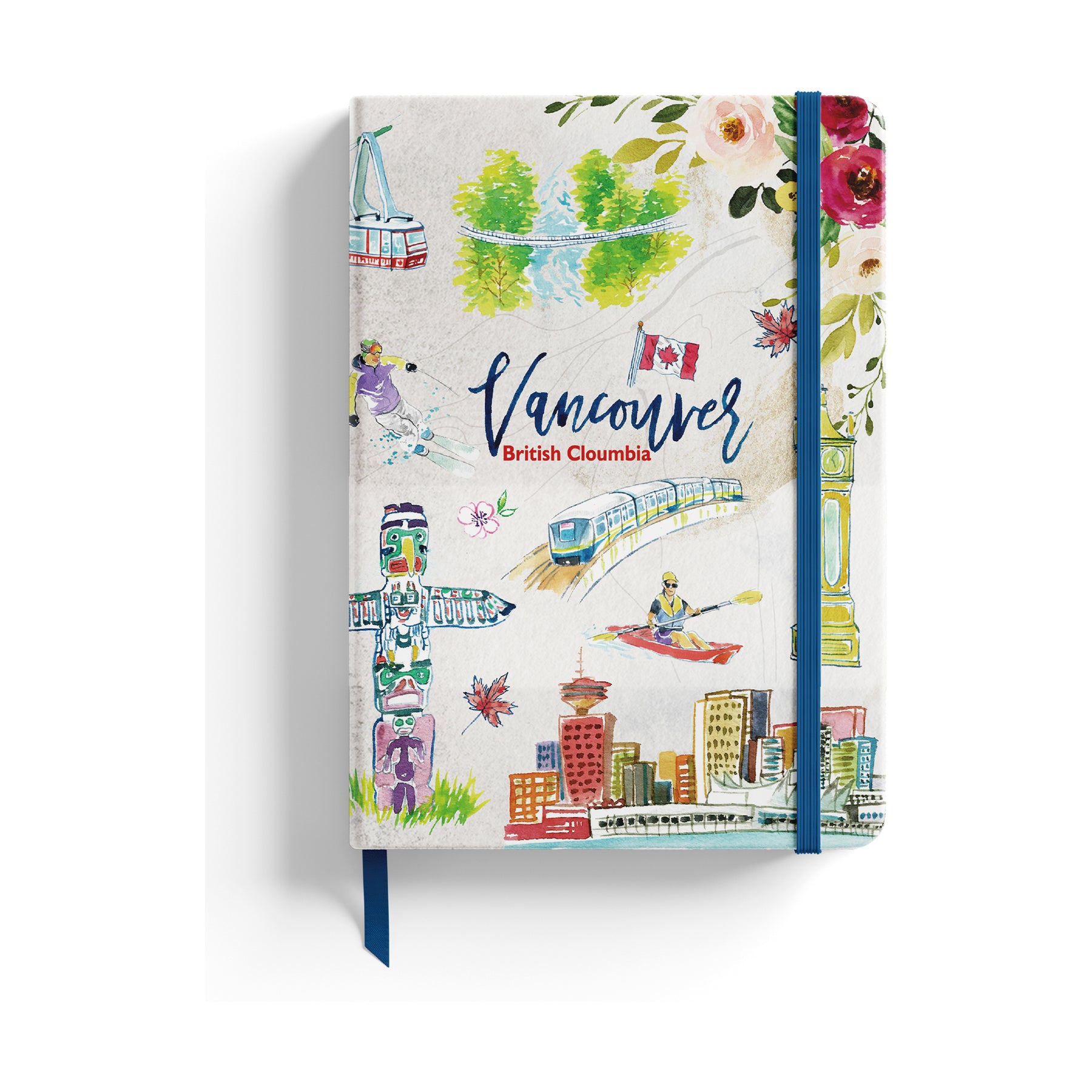Designed for both function and expression, this A5 notebook includes smooth writing paper, an elastic band closure, and a ribbon bookmark for easy organization. Perfect for journaling, sketching, or note-taking, it’s a stylish keepsake that captures the spirit of Vancouver’s beauty and adventure.