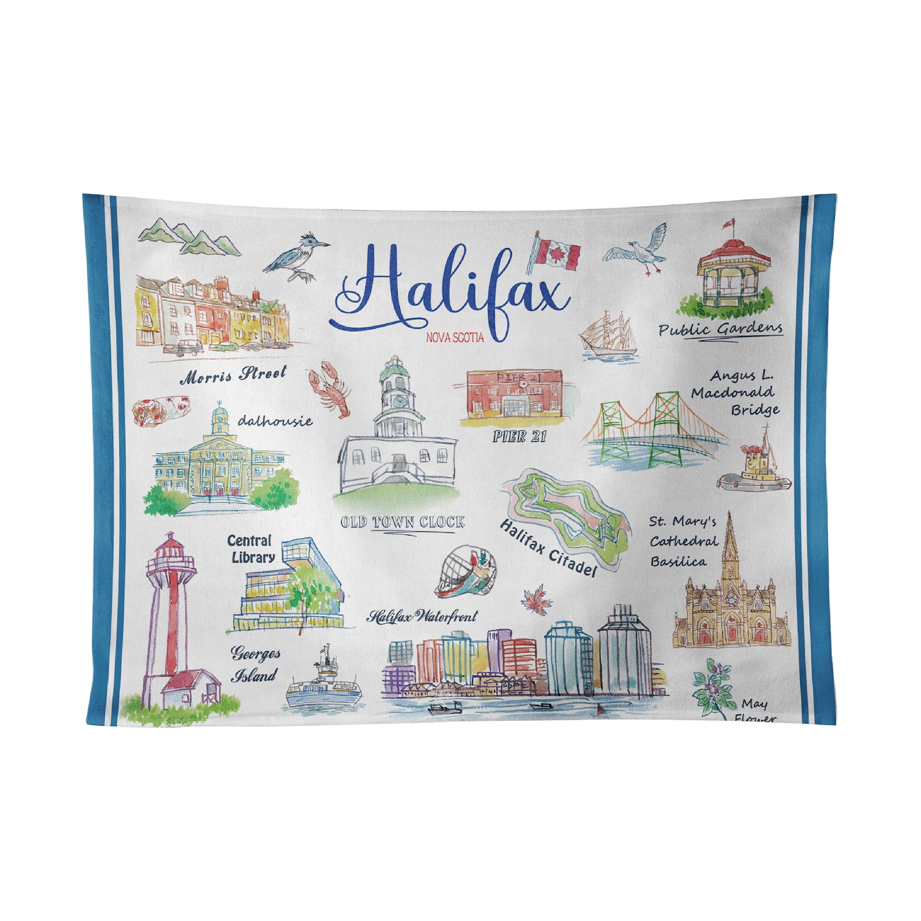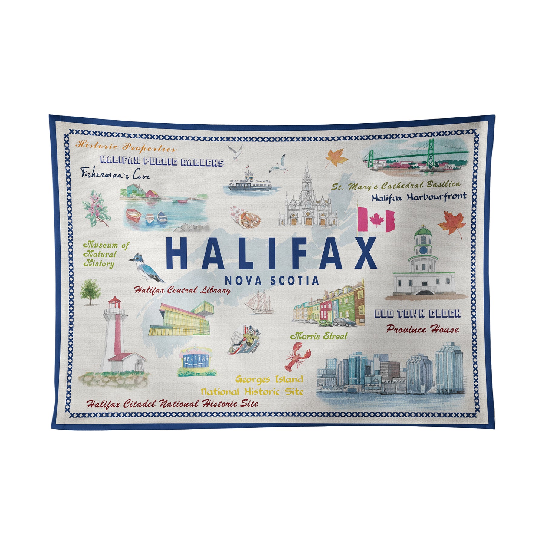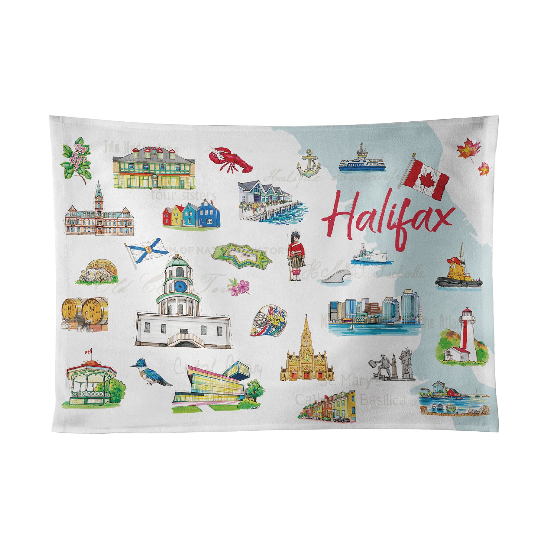 Halifax Nova Scotia Illustrated Souvenir Cotton Tea Towel