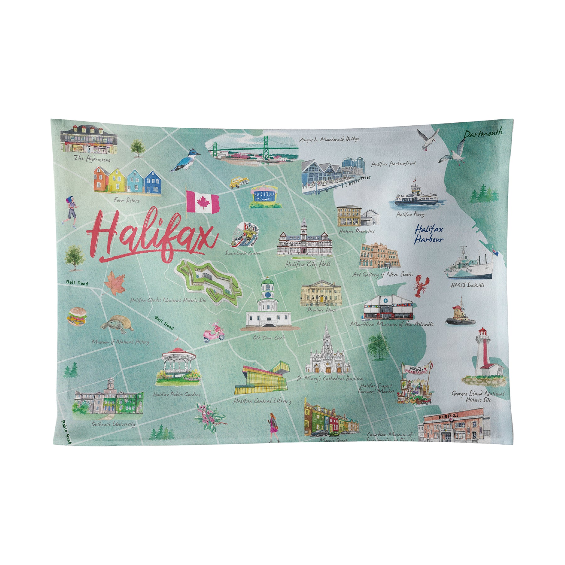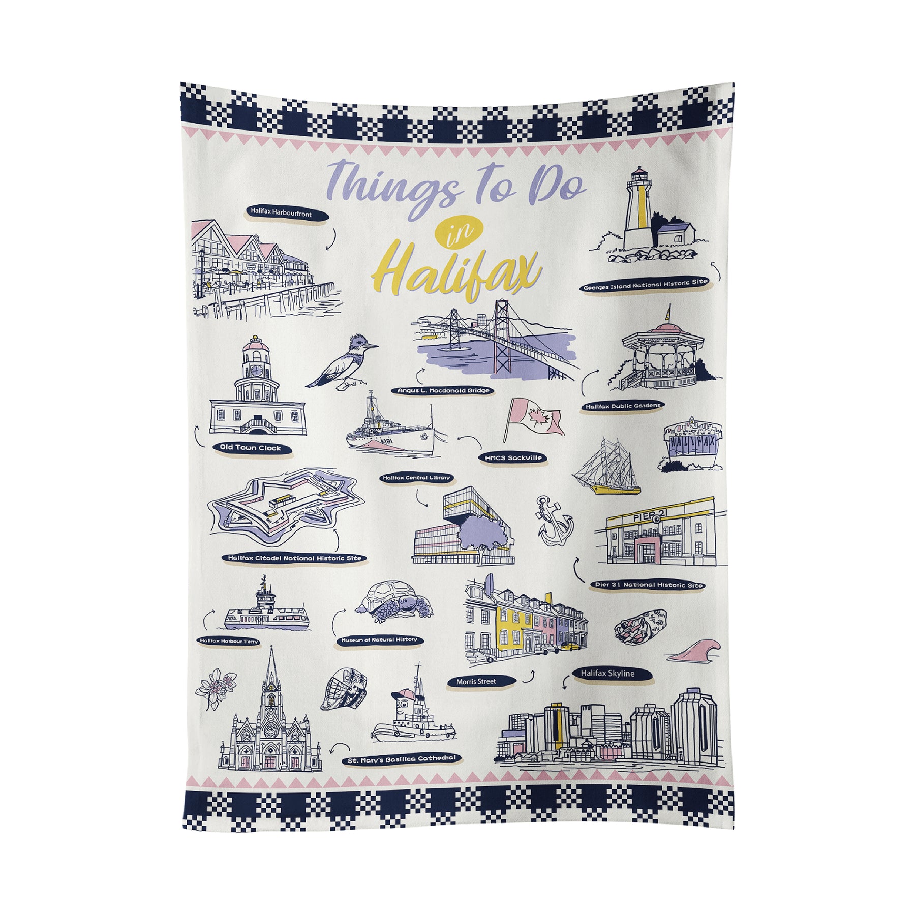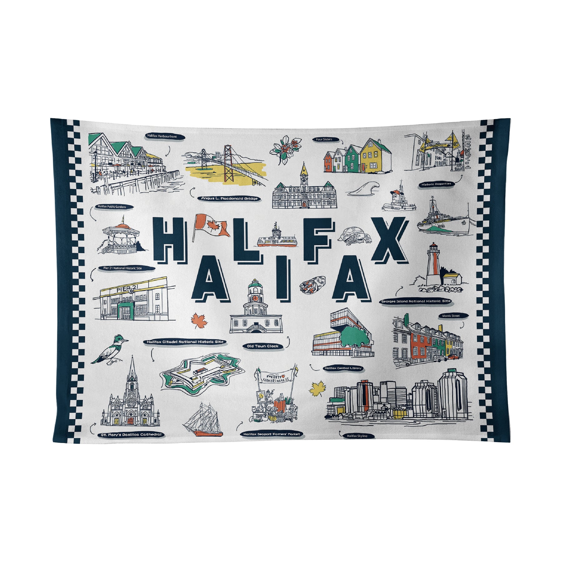 Halifax Nova Scotia Illustrated Souvenir Cotton Tea Towel