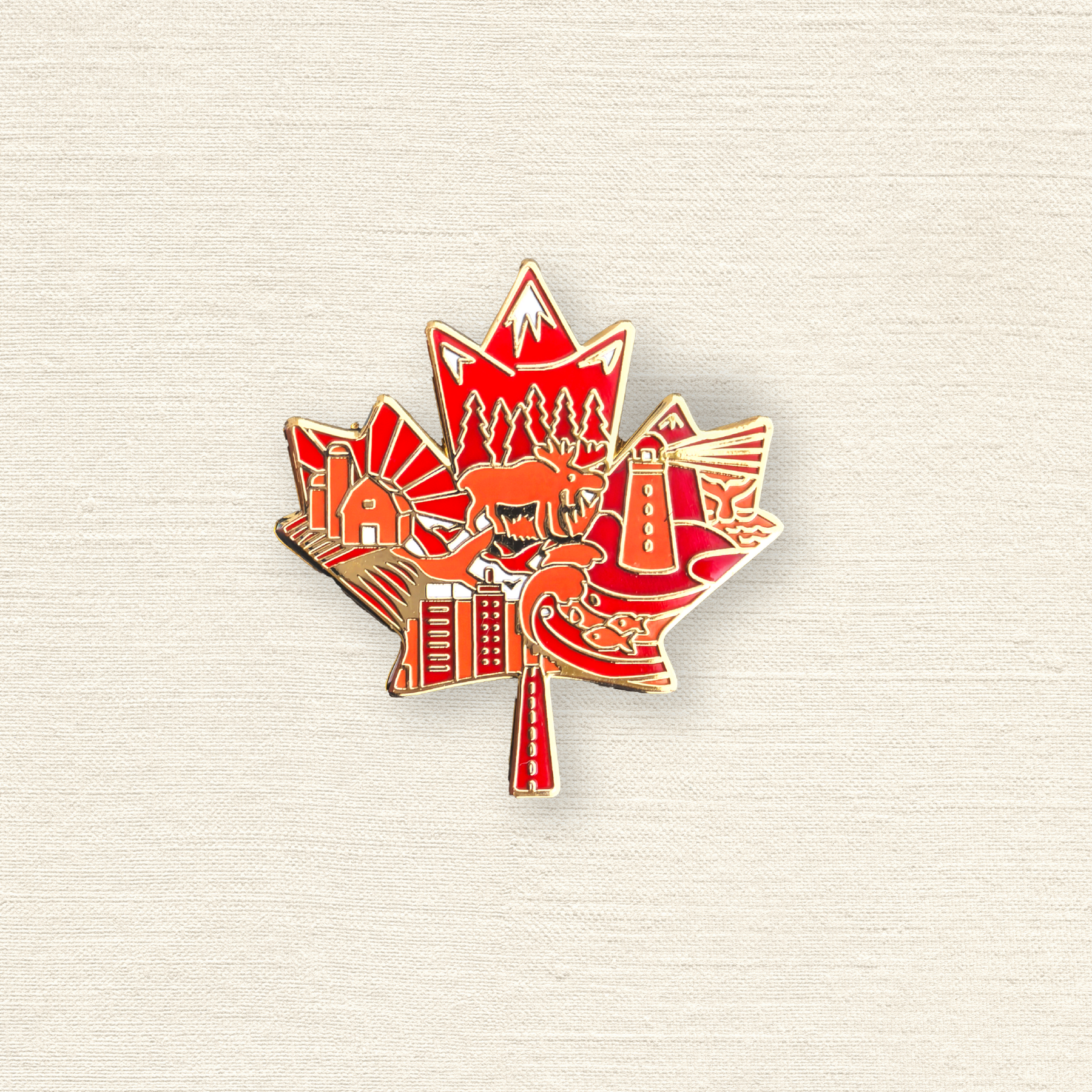 Canada Maple Leaf Enamel Pin – Scenic Landmarks and Wildlife Souvenir