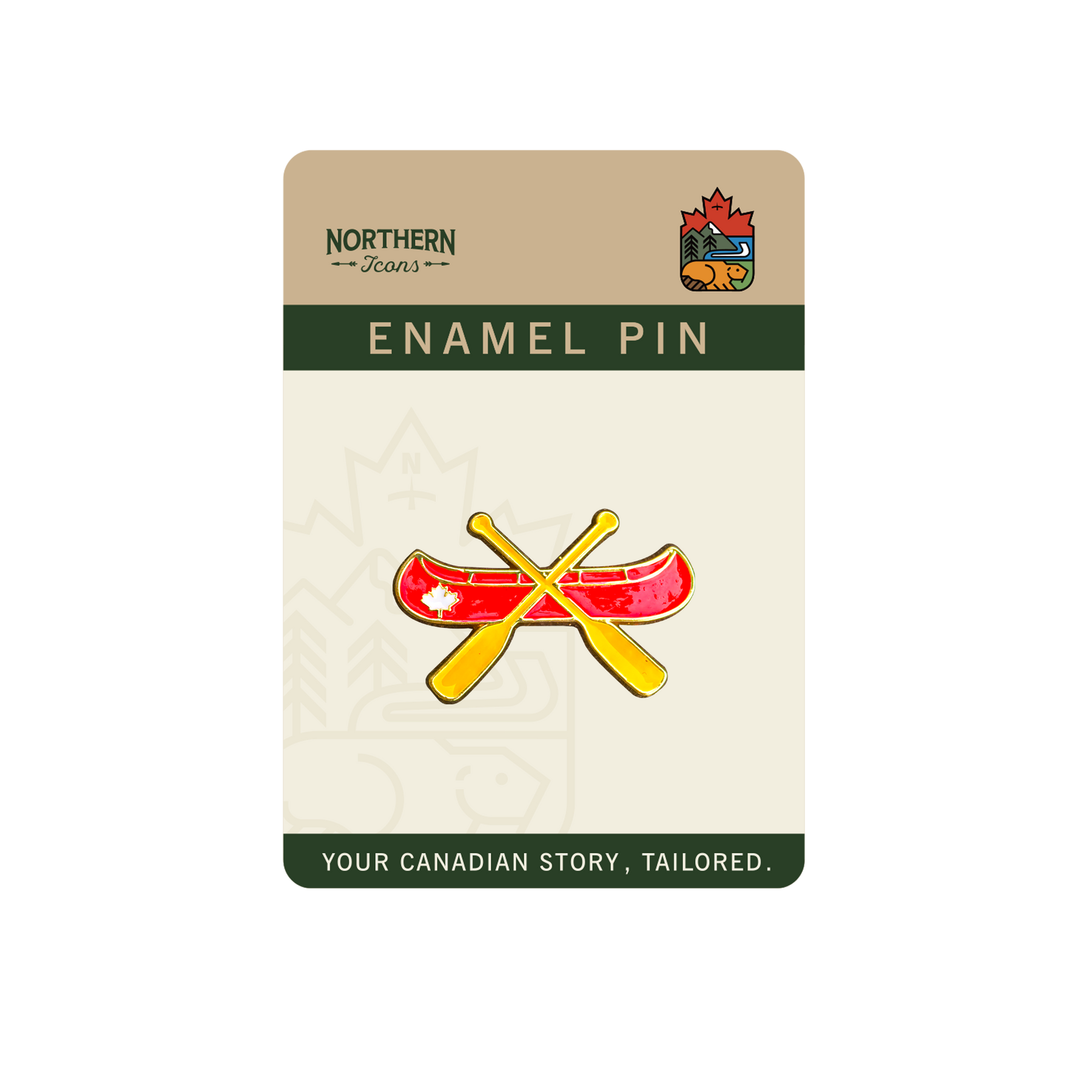 Canadian Canoe Enamel Pin – Maple Leaf Paddles Adventure Souvenir Gift