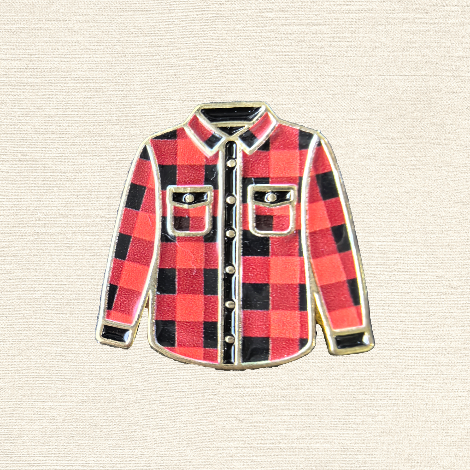 Red Plaid Flannel Shirt Enamel Pin – Classic Lumberjack Canadian Souve