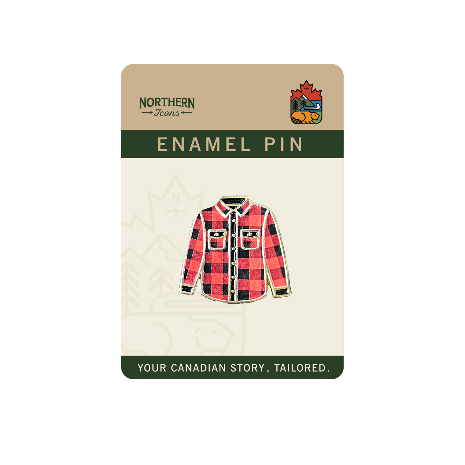 Crafted with durable metal and smooth enamel, this pin combines nostalgic charm with modern craftsmanship. Whether you wear it on your jacket, backpack, or hat, it’s a subtle yet bold nod to Canada’s iconic flannel heritage. Perfect for travelers, collectors, or anyone who loves rustic outdoor style.