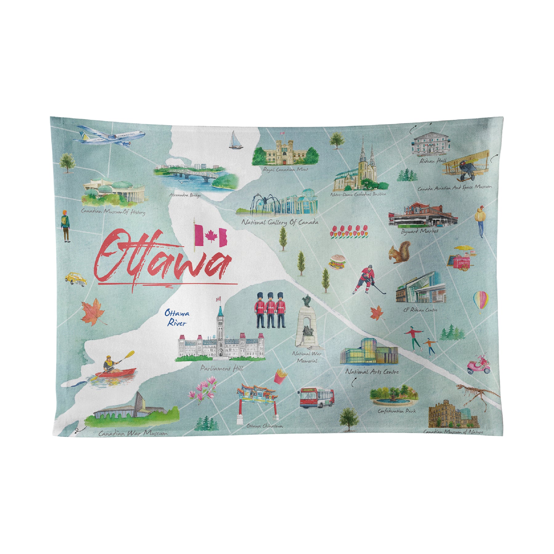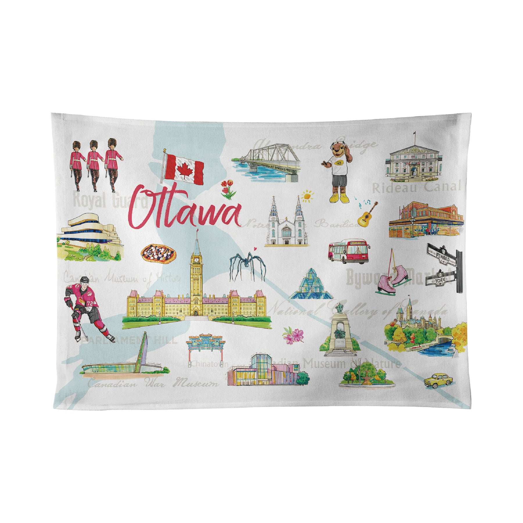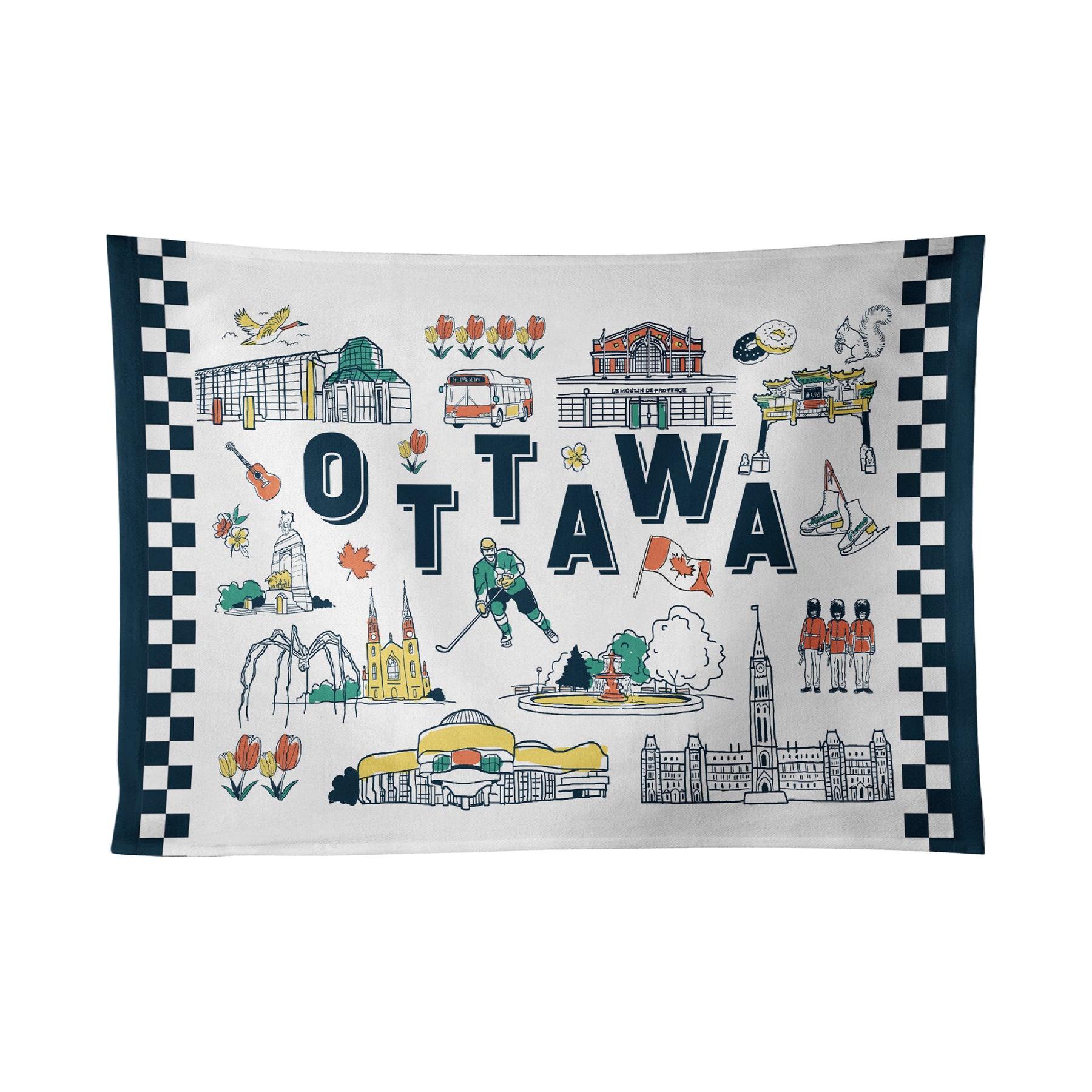 Ottawa City Landmarks Cotton Tea Towel with Illustrated Design – Canad