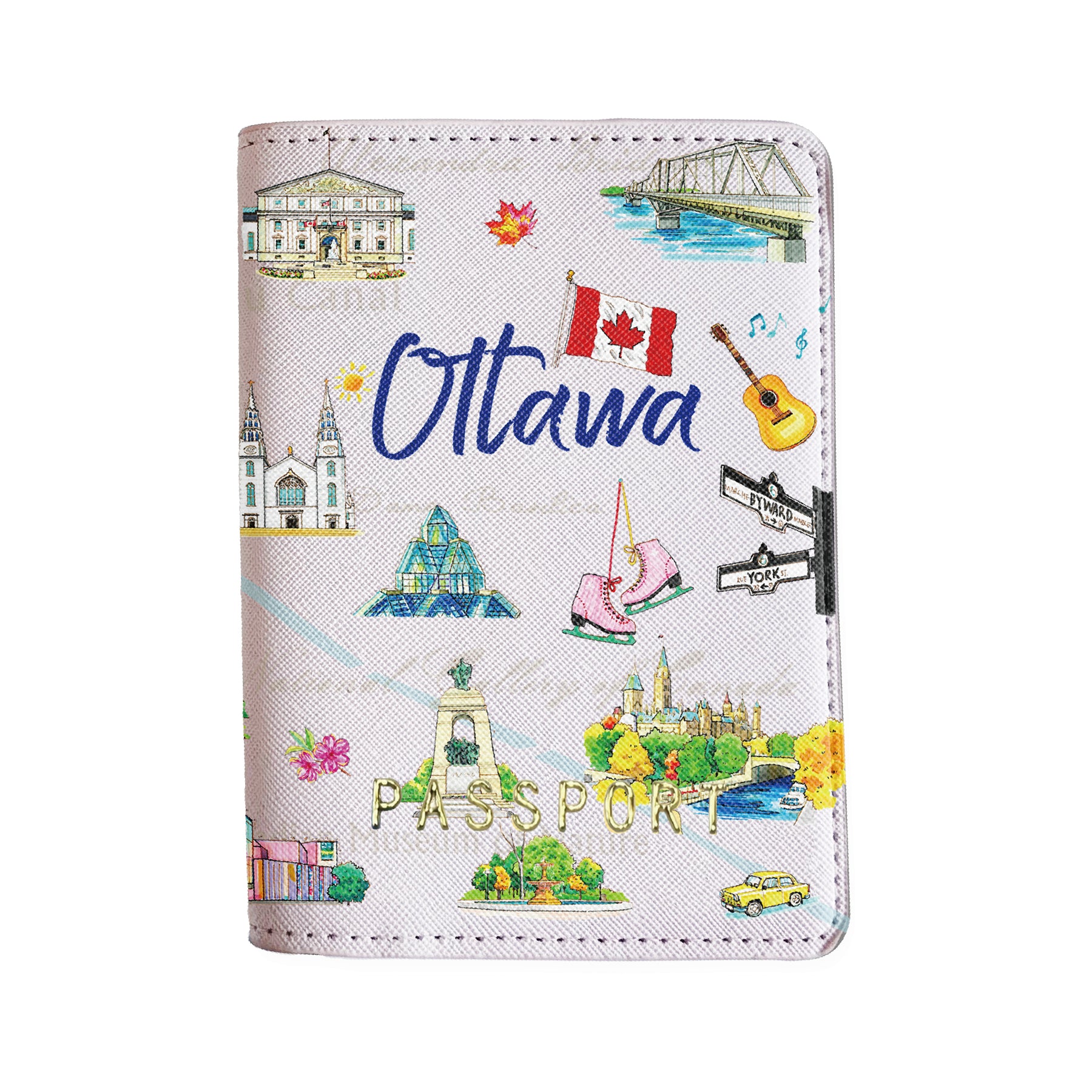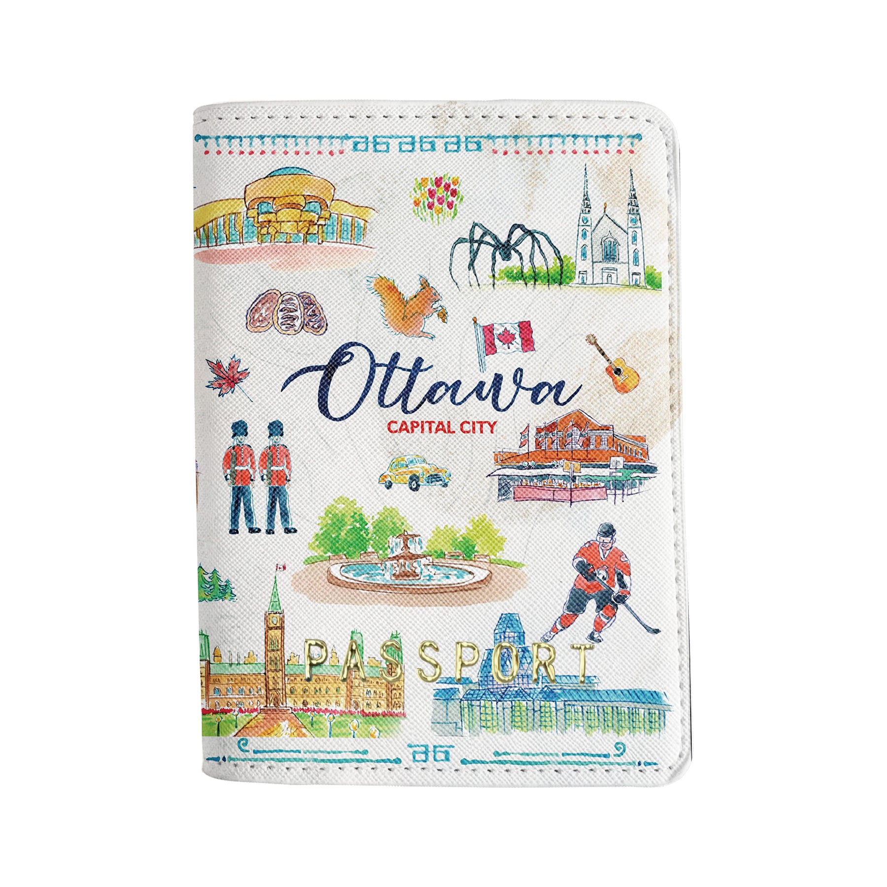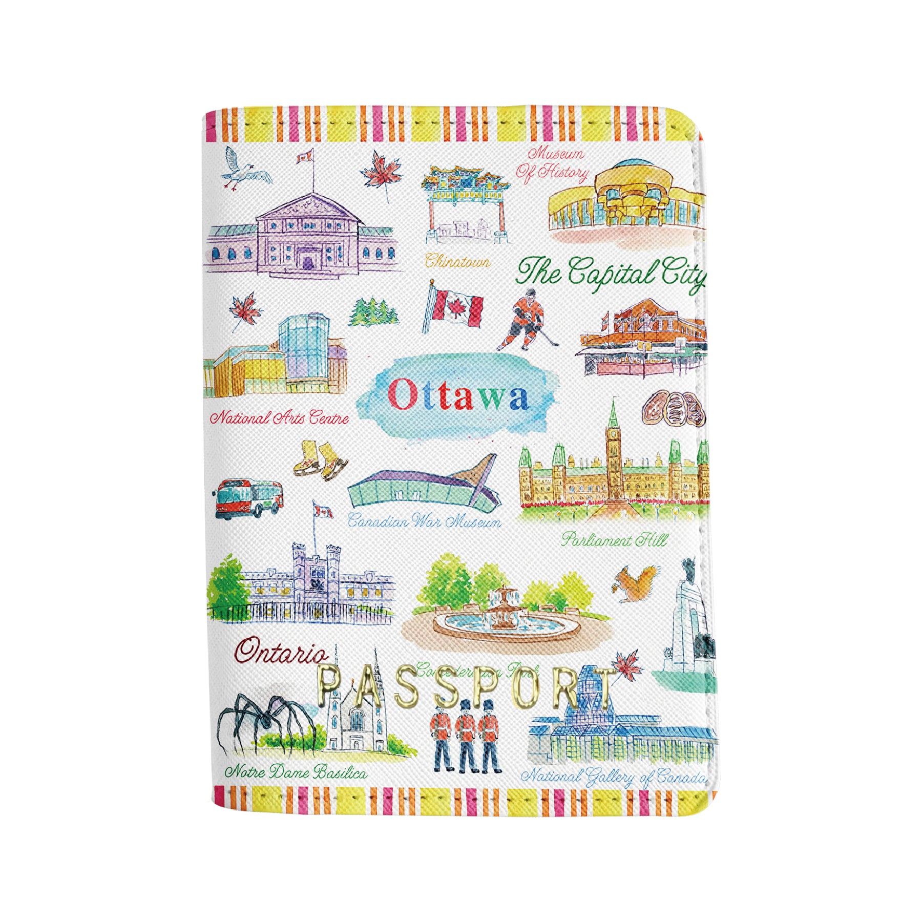 Ottawa Illustrated Passport Cover Travel Protector Case for Canada Trips