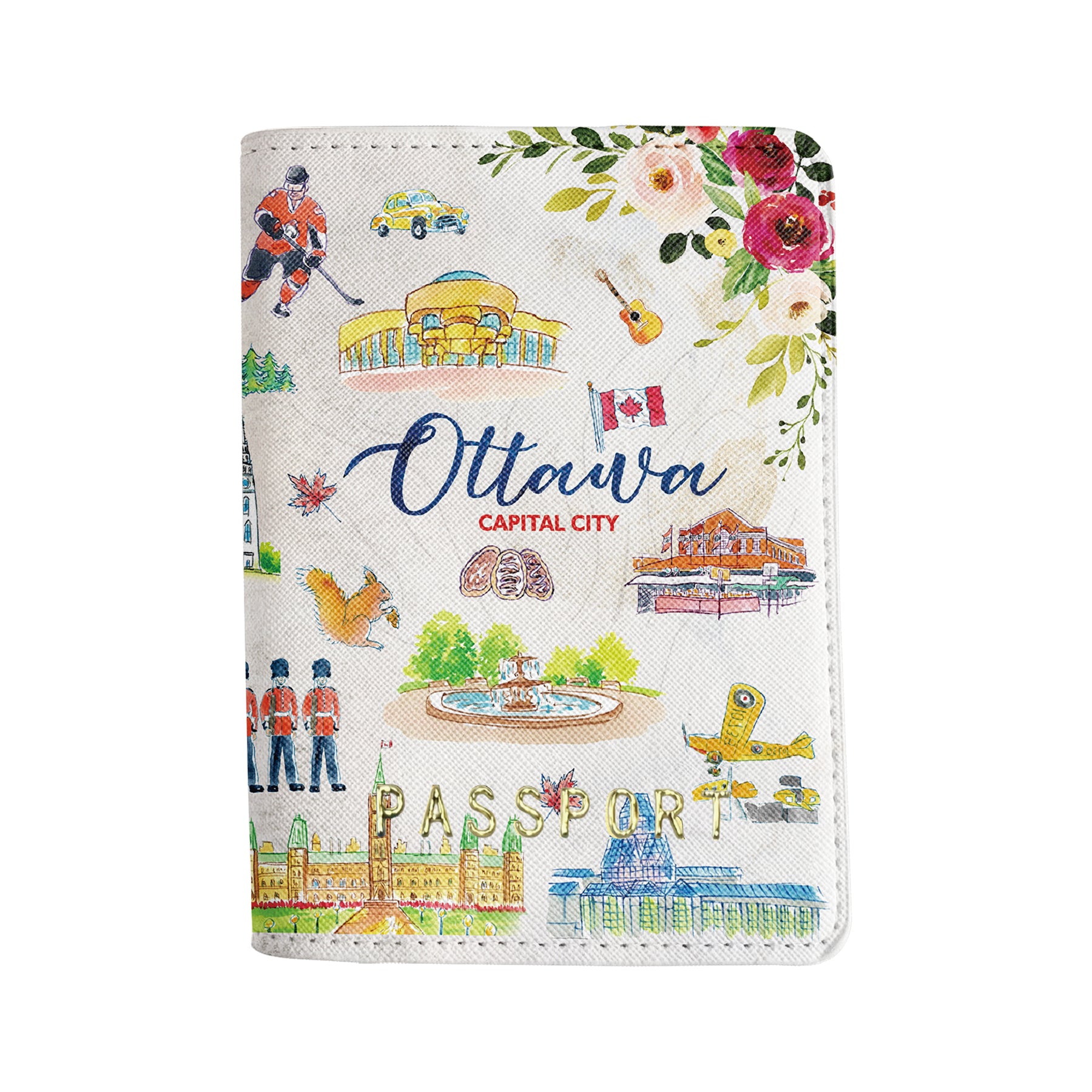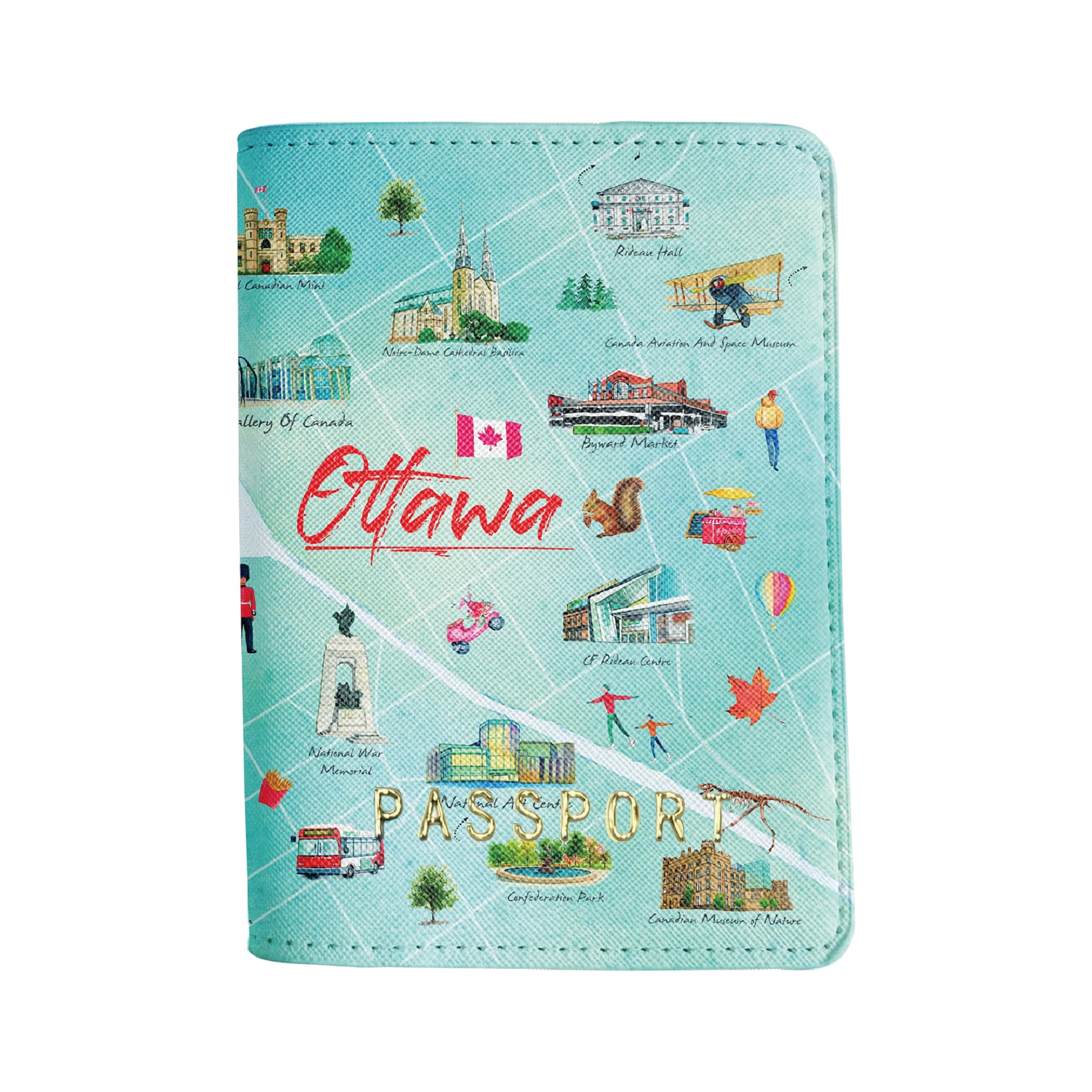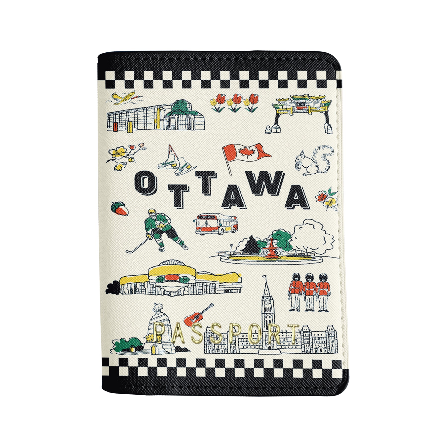 Ottawa Illustrated Passport Cover Travel Protector Case for Canada Trips
