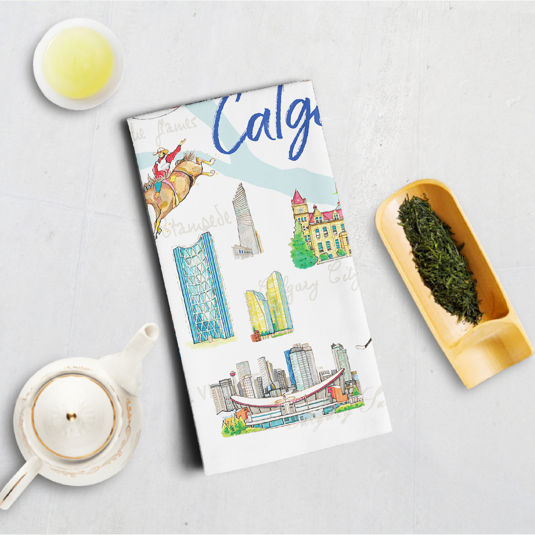 Calgary Alberta Illustrated Tea Towel – Cotton Kitchen Dish Towel for