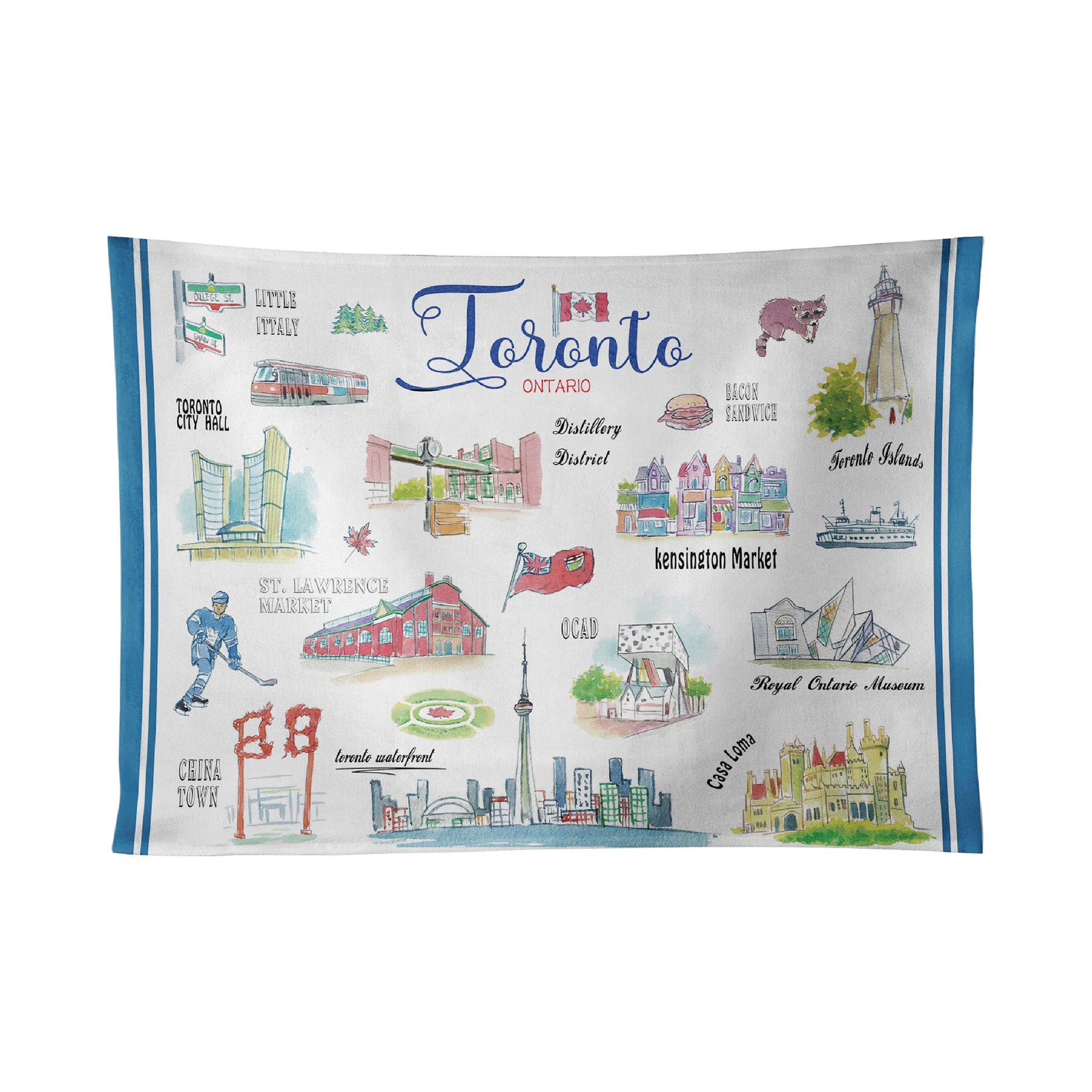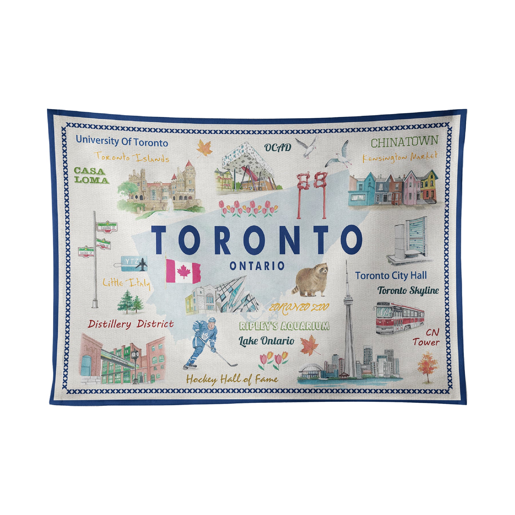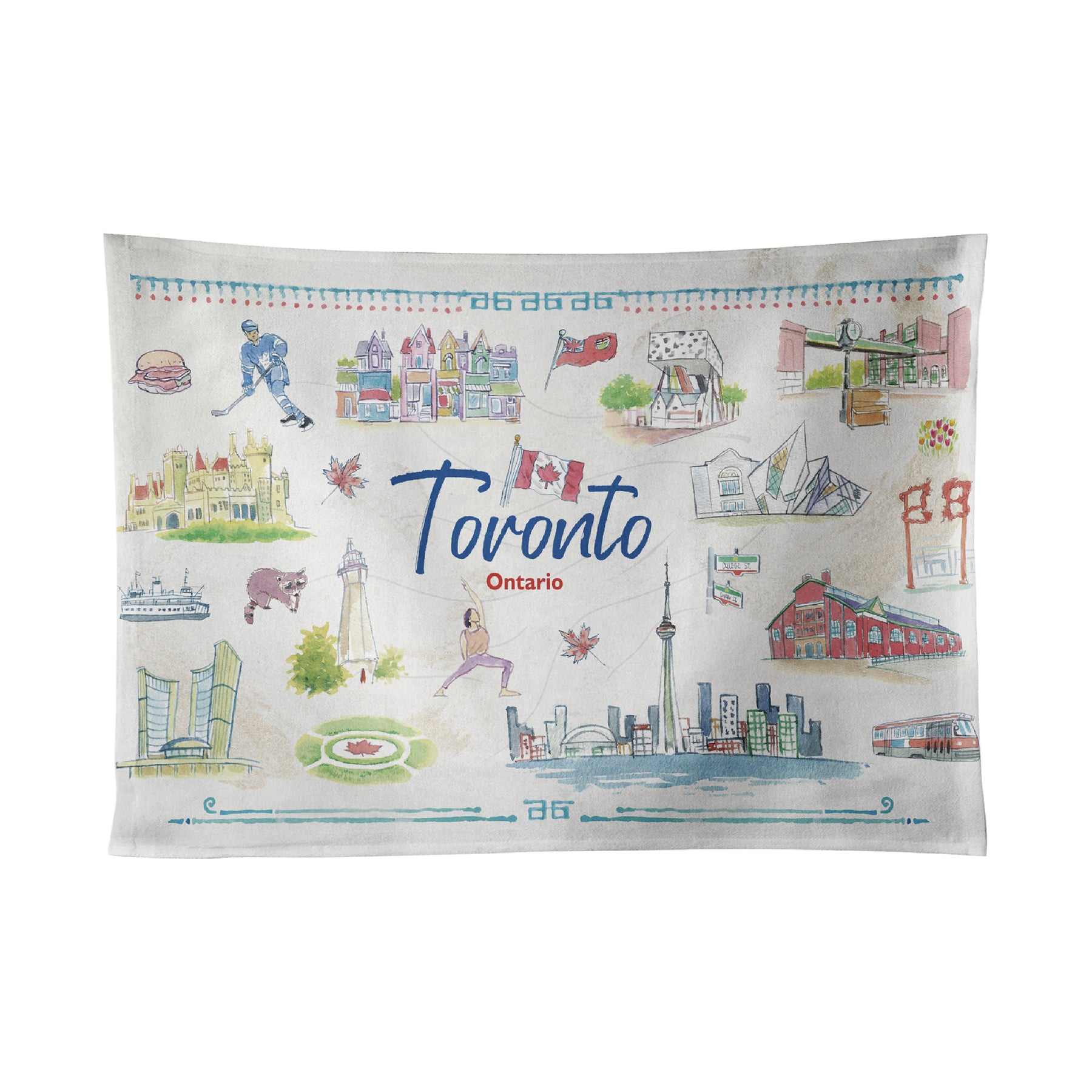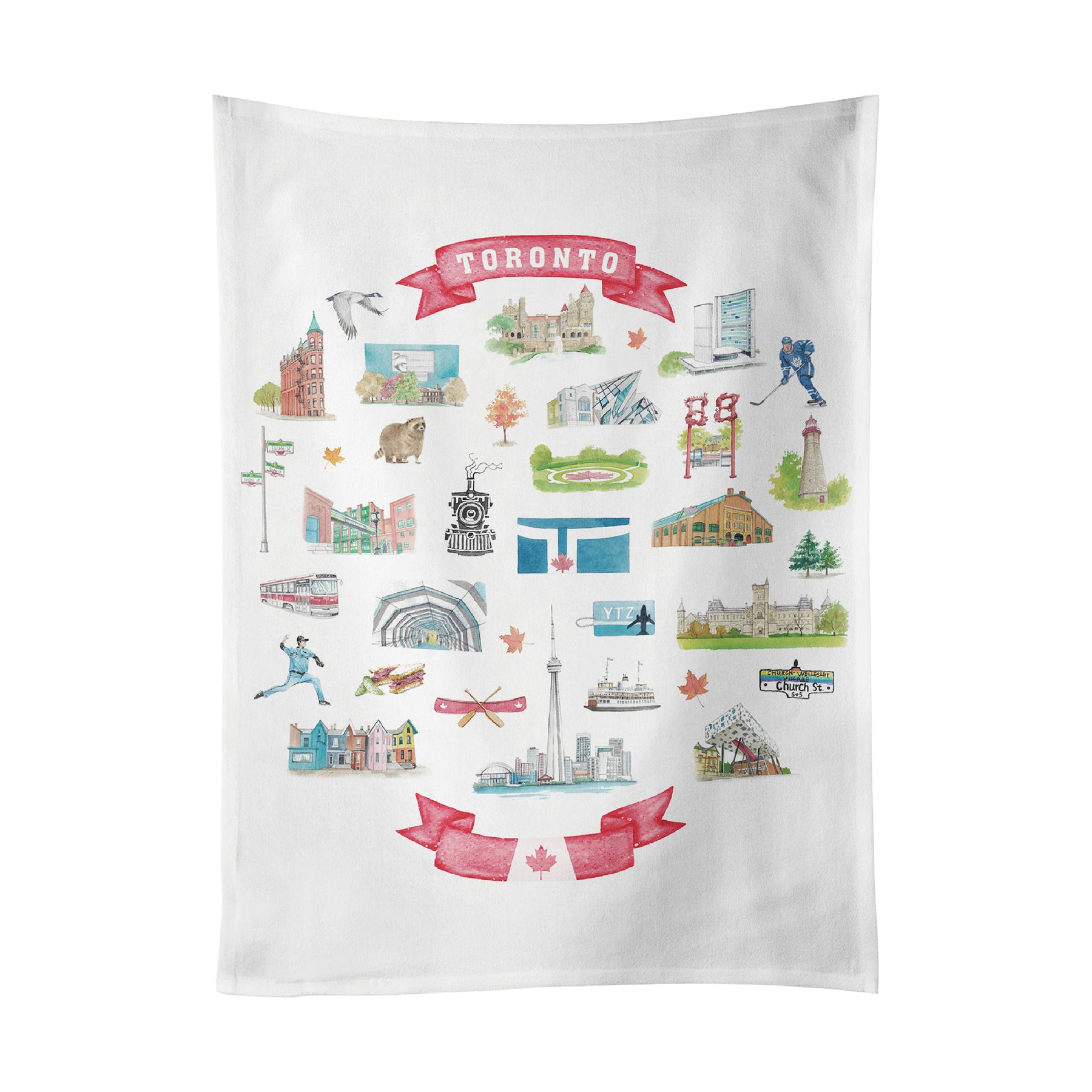 Toronto Ontario Tea Towel – Illustrated City Landmark Kitchen Dish Cloth Souvenir Gift