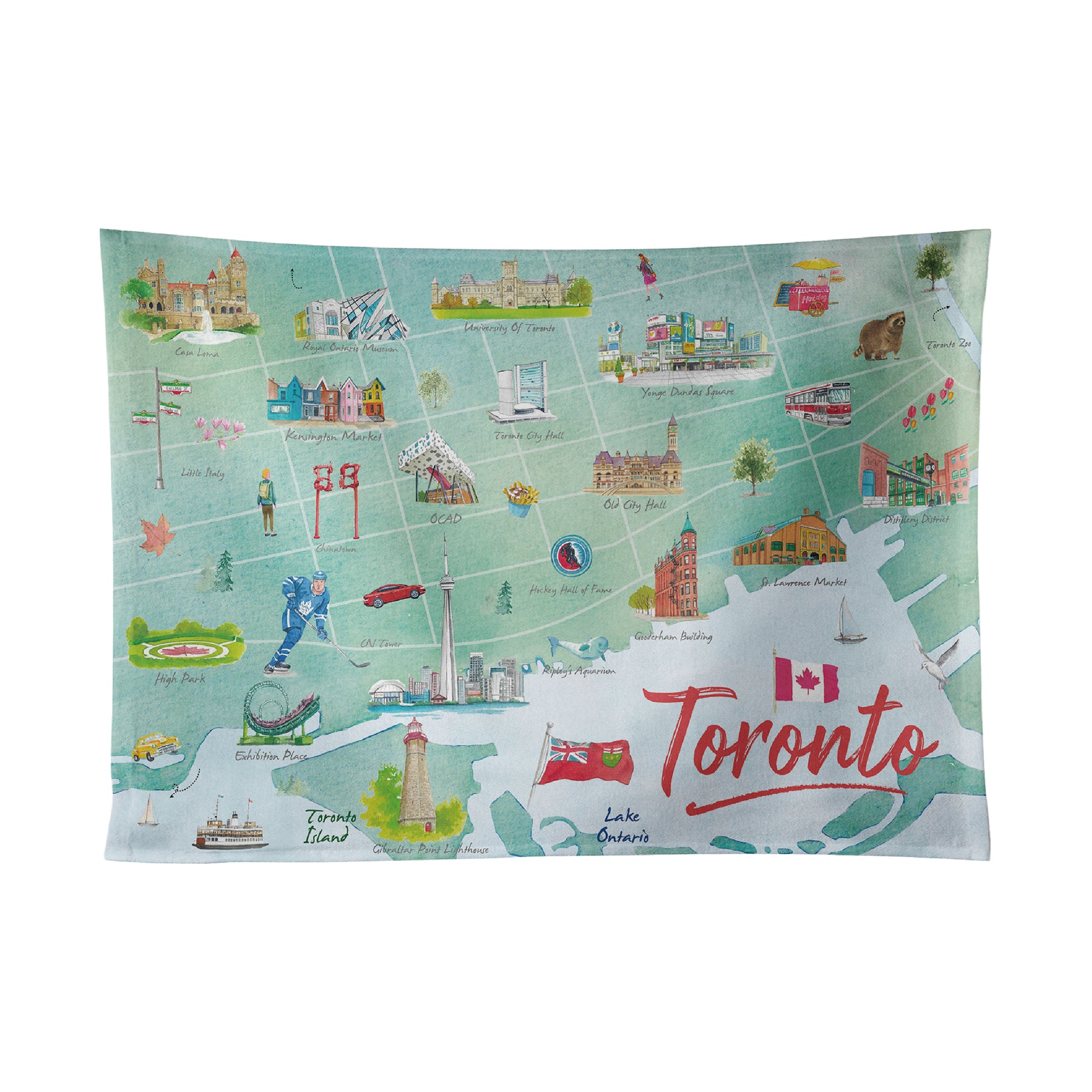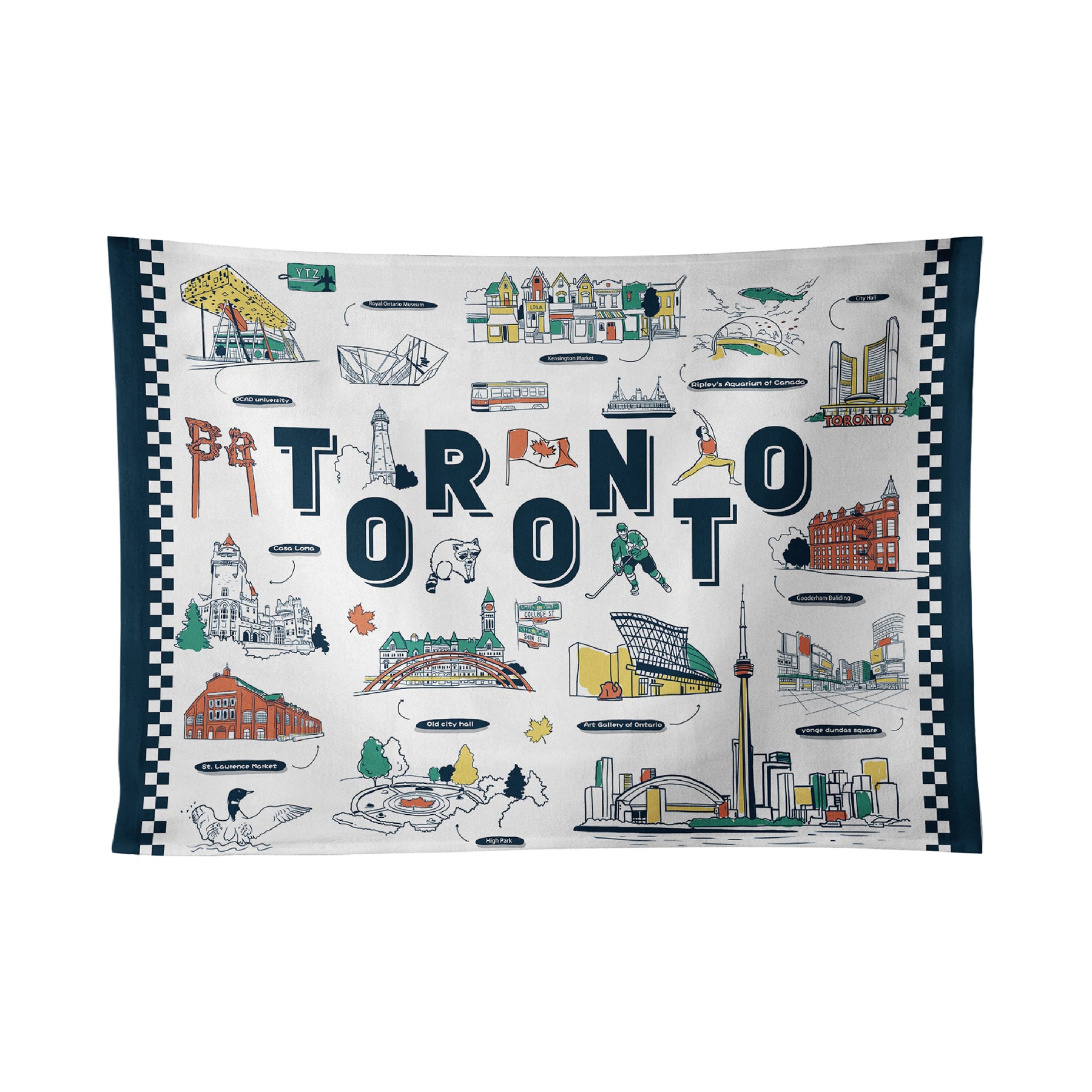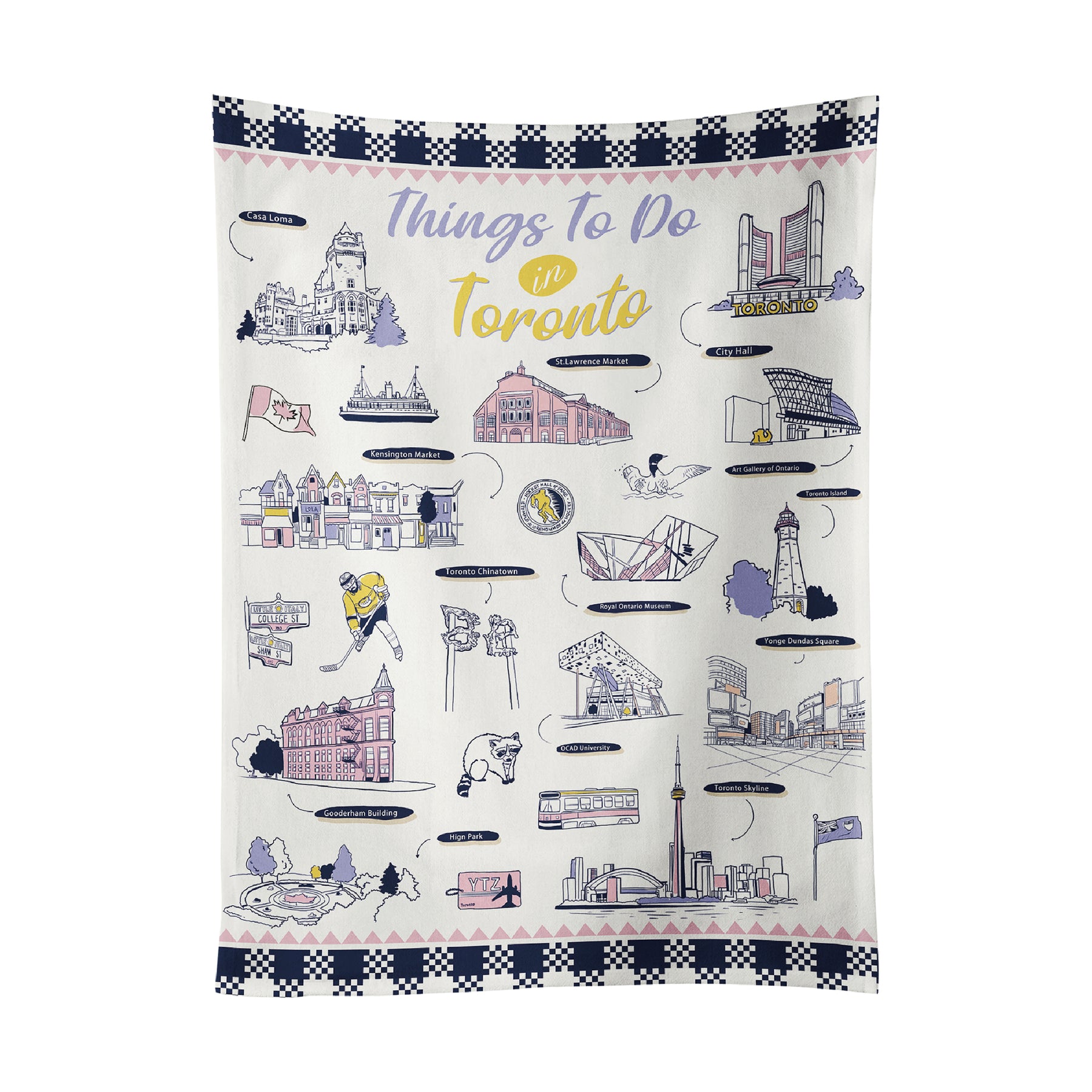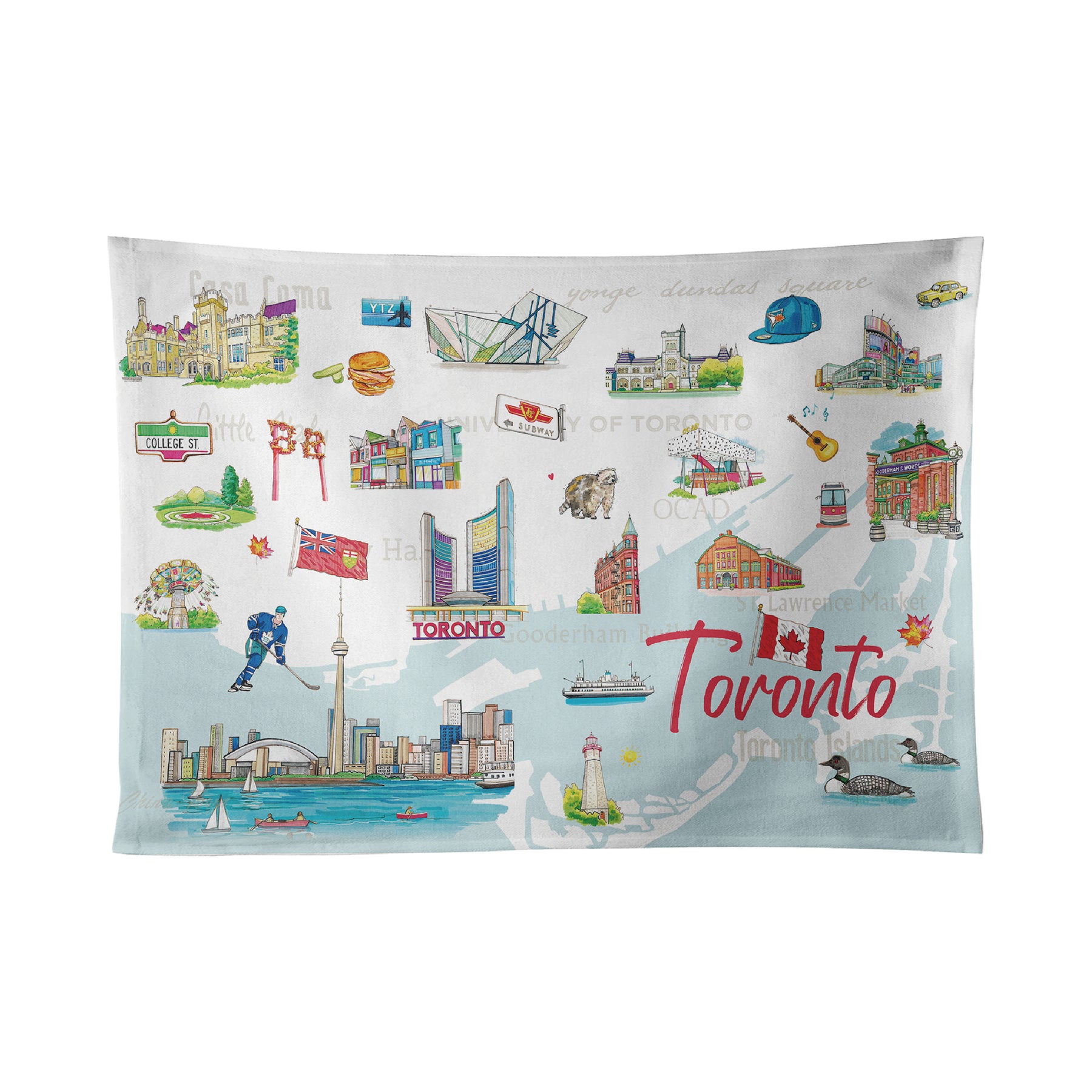 Toronto Ontario Tea Towel – Illustrated City Landmark Kitchen Dish Cloth Souvenir Gift