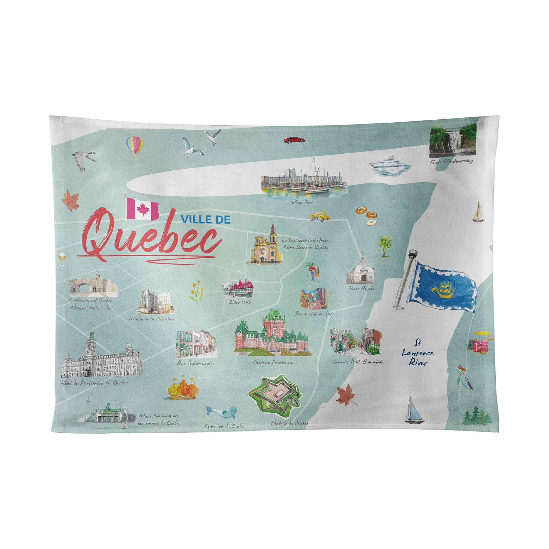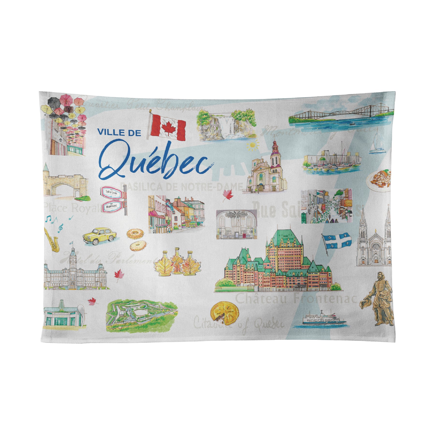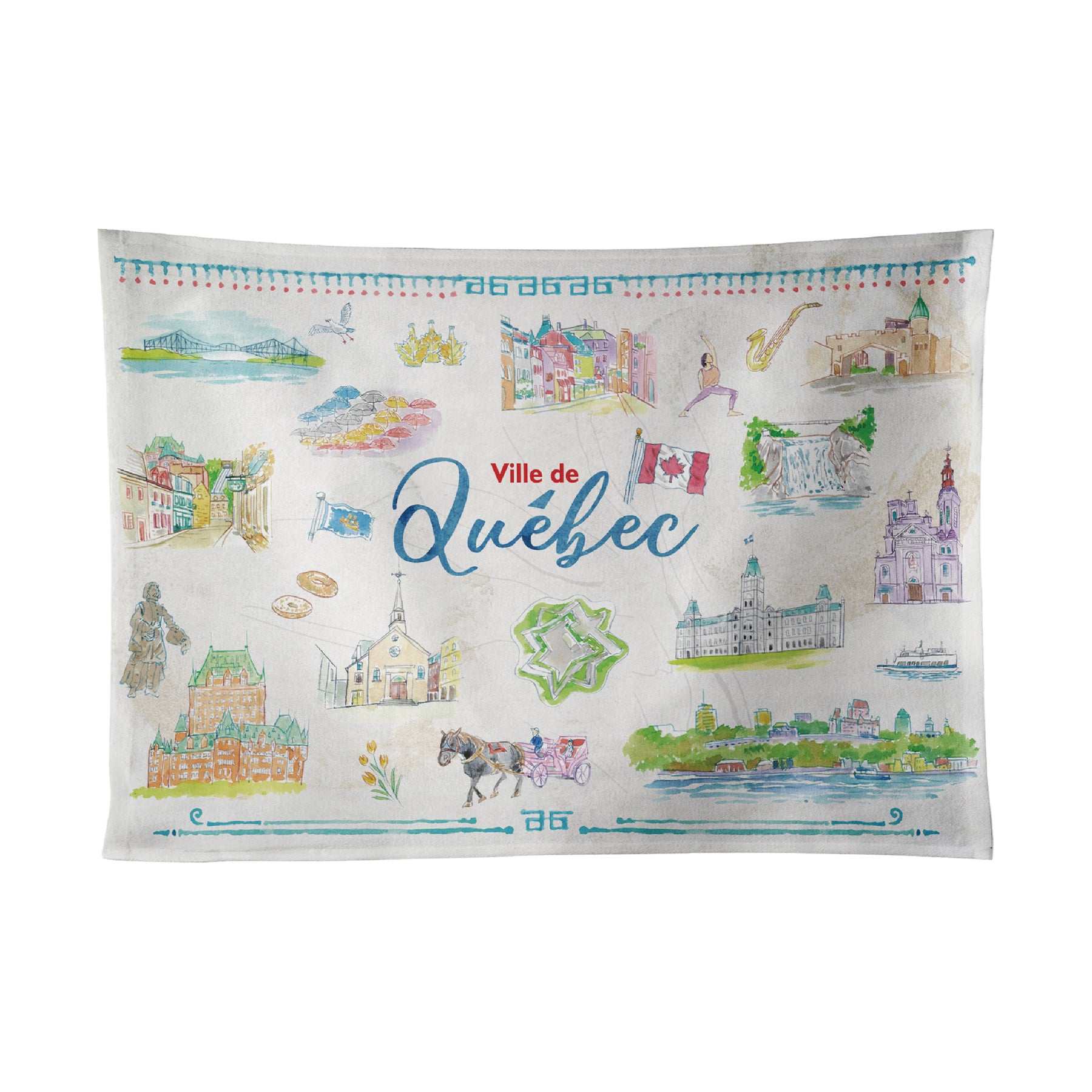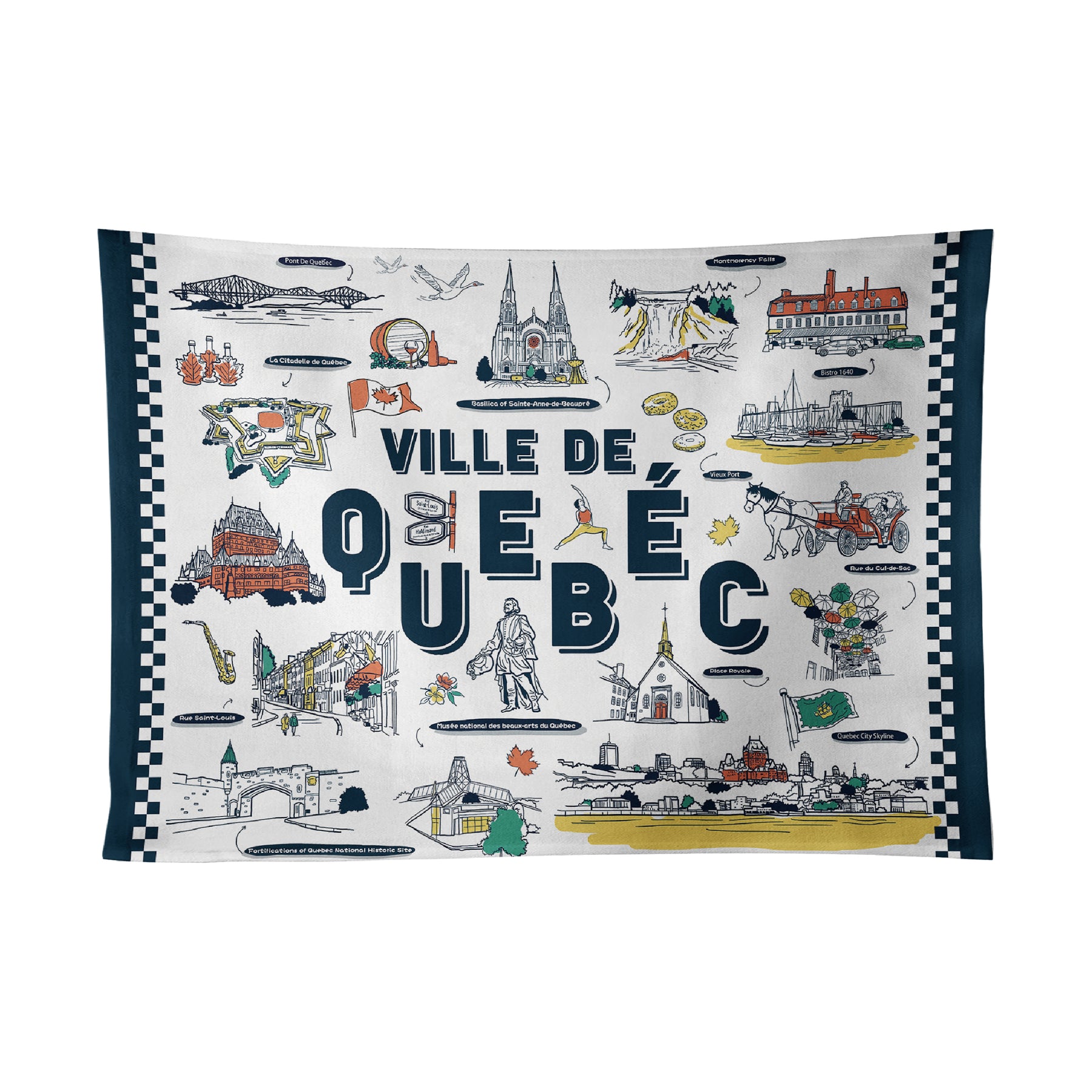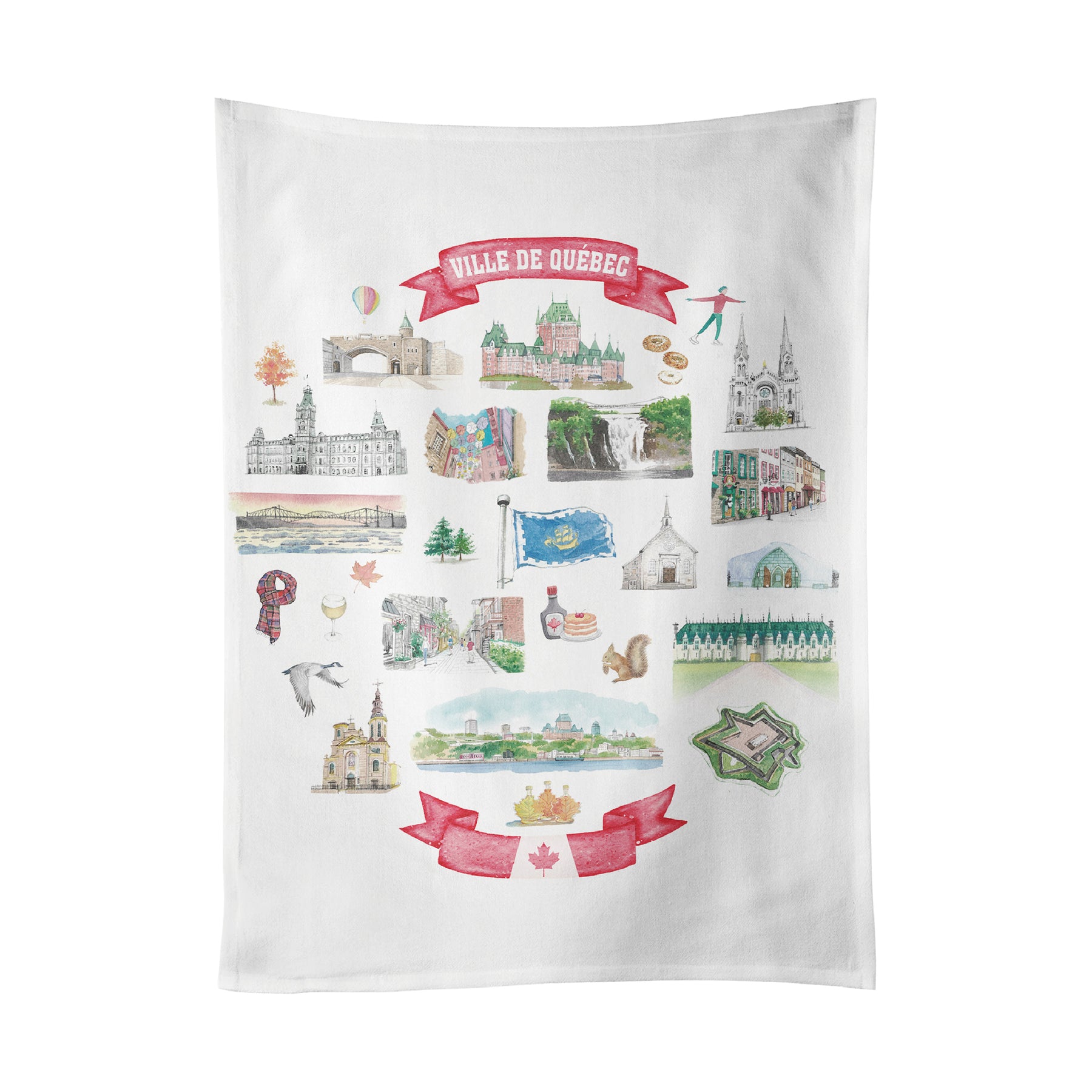 Ville de Québec Tea Towel – Canadian Landmark Kitchen Dish Cloth Trave