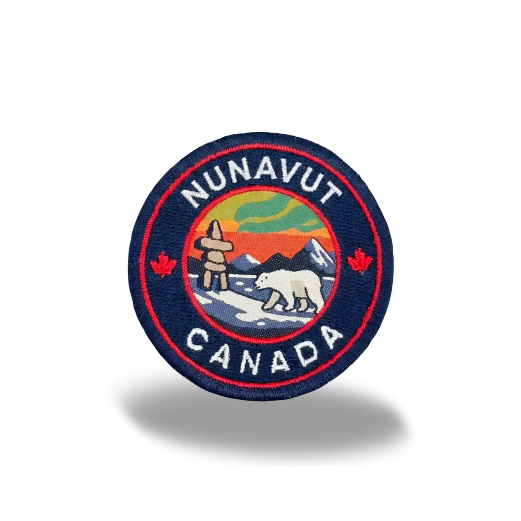 Celebrate the raw beauty and northern spirit of Nunavut, Canada with this thoughtfully designed iron-on embroidered patch. The artwork features a serene Arctic landscape, highlighted by a polar bear, rugged mountains, icy terrain, and a glowing northern sky. Each element is carefully illustrated to reflect the vastness, resilience, and quiet strength of Canada’s northernmost region.