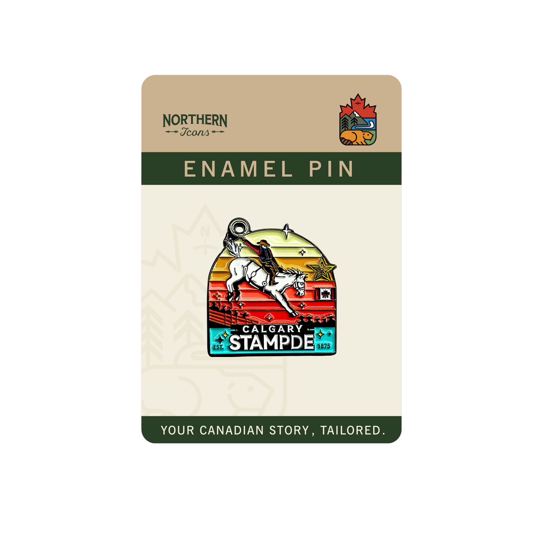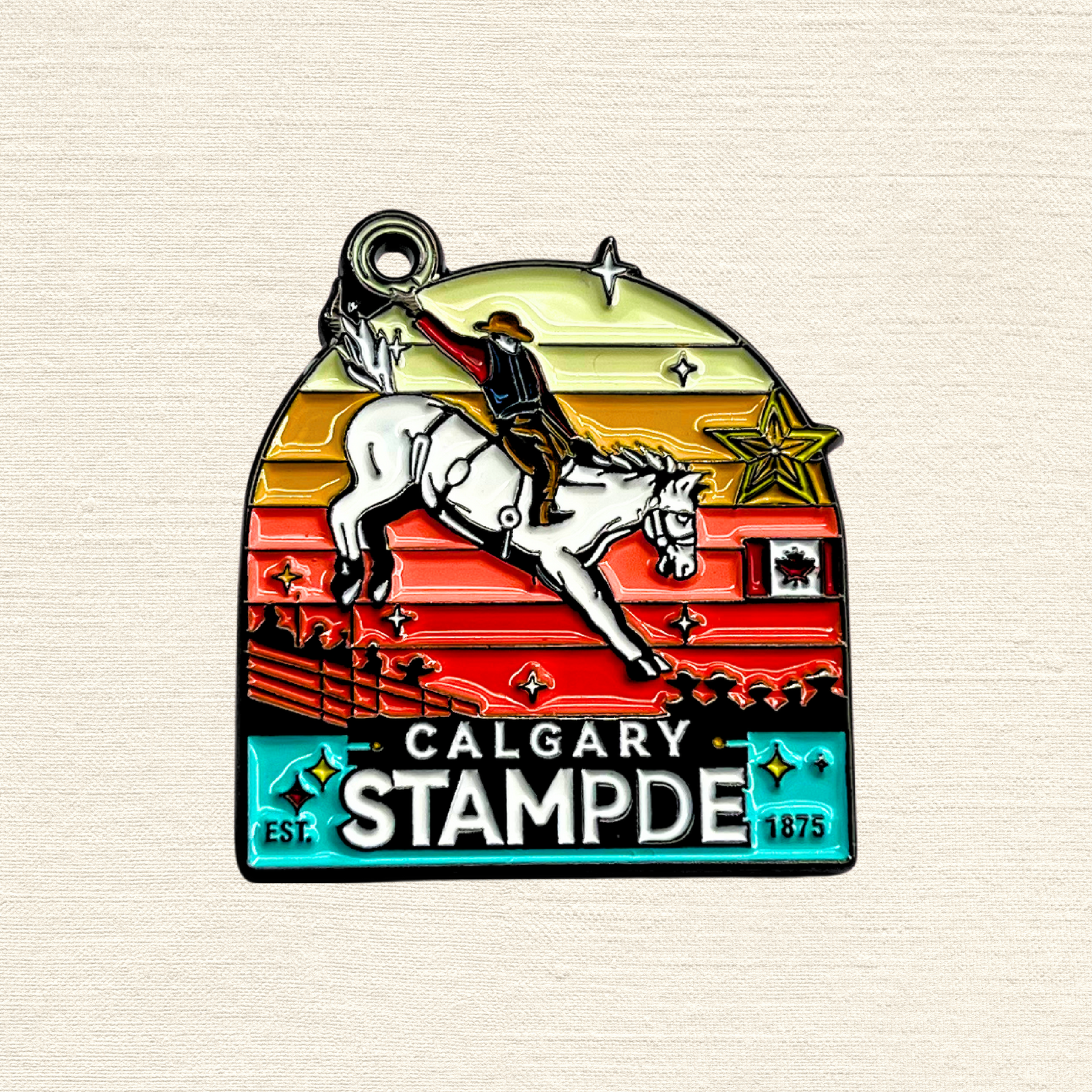 This pin is a perfect match for denim jackets, hats, backpacks, or lanyards—whether you're attending the Stampede or showing off your rodeo roots year-round. It adds a bold splash of personality to any look and is a great way to carry a little bit of Stampede spirit wherever you go.