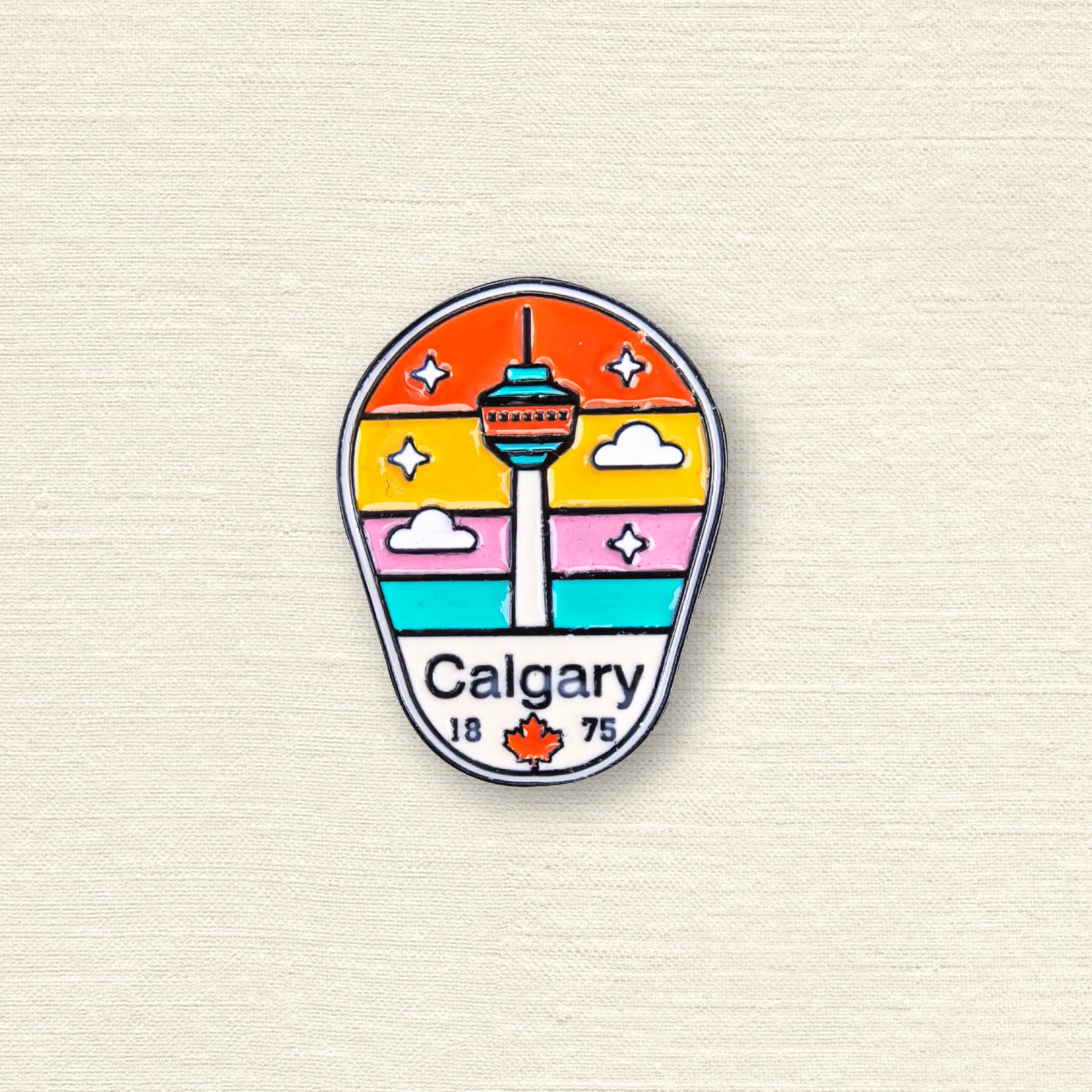 Clip it onto your backpack, jacket, lanyard, or cap—it’s perfect for jazzing up your everyday look or showing off your love for Calgary while on the go. Whether you're a local, a traveler, or a fan of all things colorful, this pin brings brightness wherever it lands.