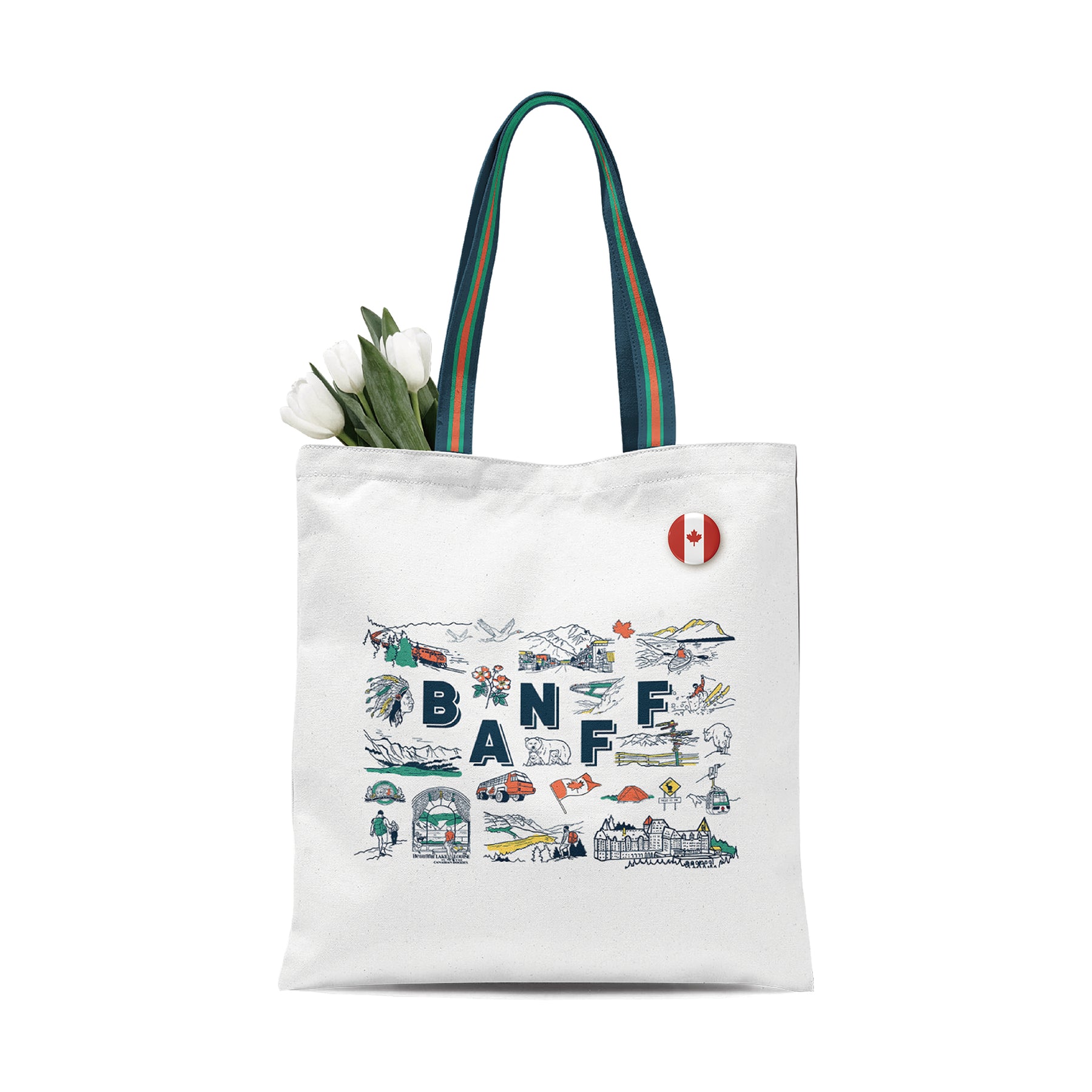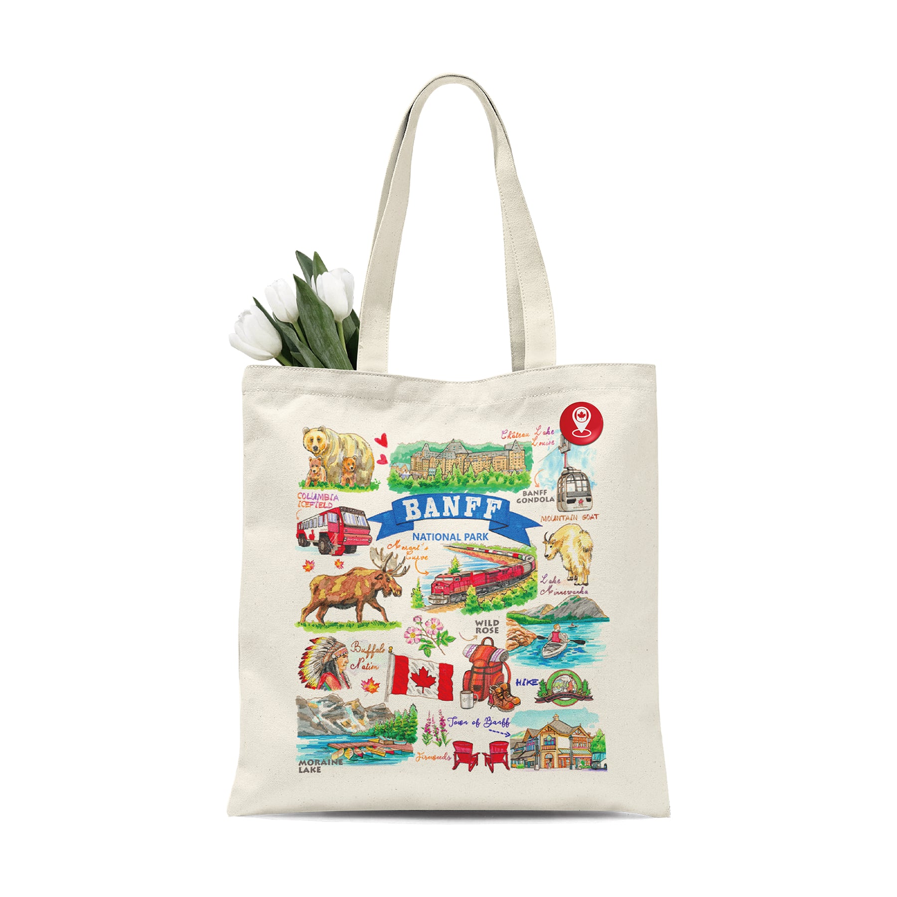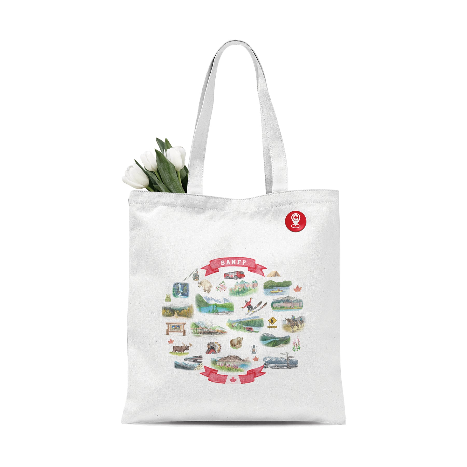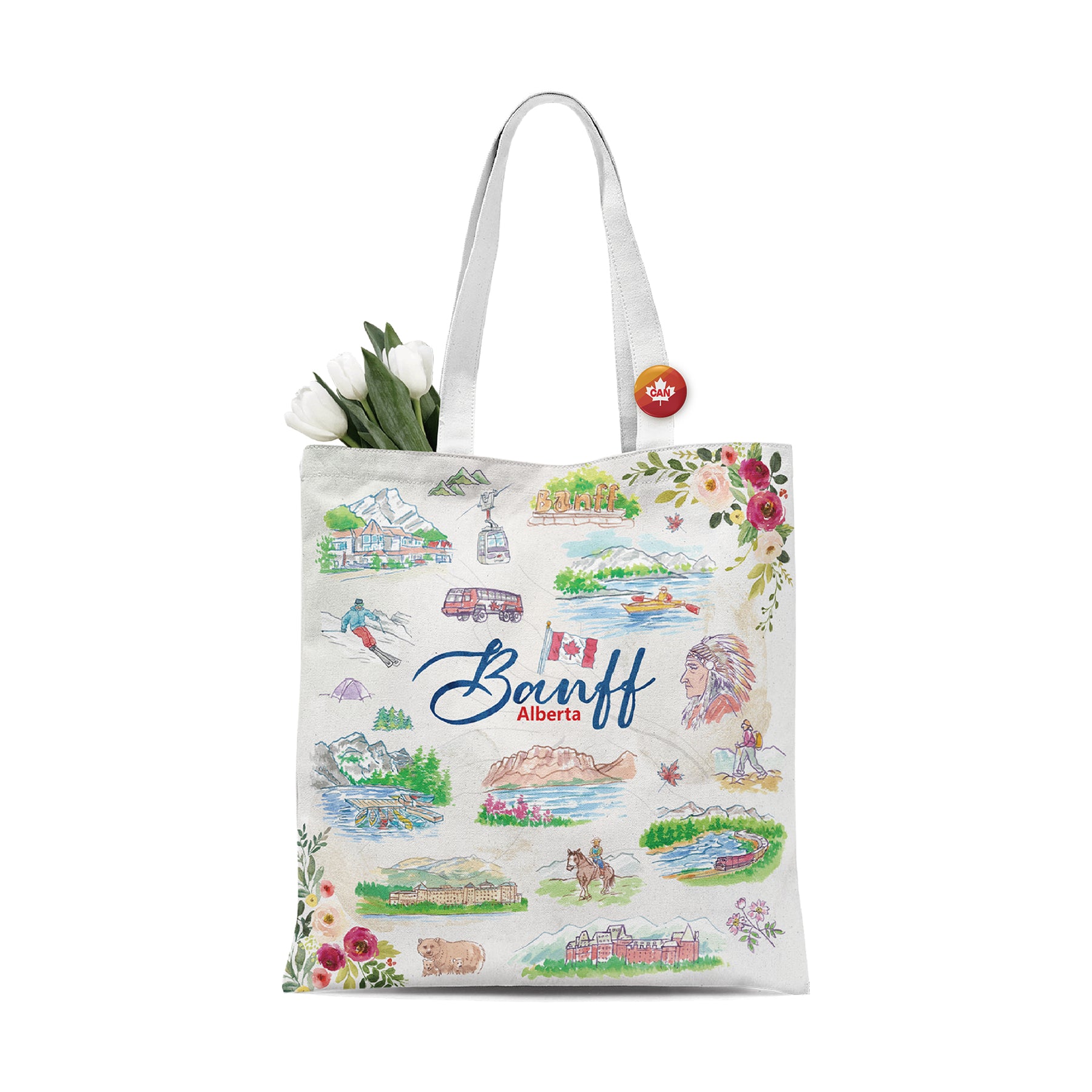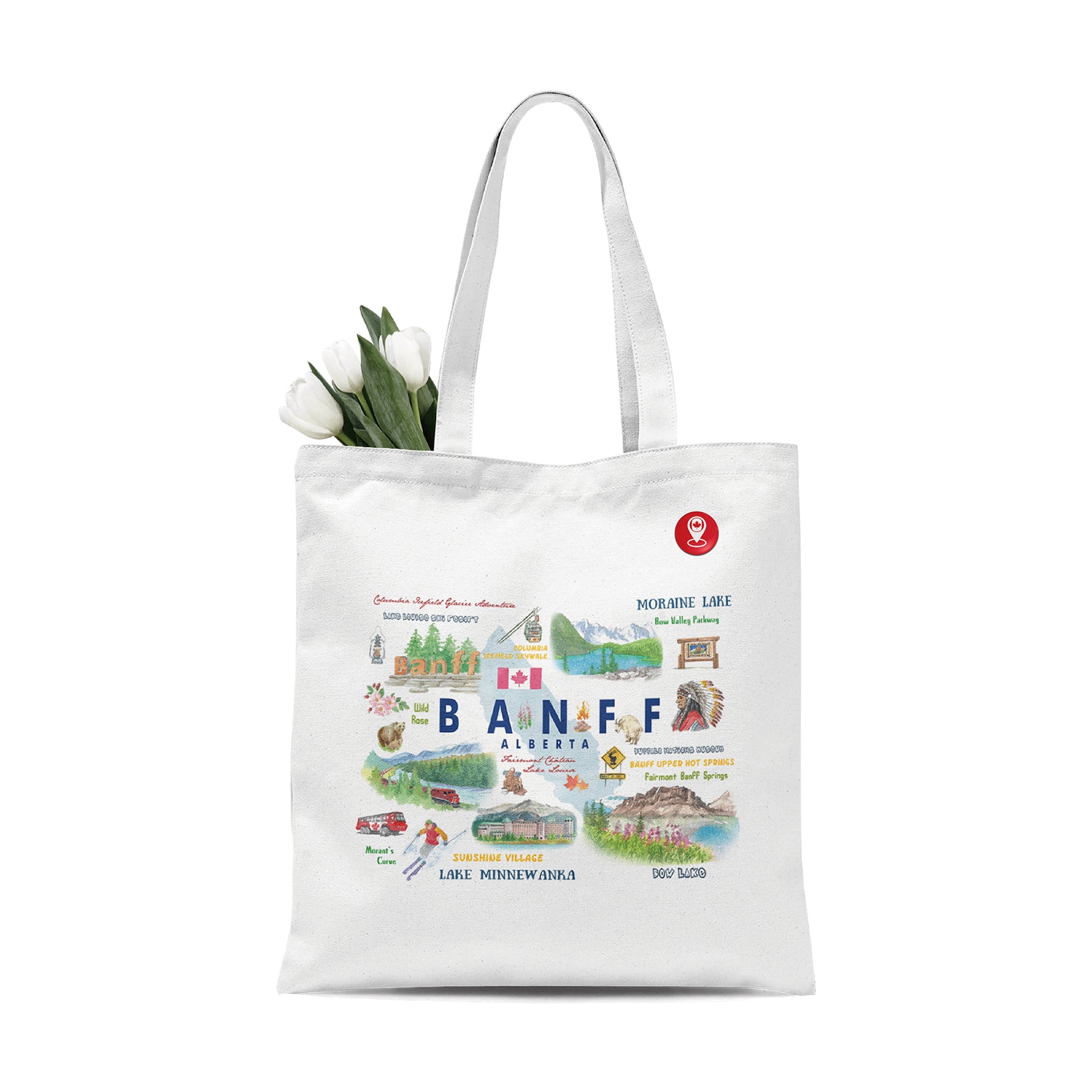 Banff Alberta Canvas Tote Bag – Illustrated Souvenir Design