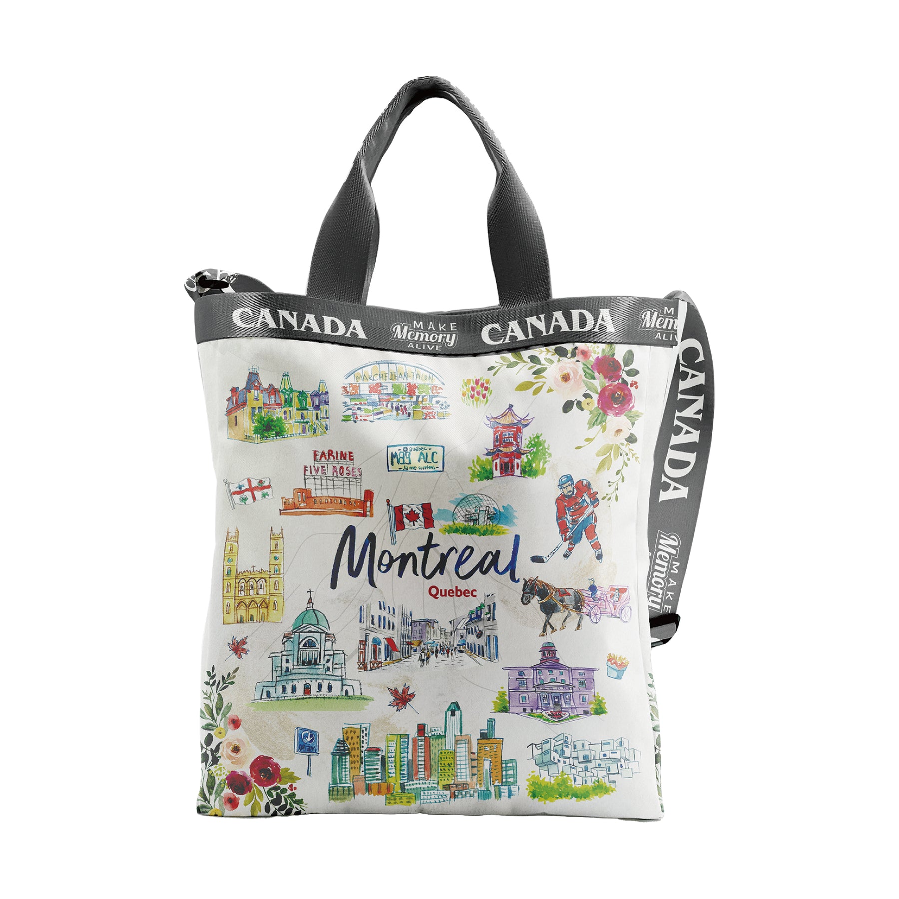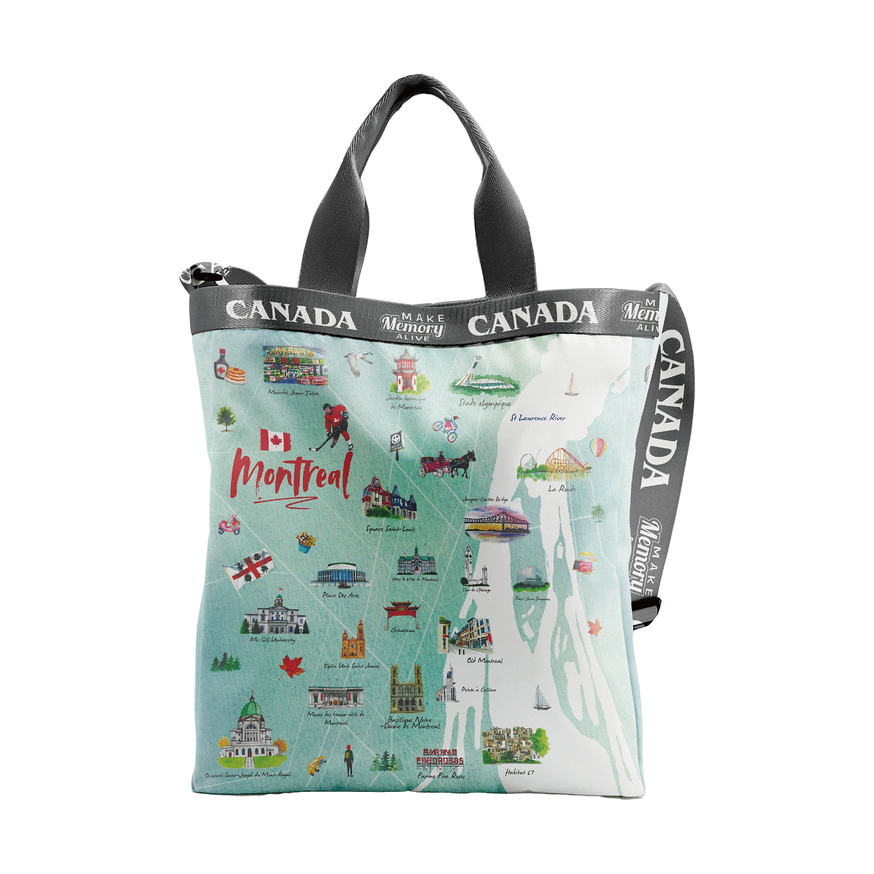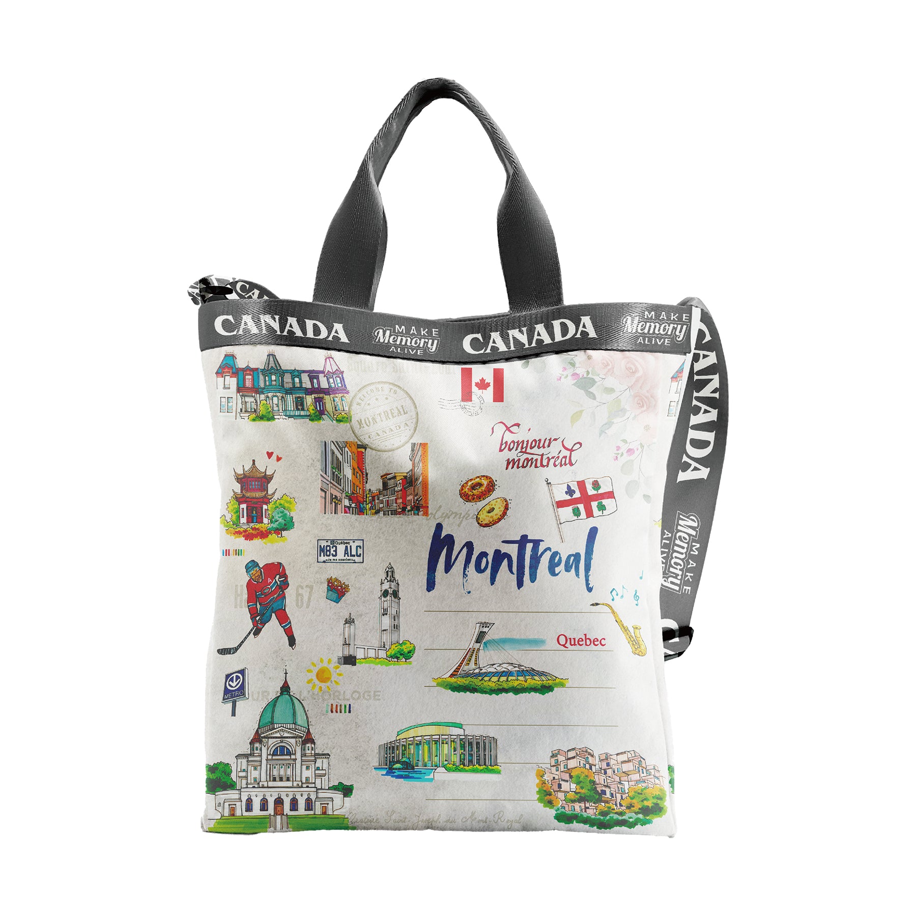 Montreal Quebec City Two-Way Tote Bag – Illustrated Canada Landmarks Travel Sling Bag