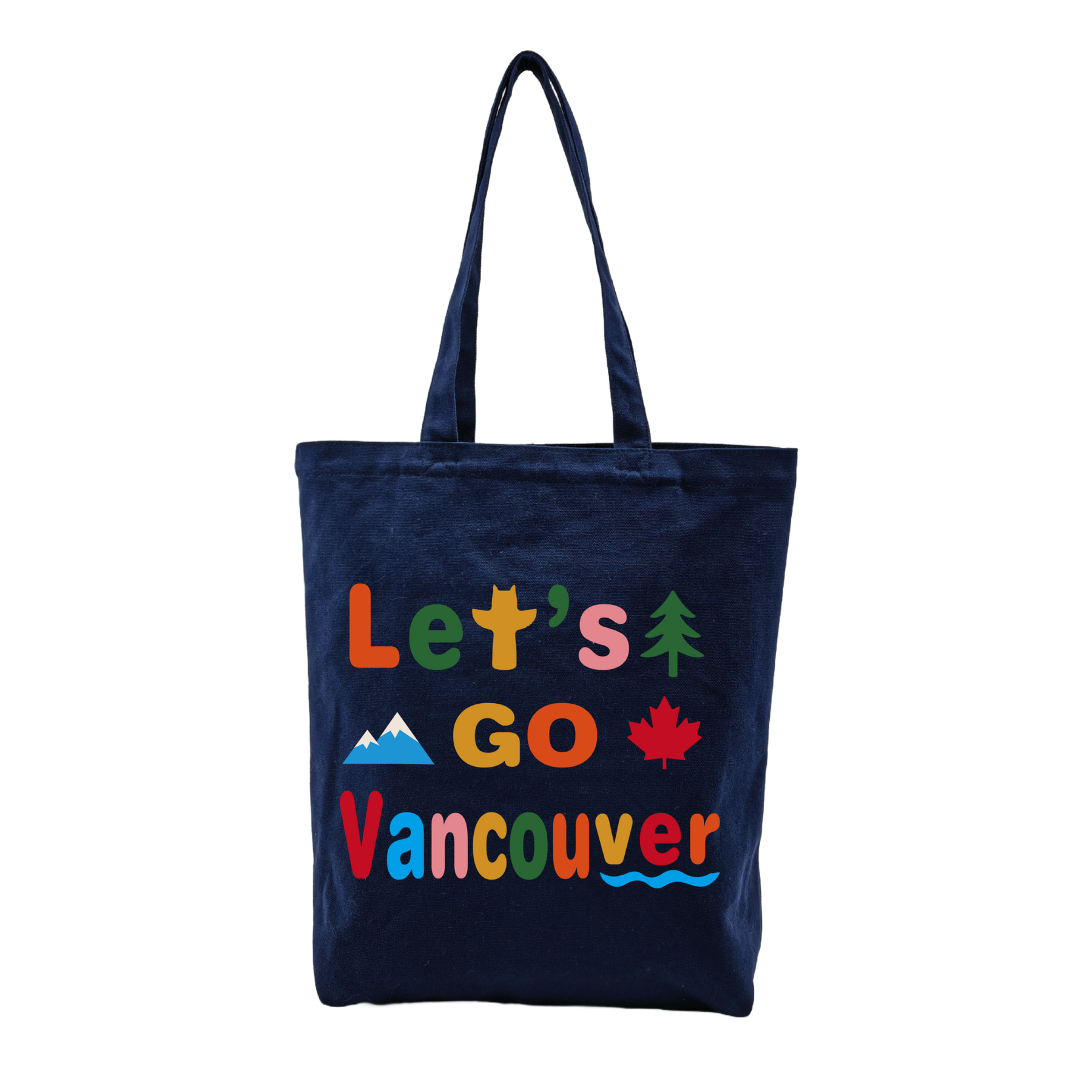 The Let’s Go Vancouver Chenille Embroidery Tote Bag celebrates the natural beauty and vibrant outdoor spirit of Vancouver. The playful typographic design highlights “Let’s Go Vancouver” in colorful chenille embroidery, paired with iconic visual elements such as mountains, evergreen trees, ocean waves, and the maple leaf. Together, these graphics reflect the unique landscape of Vancouver—where mountains, forests, and the Pacific coastline meet.