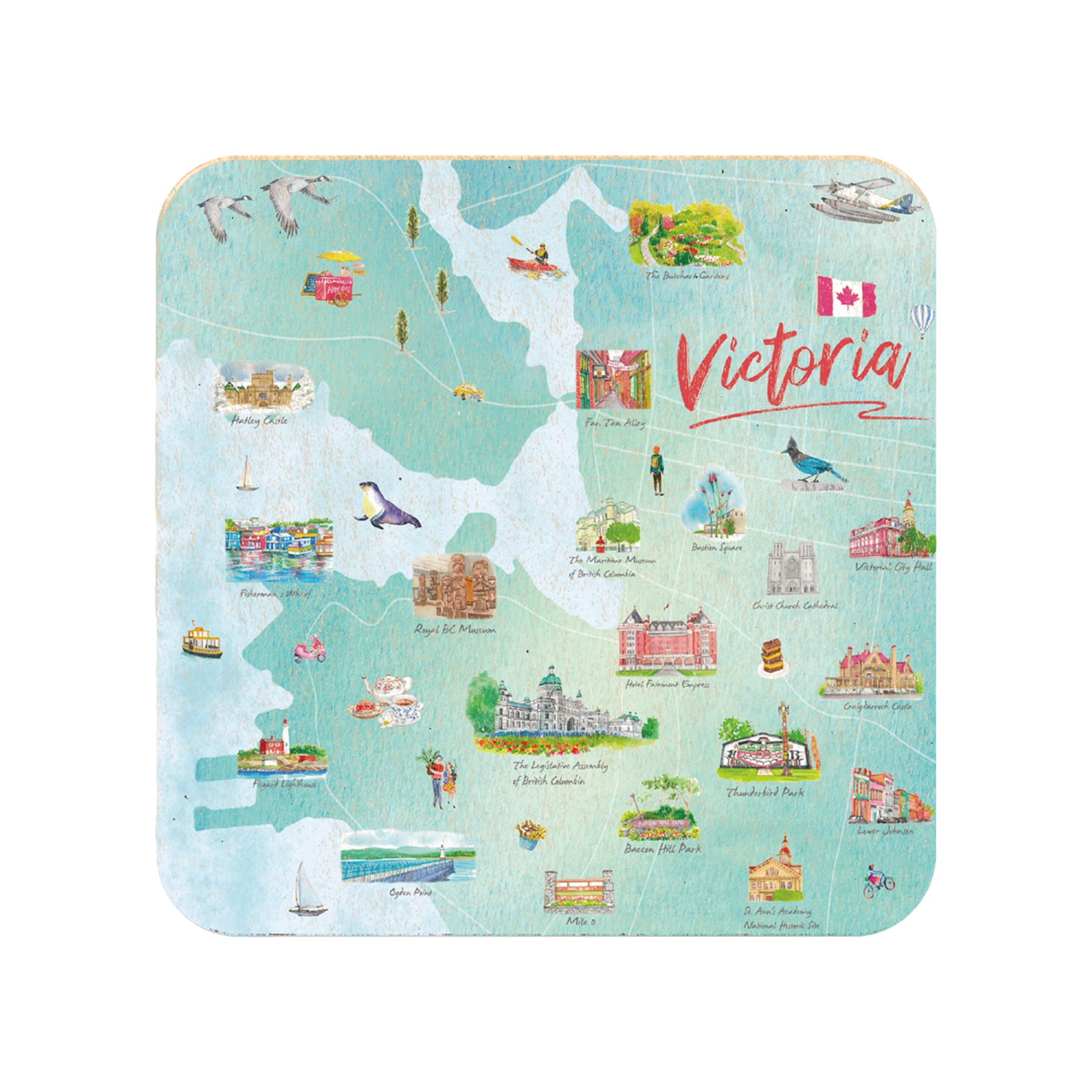 Victoria BC Scenic Illustration Coaster Set – Canadian Decorative Drink Coasters