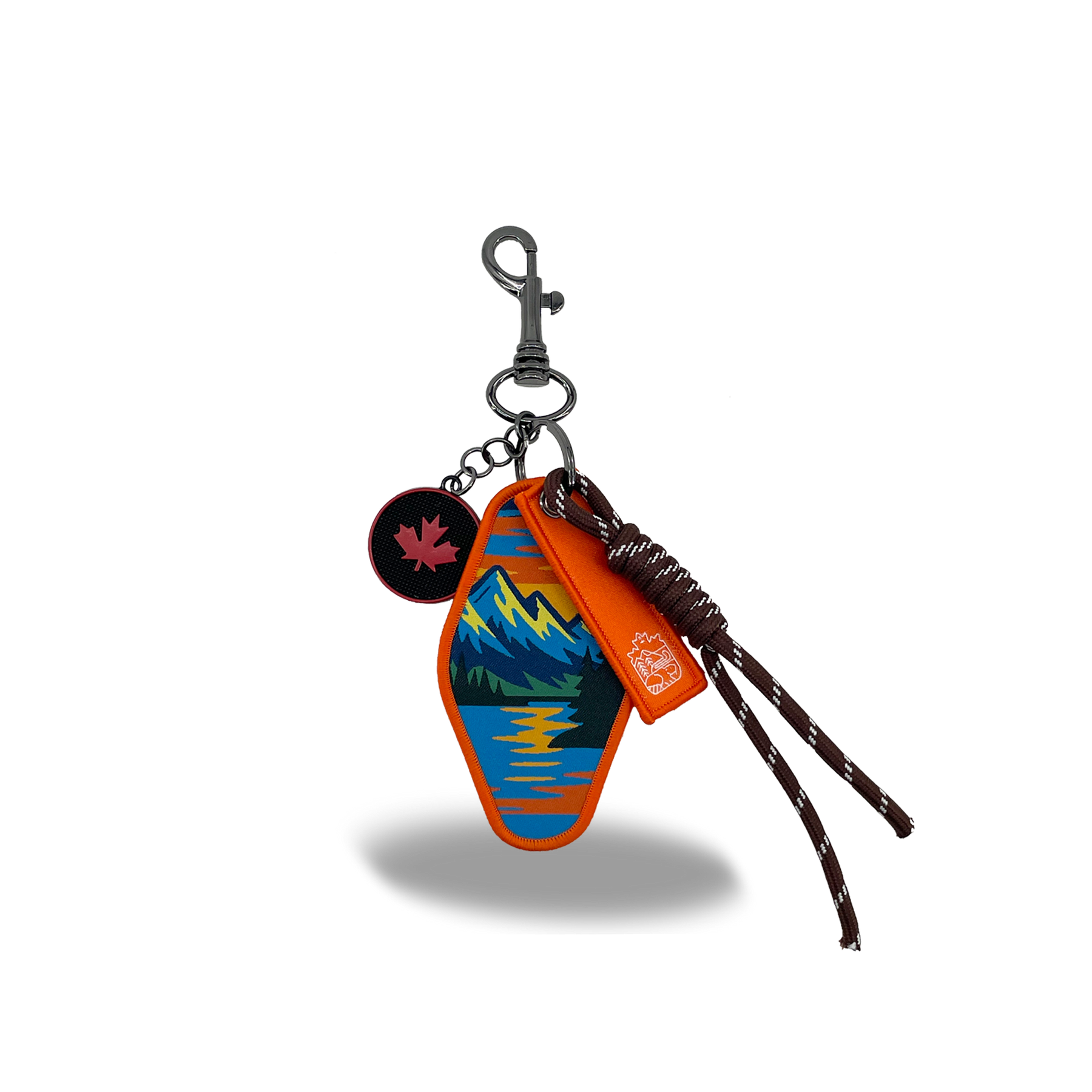 Designed for everyday versatility, this piece functions as both a keychain and a bag charm. The double-sided print presents two complementary mountain-inspired visuals, while durable fabric construction, rope detailing, and a secure metal clasp make it easy to attach to bags, backpacks, or keys. Created as a compact travel keepsake, it brings Whistler’s mountain adventure into daily life.