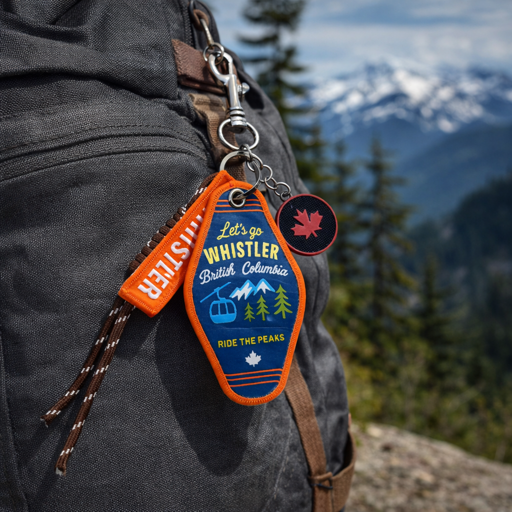 Celebrate the adventurous spirit of Whistler through a bold double-sided design inspired by mountain landscapes and outdoor exploration. This Whistler Double-Sided Bag Charm & Keychain features illustrated scenes reflecting alpine peaks, forest trails, and gondola rides that define the region’s year-round mountain lifestyle. The artwork captures Whistler’s dynamic energy, blending nature, movement, and a love for the outdoors.
