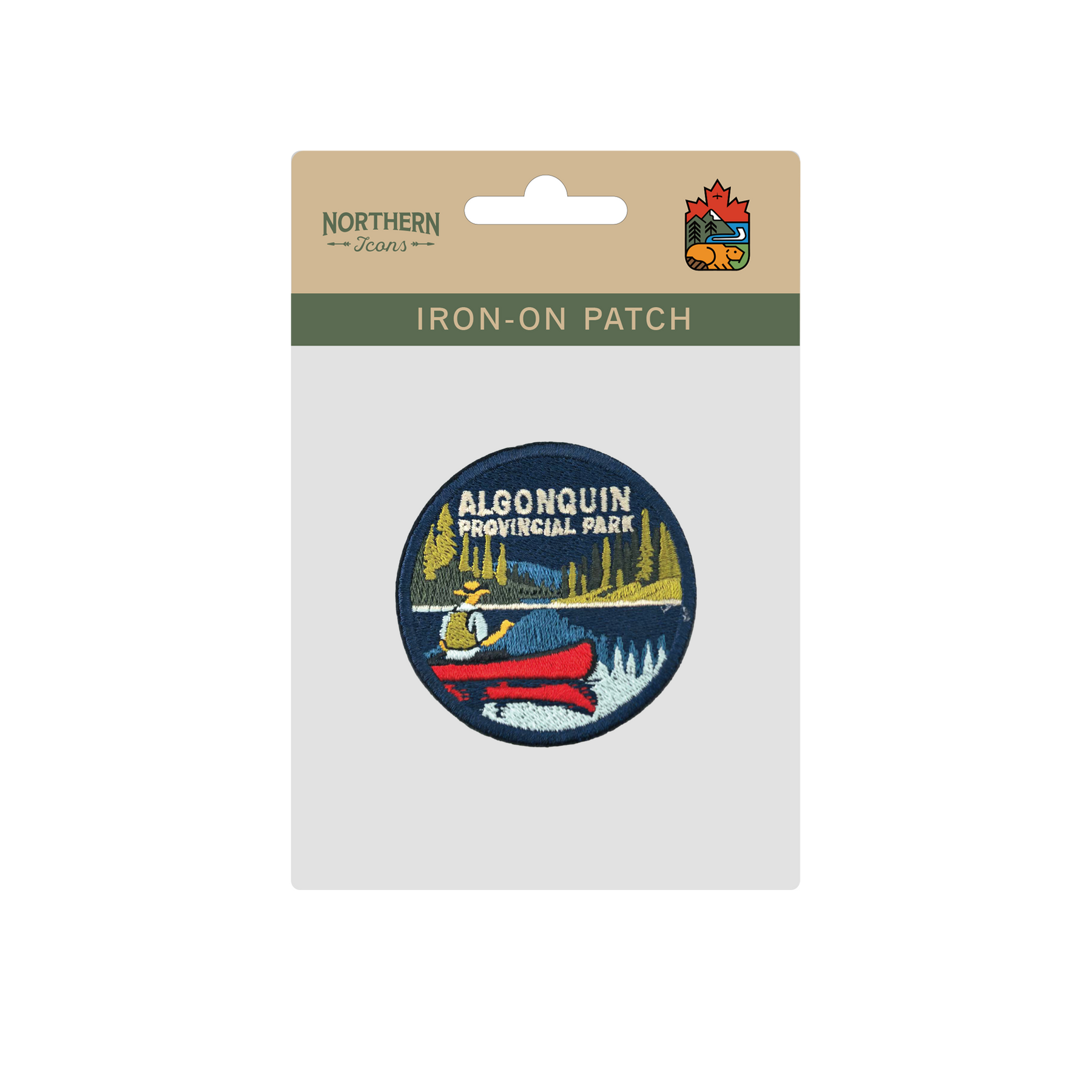 Regular price $11.99Capture the essence of Canada’s wilderness with this Algonquin Provincial Park Canoe Lake Embroidered Patch, inspired by the park’s calm waters, forest silhouettes, and timeless canoeing culture. The design highlights a bright red canoe gliding across the lake, surrounded by golden pines and distant mountains—creating a peaceful yet adventurous outdoor scene.