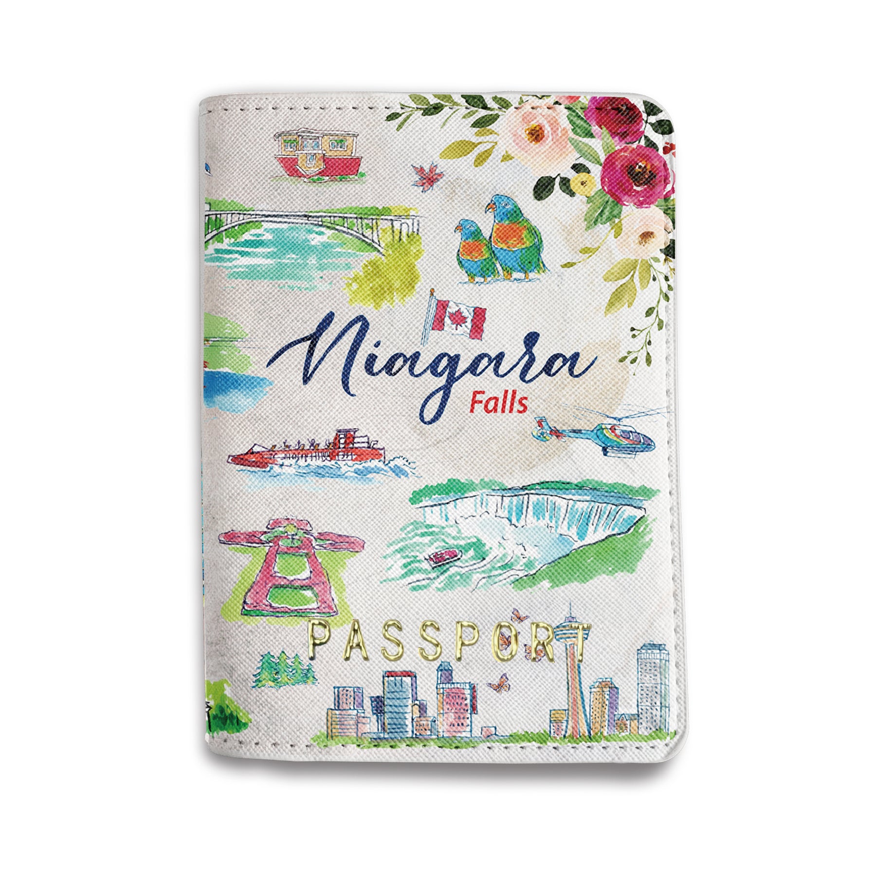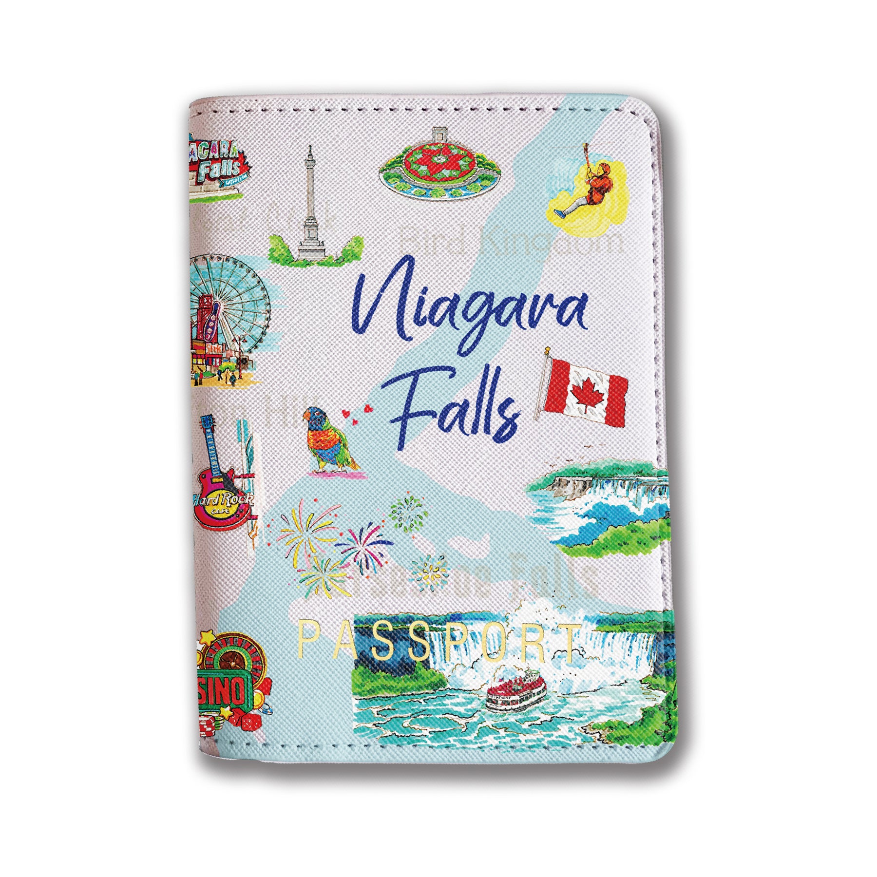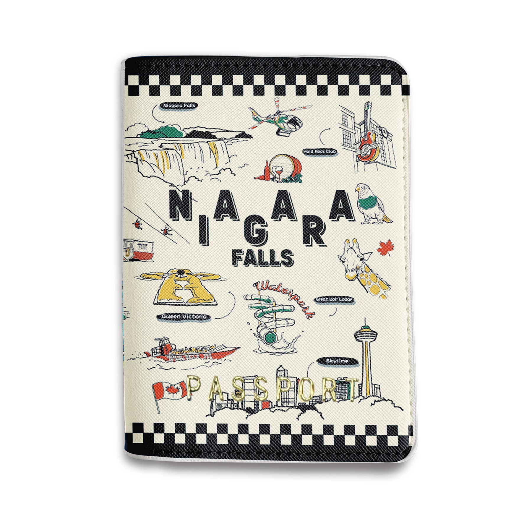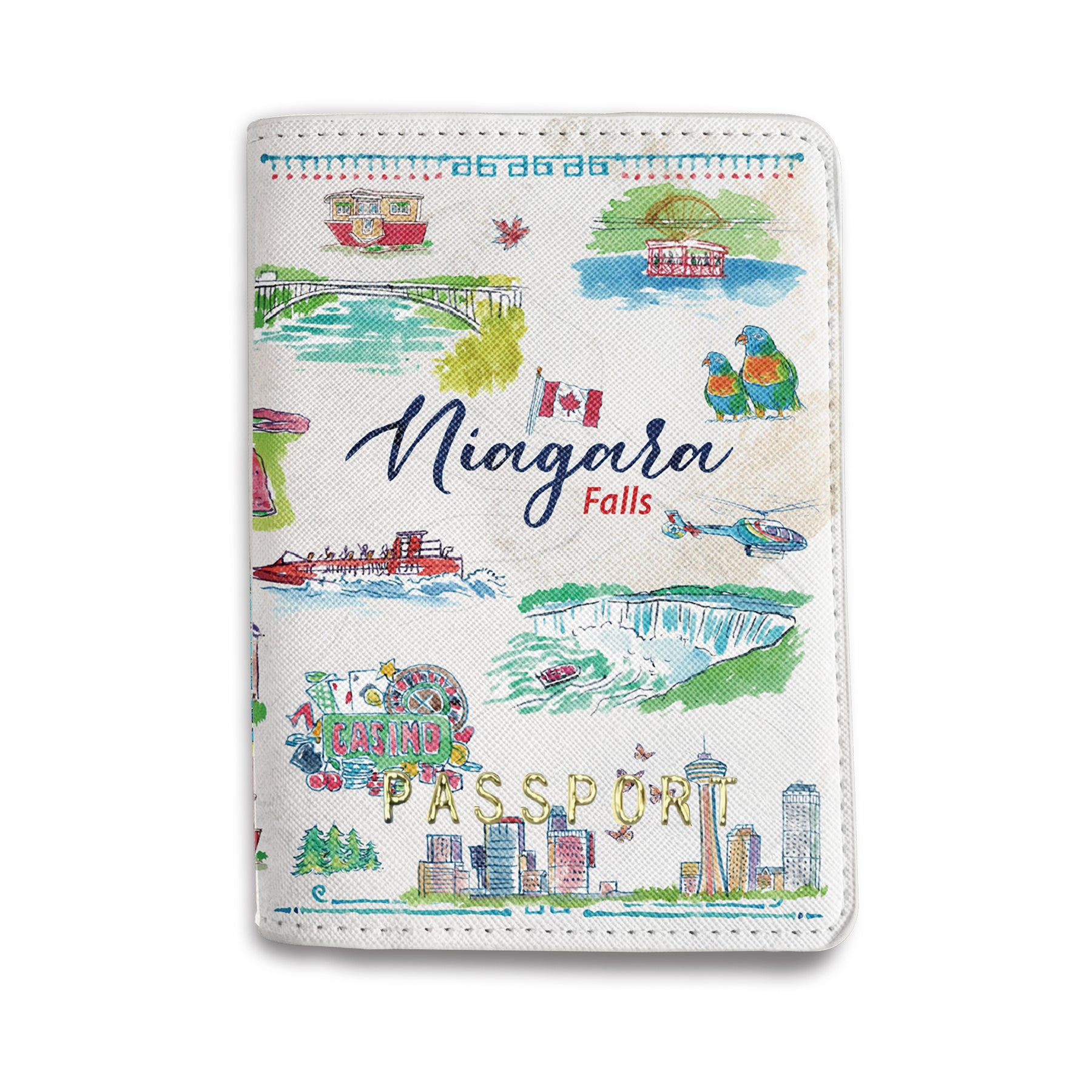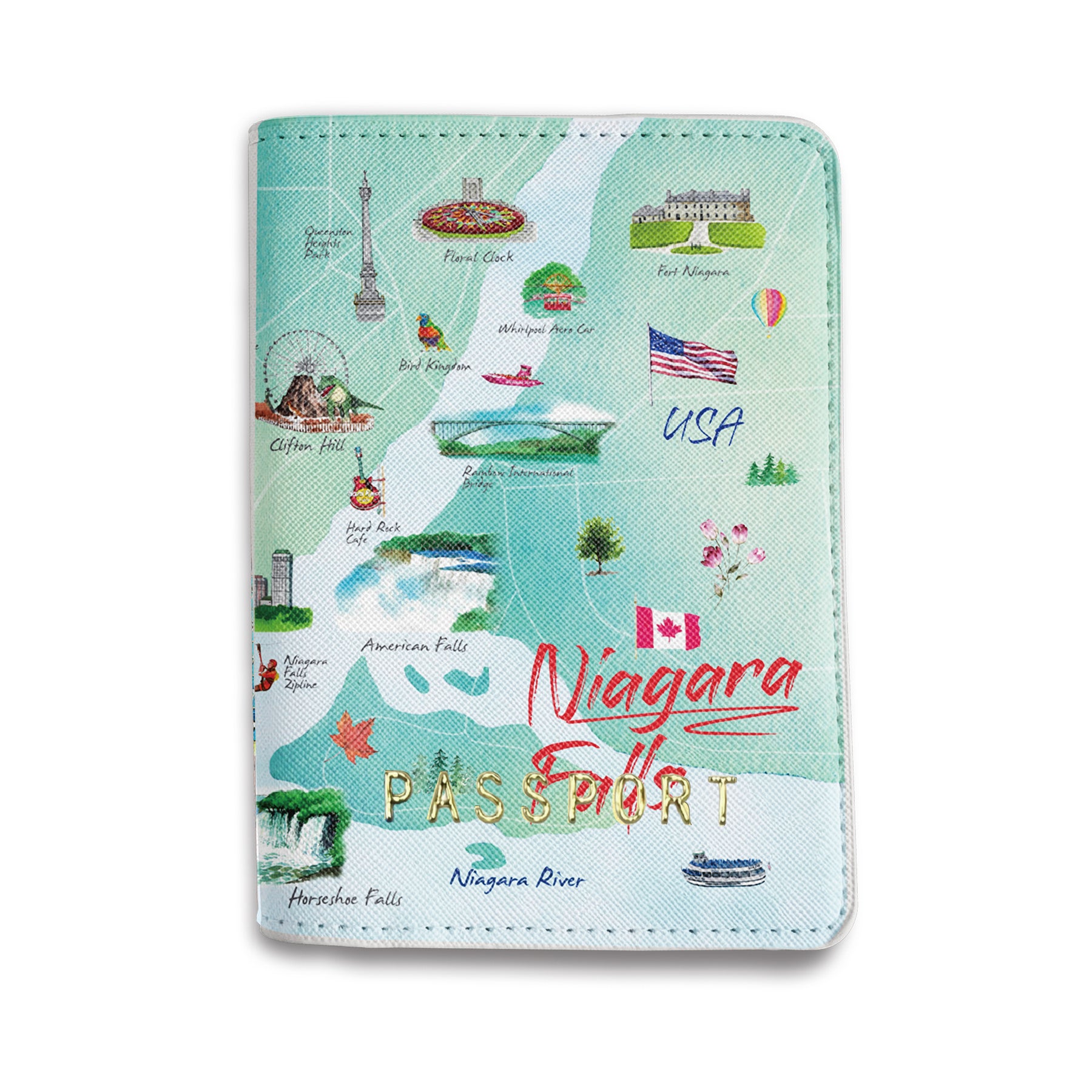 Crafted from durable vegan leather, the cover protects your passport from scratches while keeping everything organized. Inside, multiple slots hold cards and documents securely, making it both stylish and practical. Perfect for frequent travelers, gift shops, and anyone who wants to carry a little Niagara Falls inspiration wherever they go.