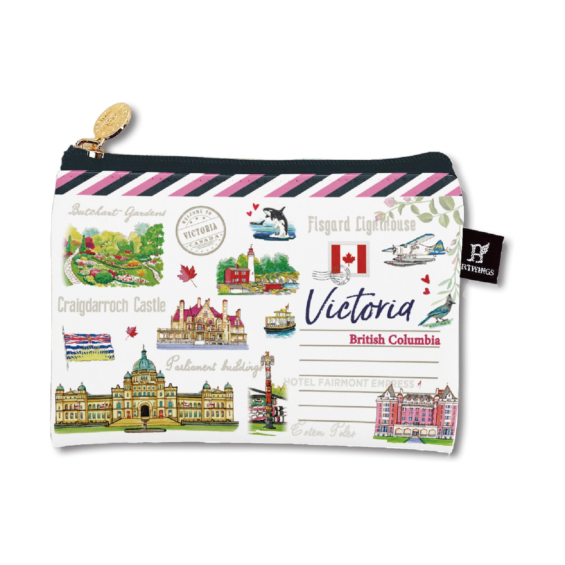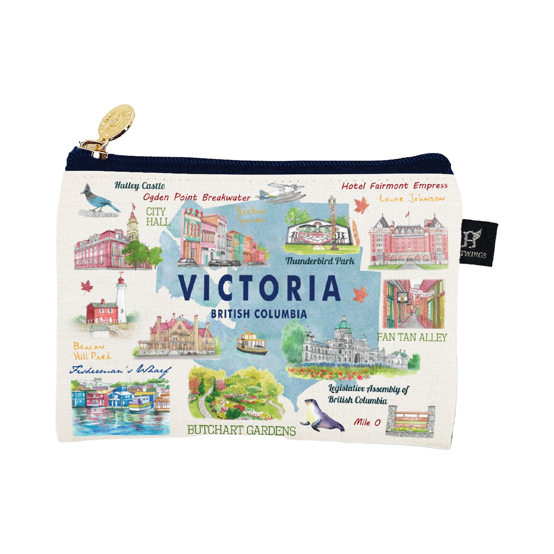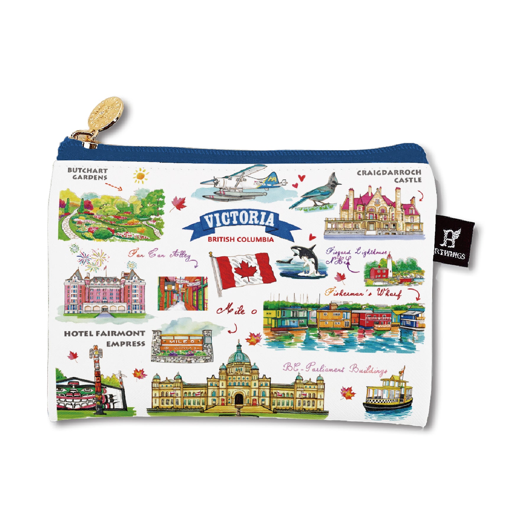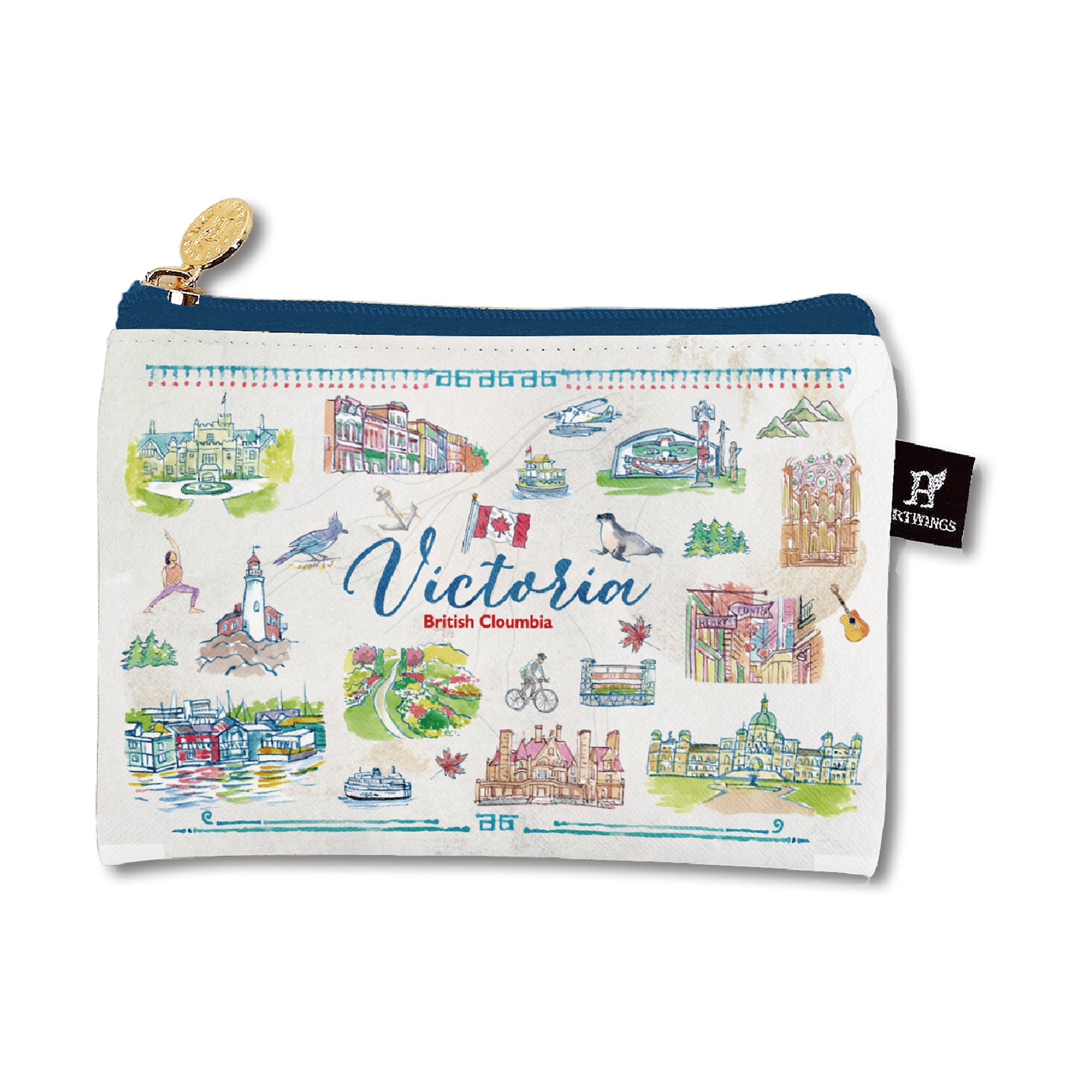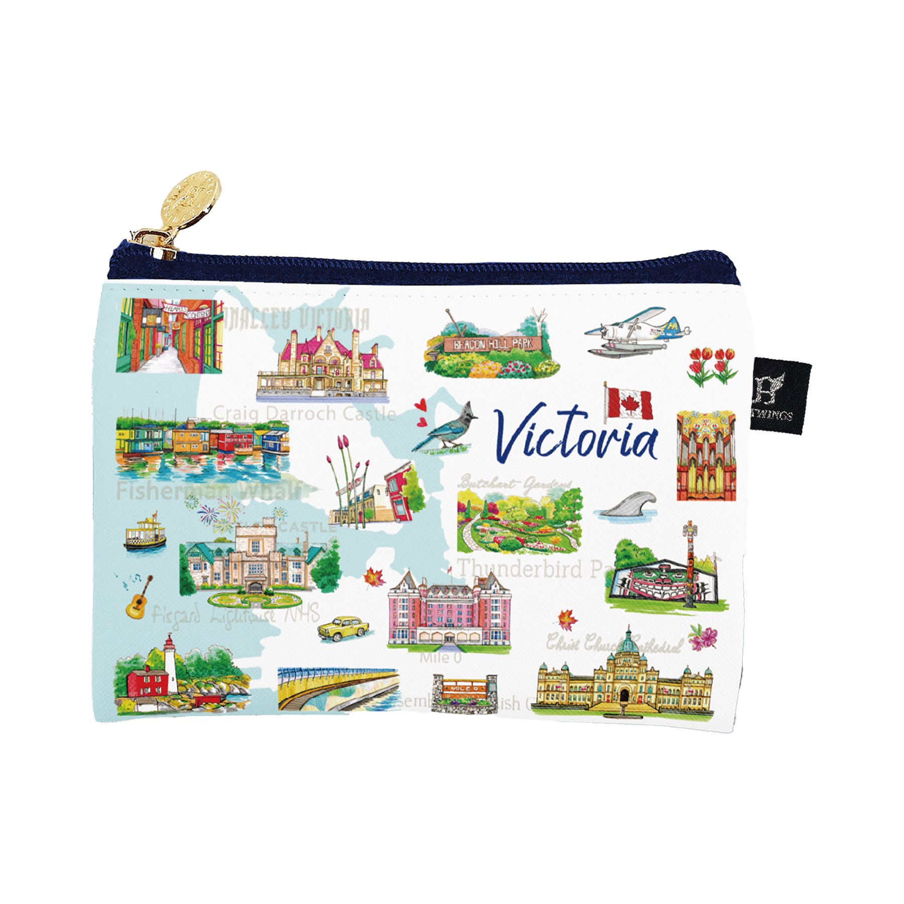 Victoria British Columbia Illustrated Small Pouch Bag with Local Landmark Artwork